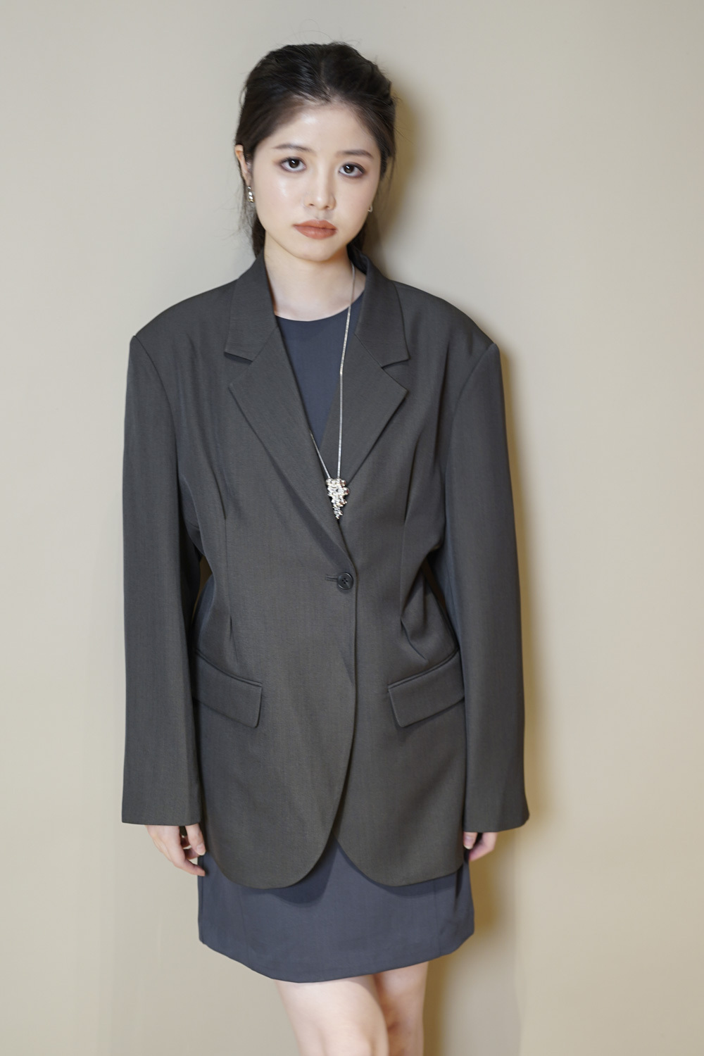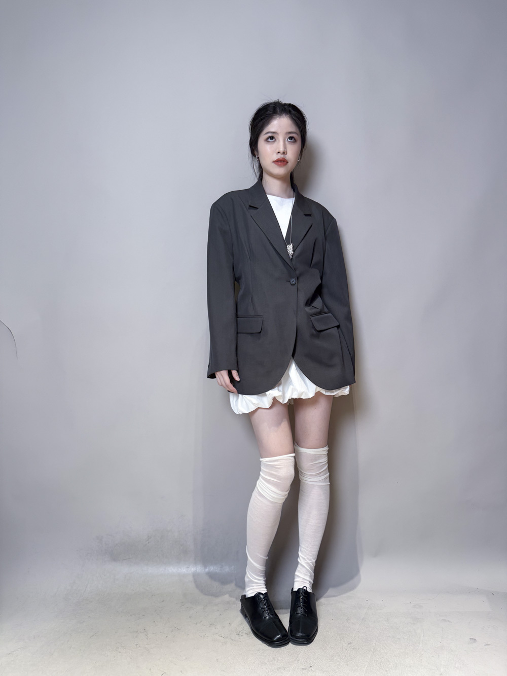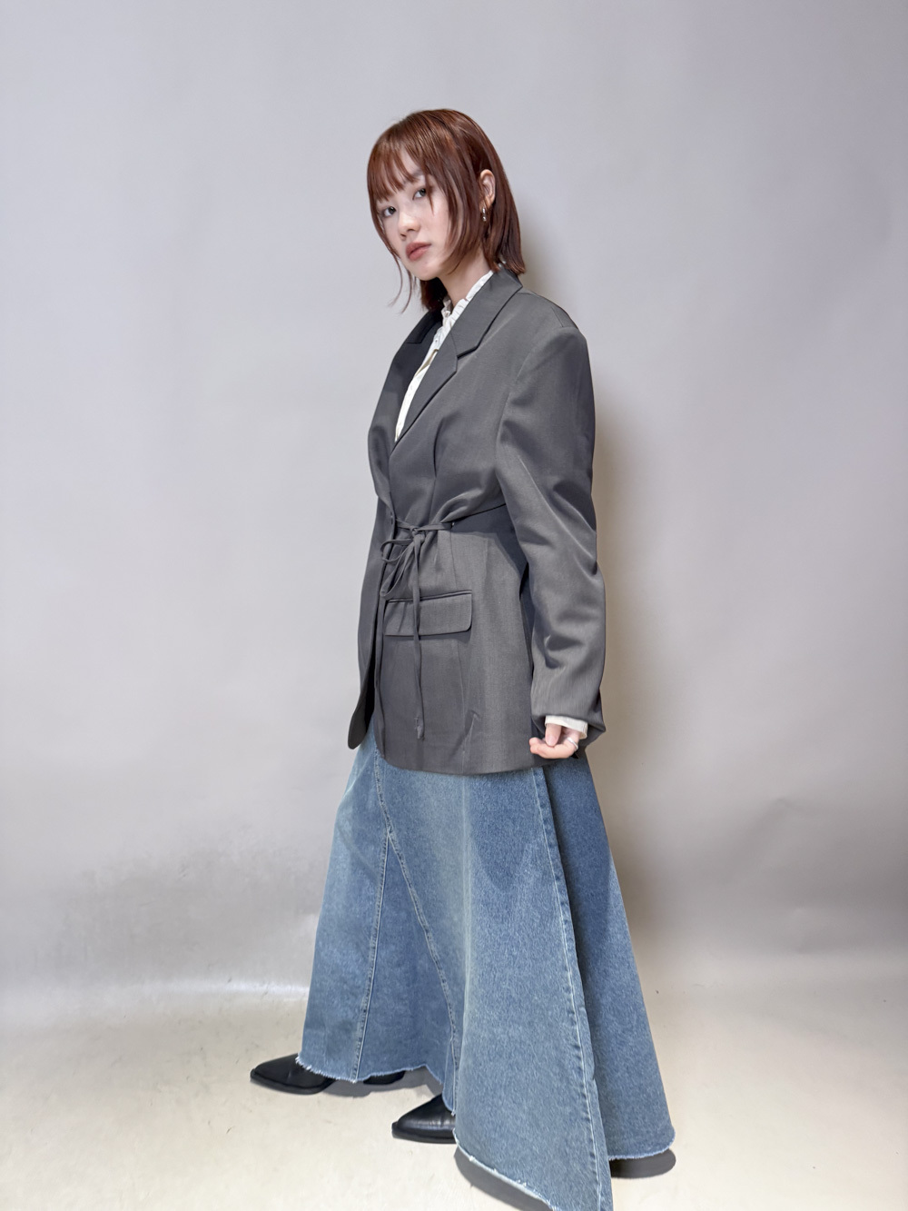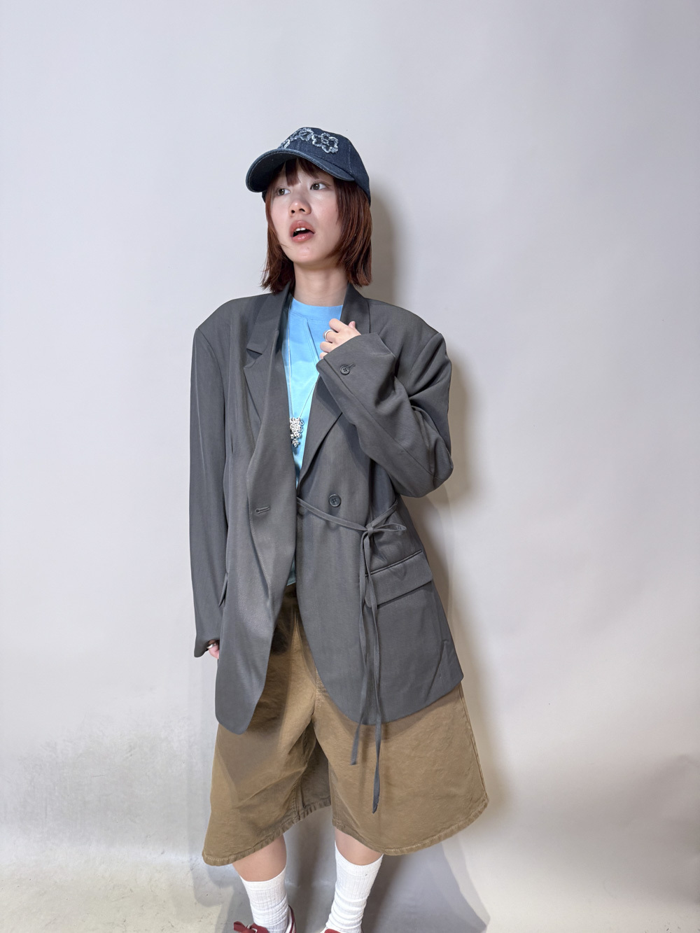 Multi ways oversized Ribbon blazer (GREY/ BLACK)