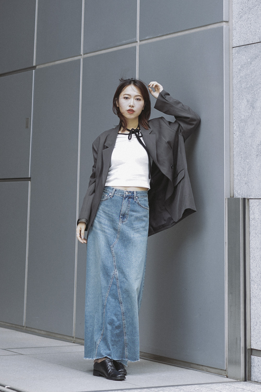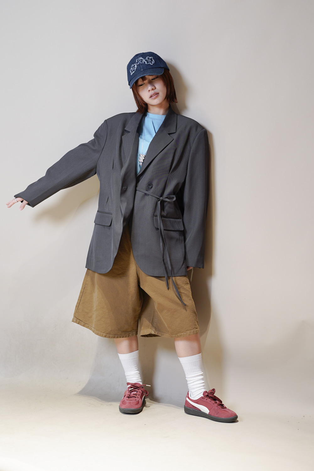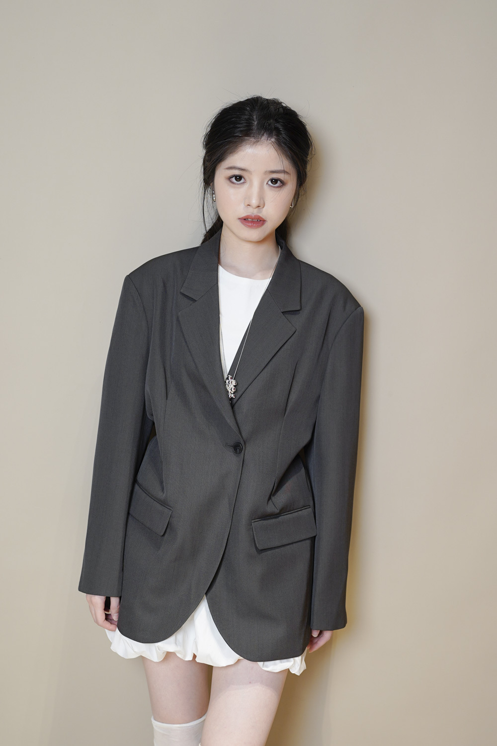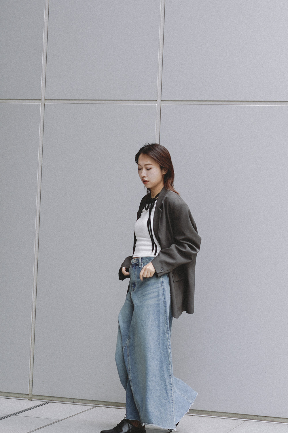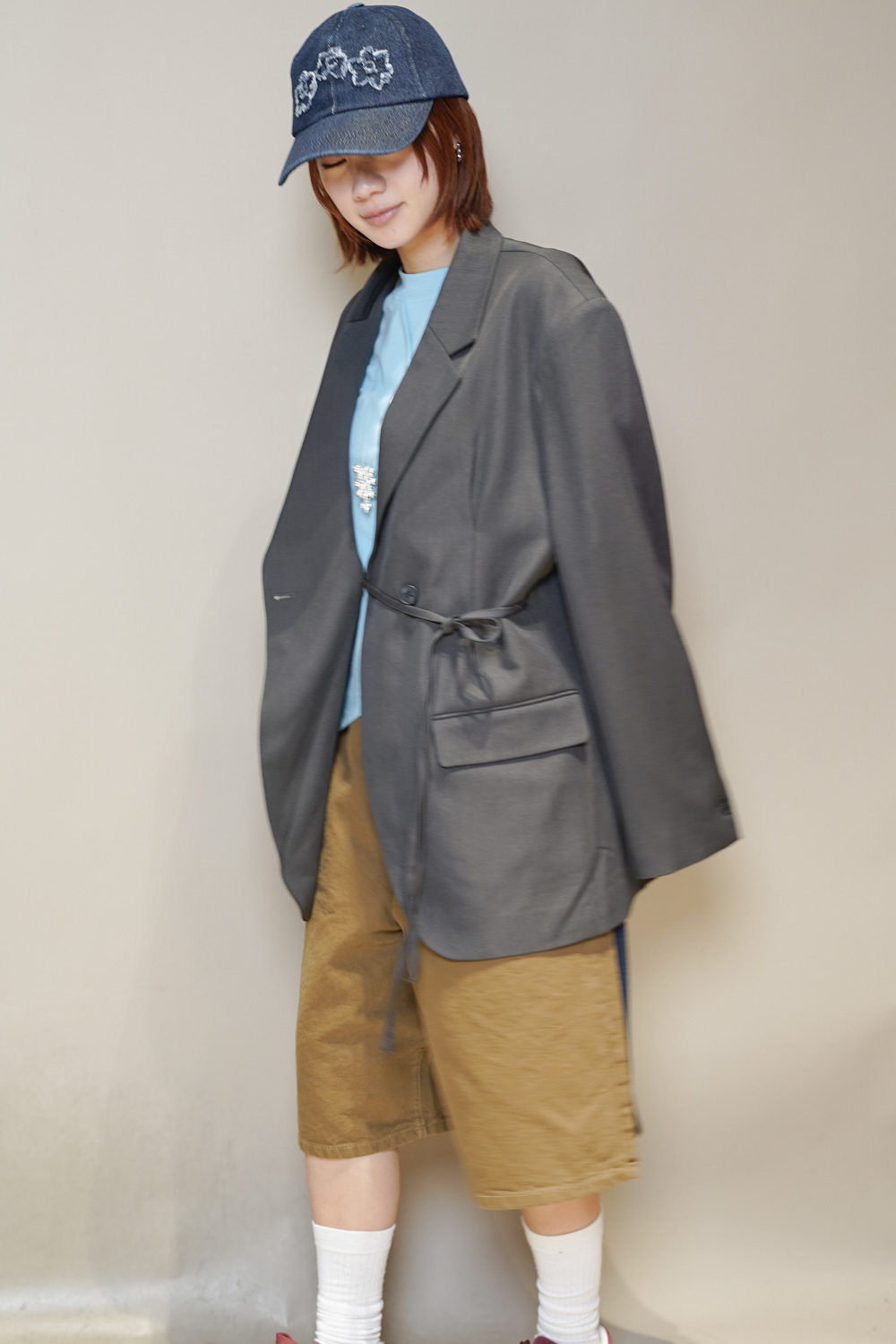 Multi ways oversized Ribbon blazer (GREY/ BLACK)
