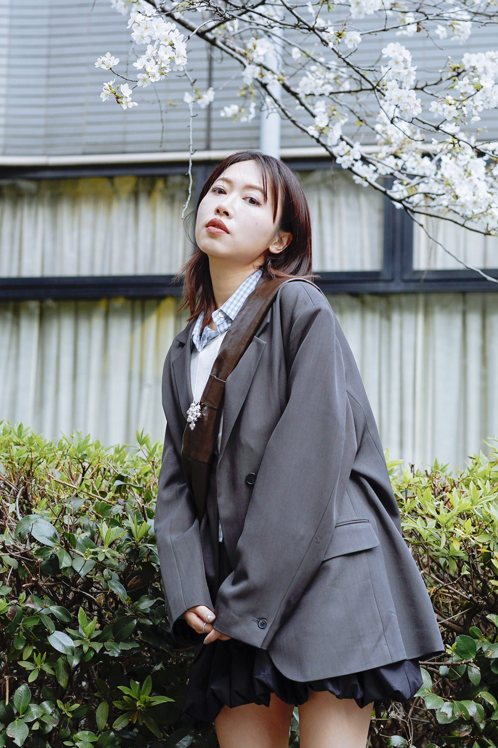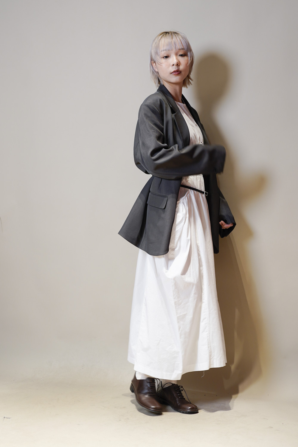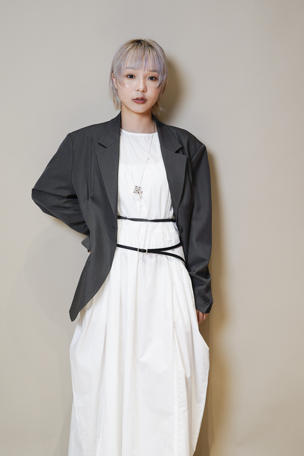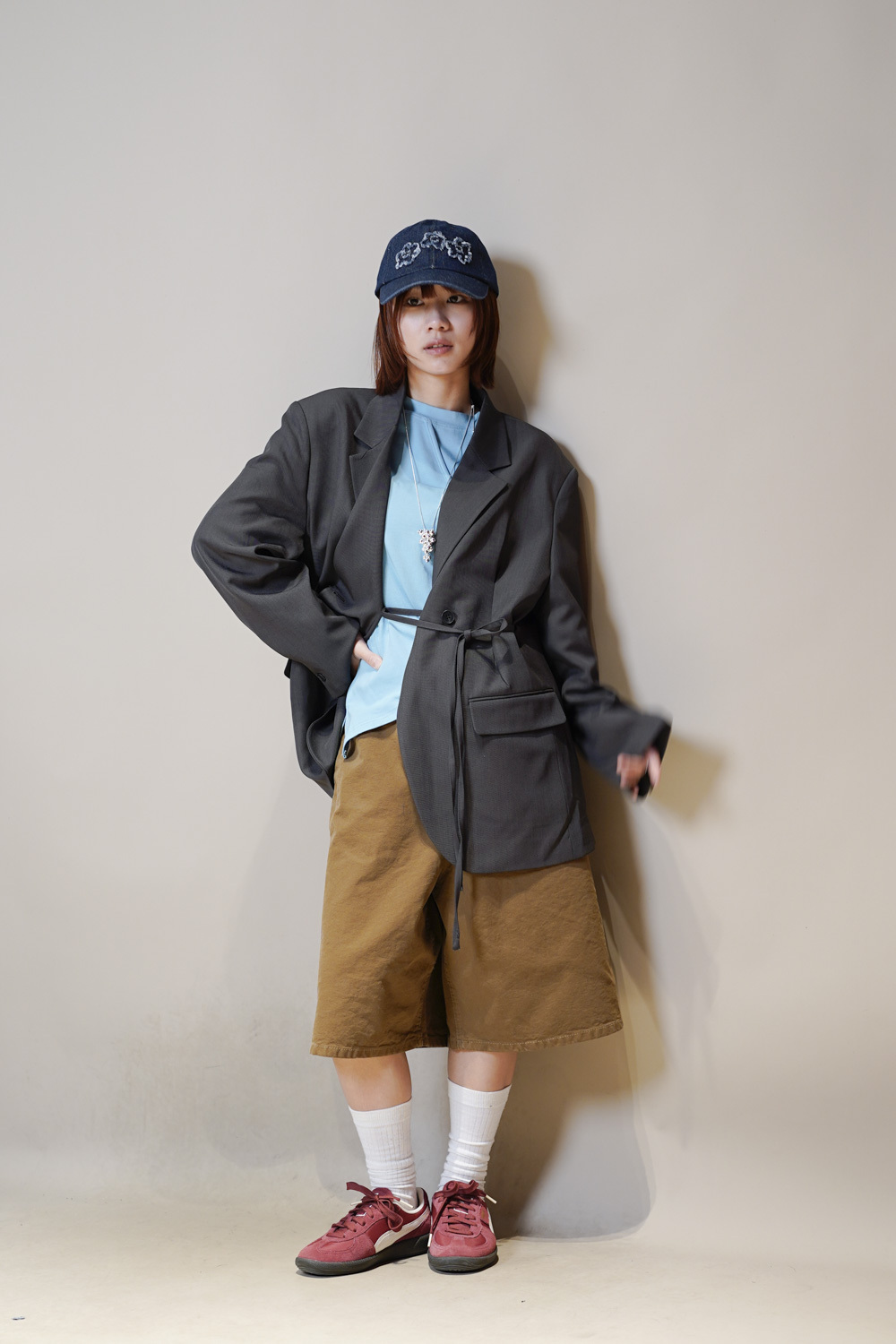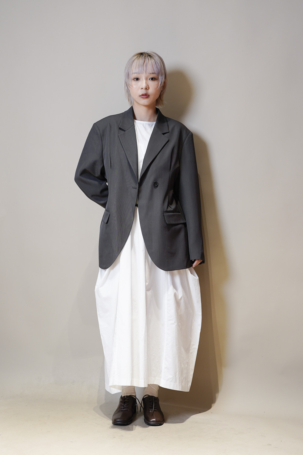 Multi ways oversized Ribbon blazer (GREY/ BLACK)