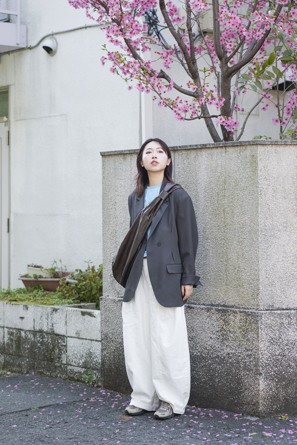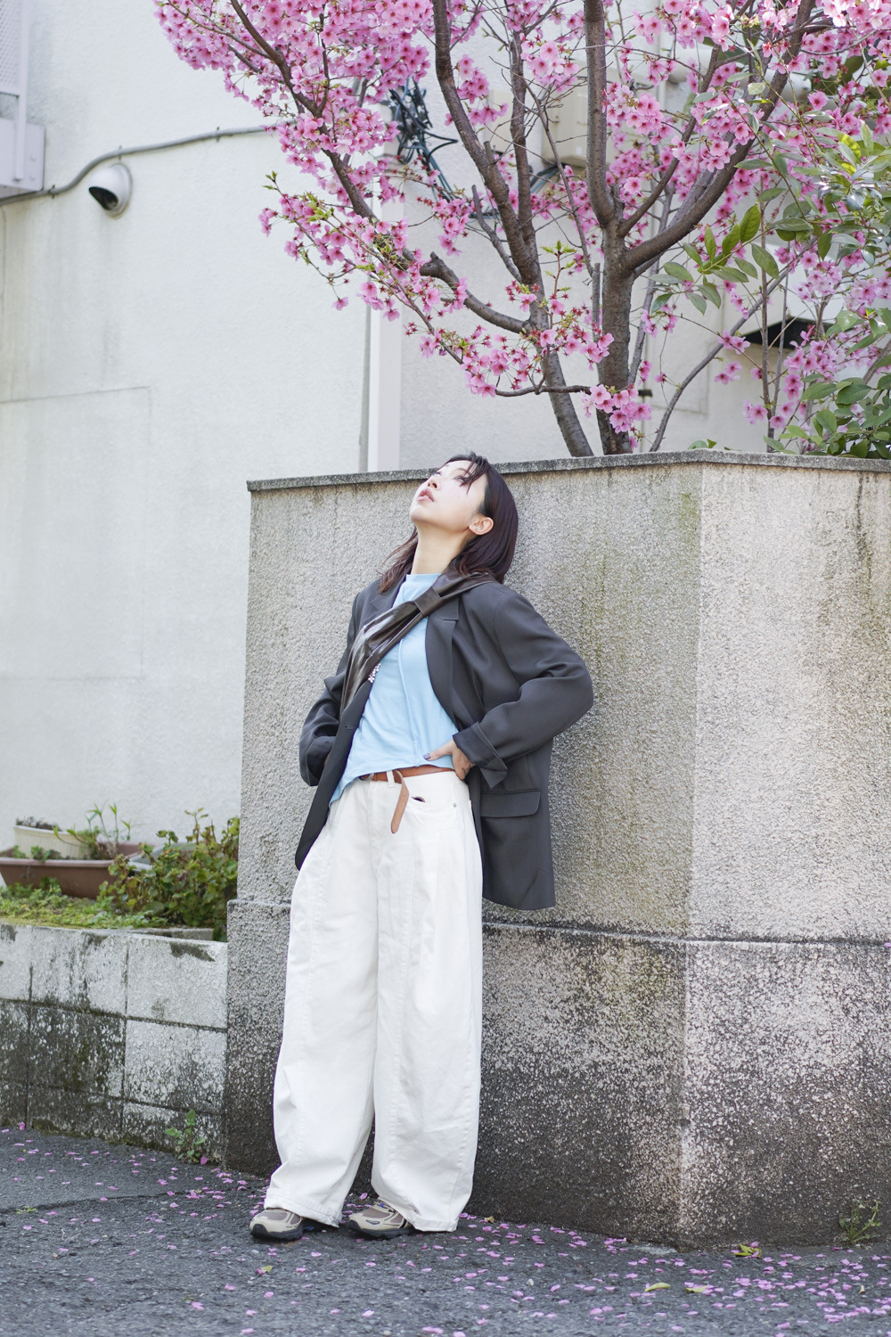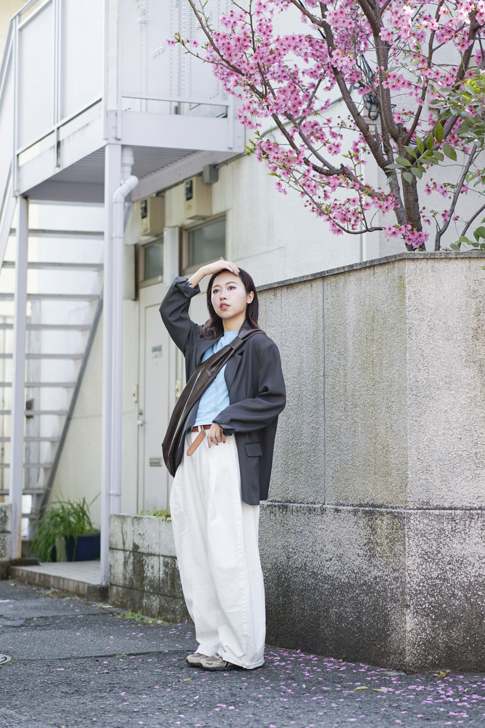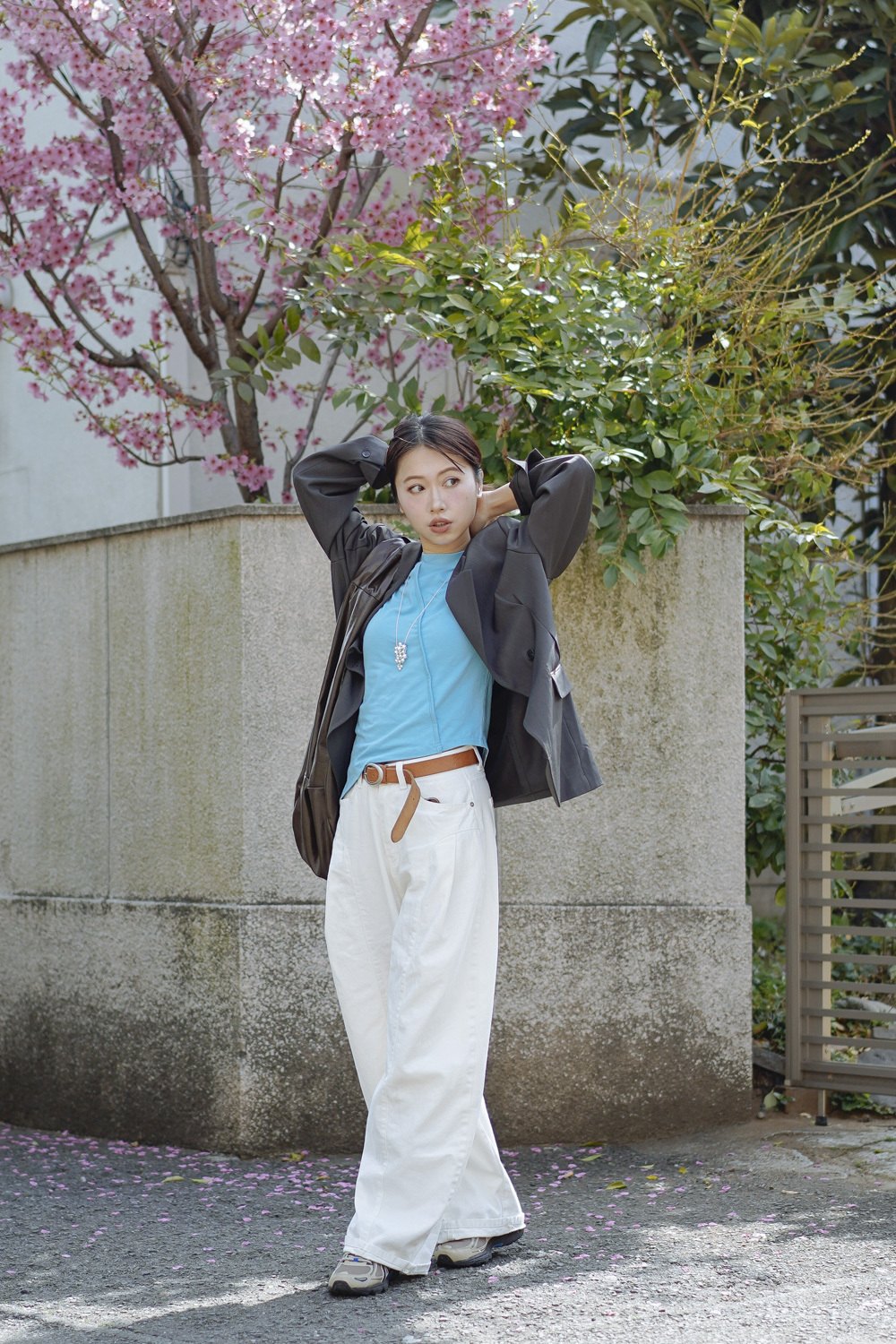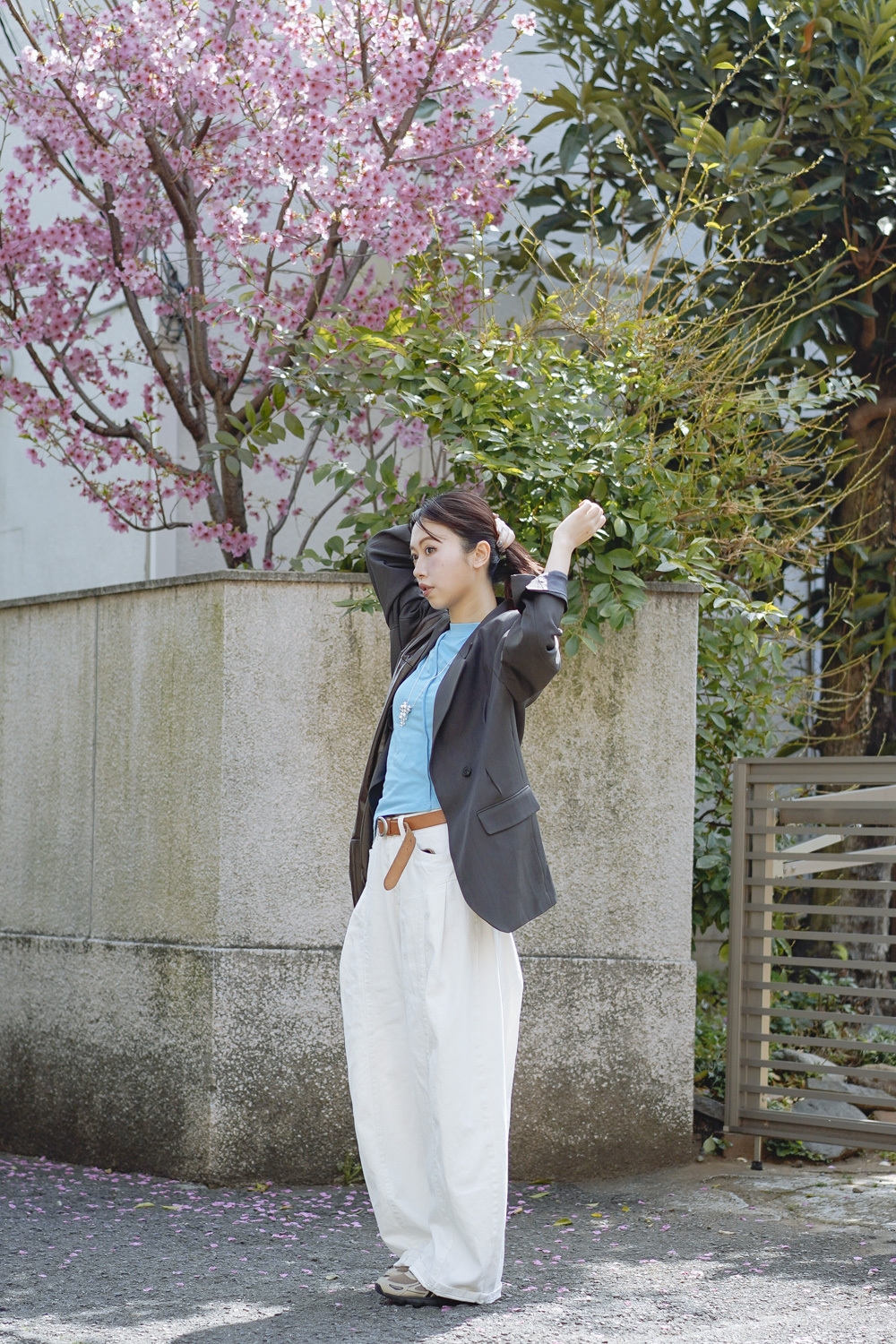 Multi ways oversized Ribbon blazer (GREY/ BLACK)