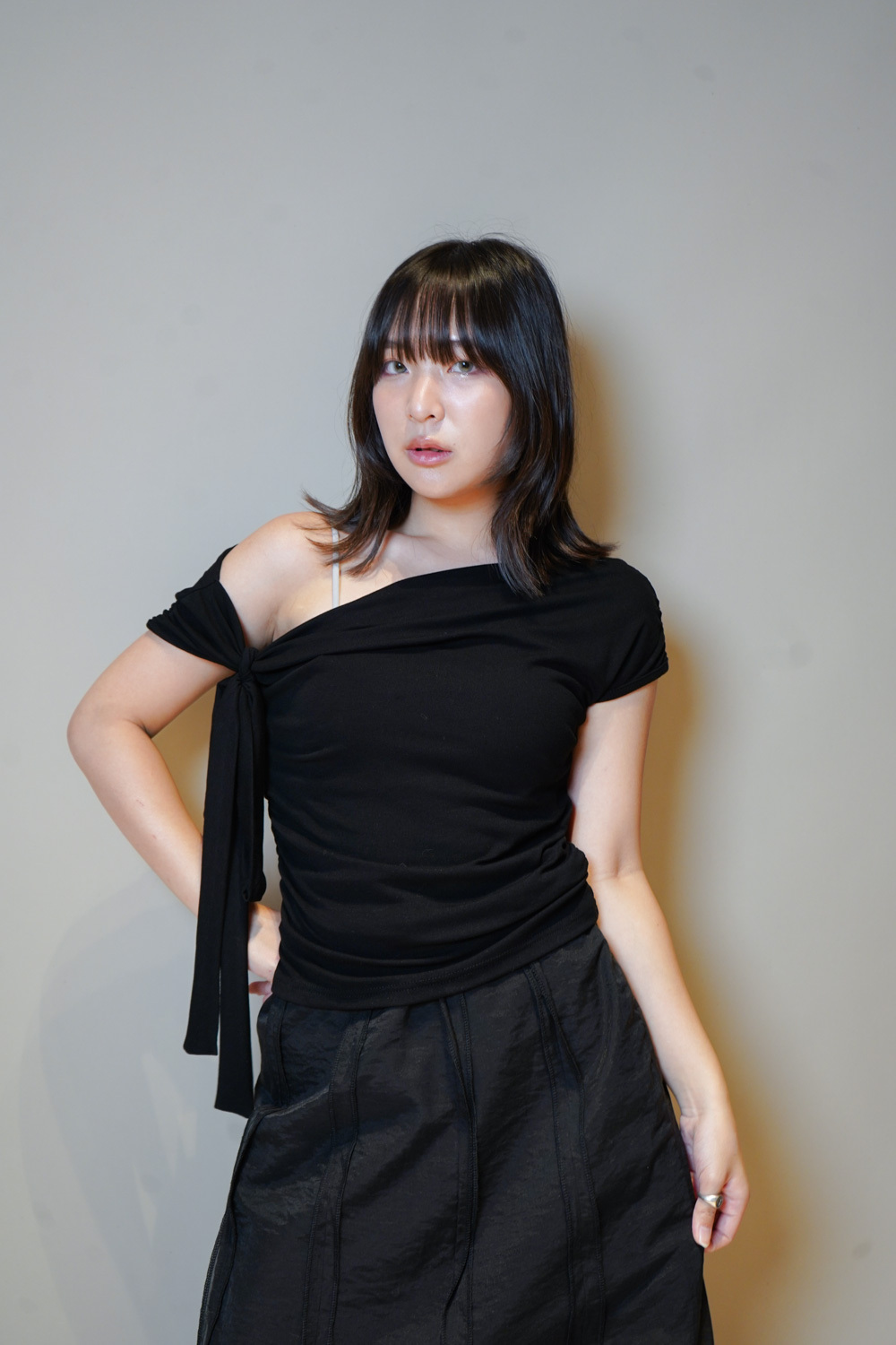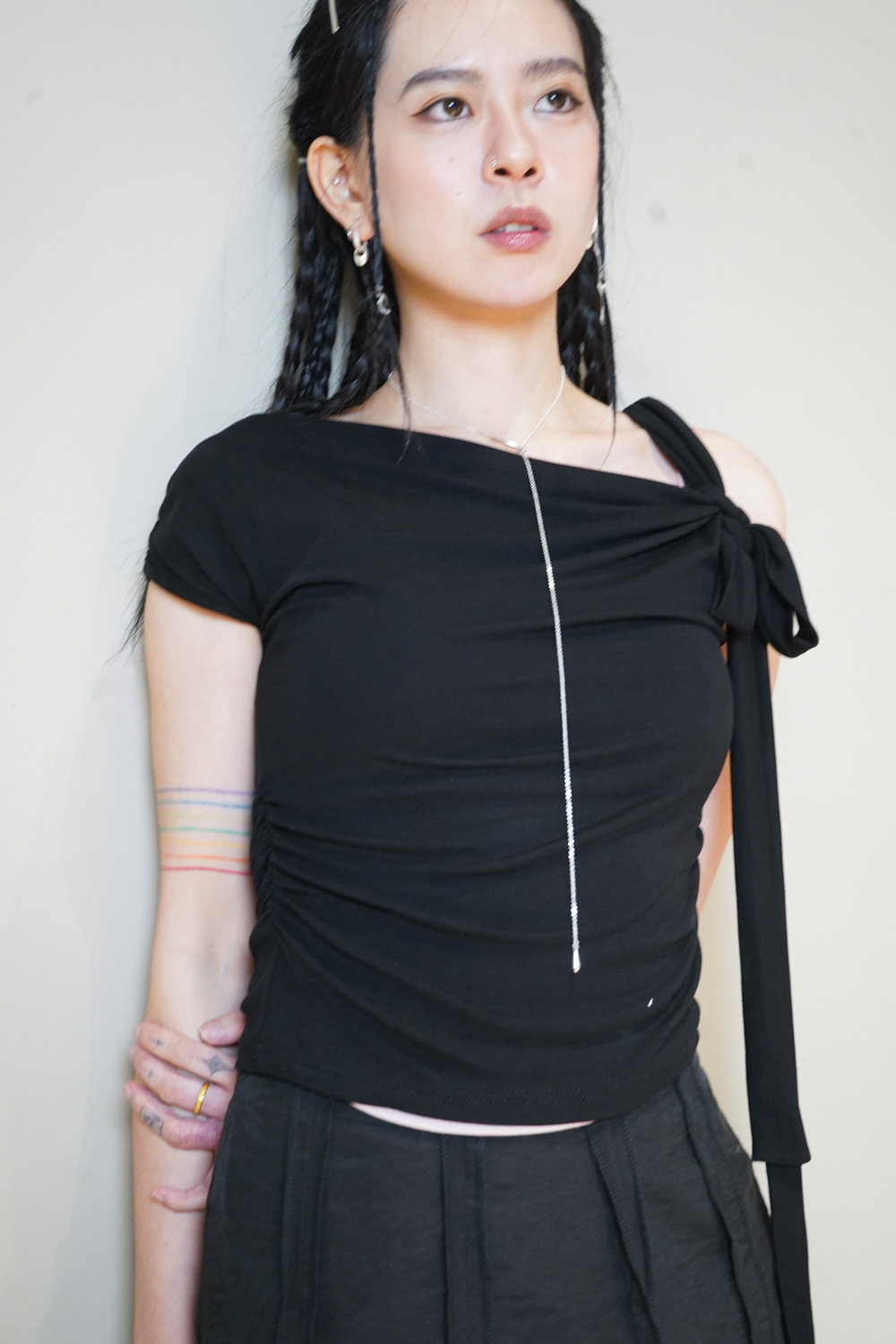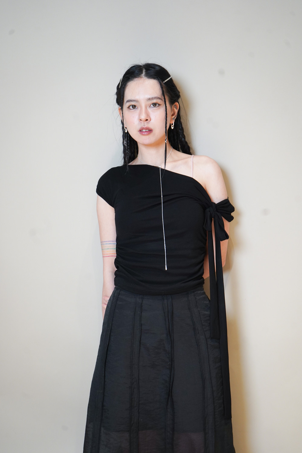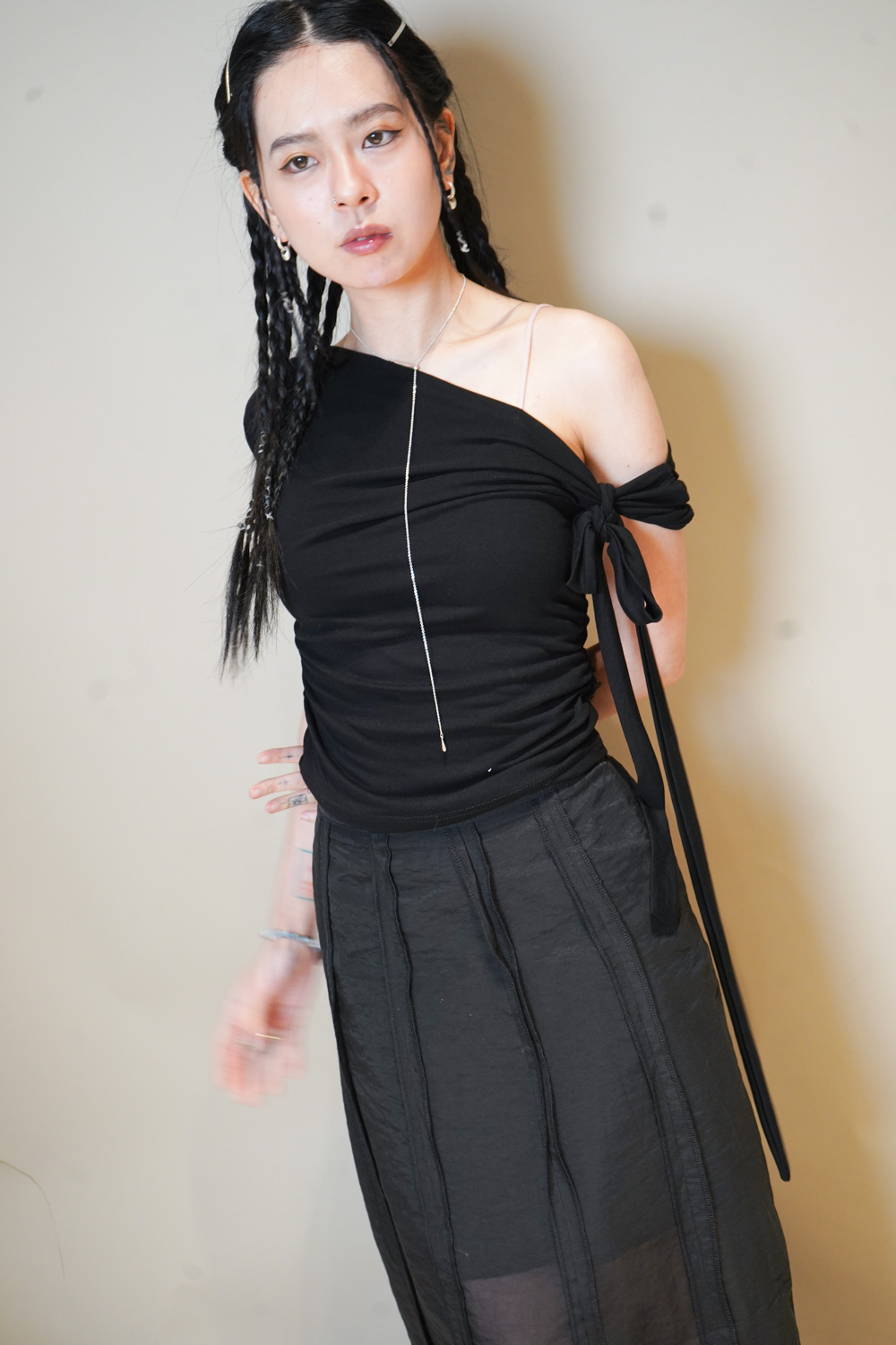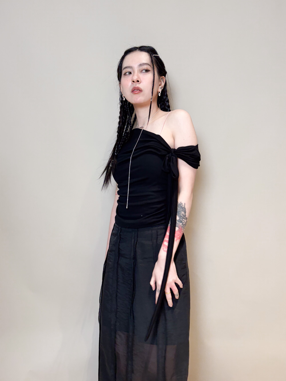 Muse off shoulder ribbon top (PURPLE / BLACK)