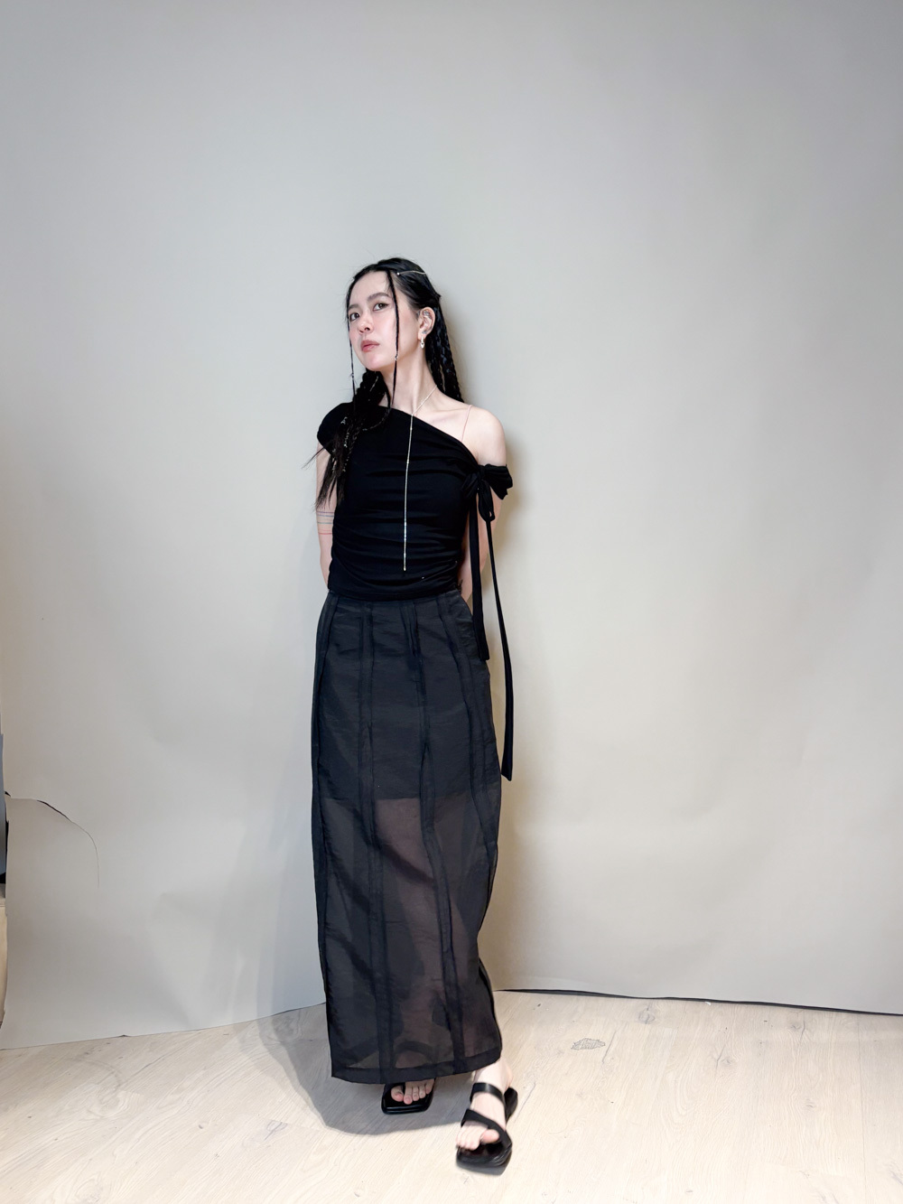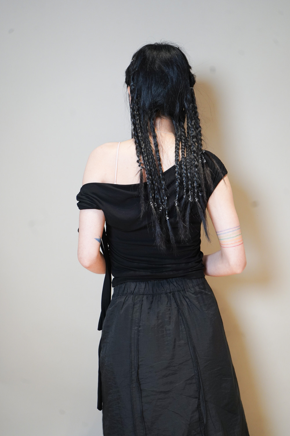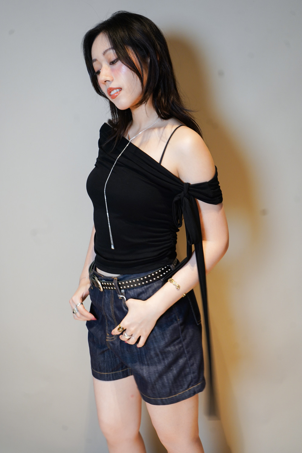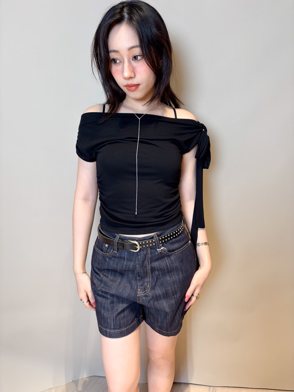 Muse off shoulder ribbon top (PURPLE / BLACK)