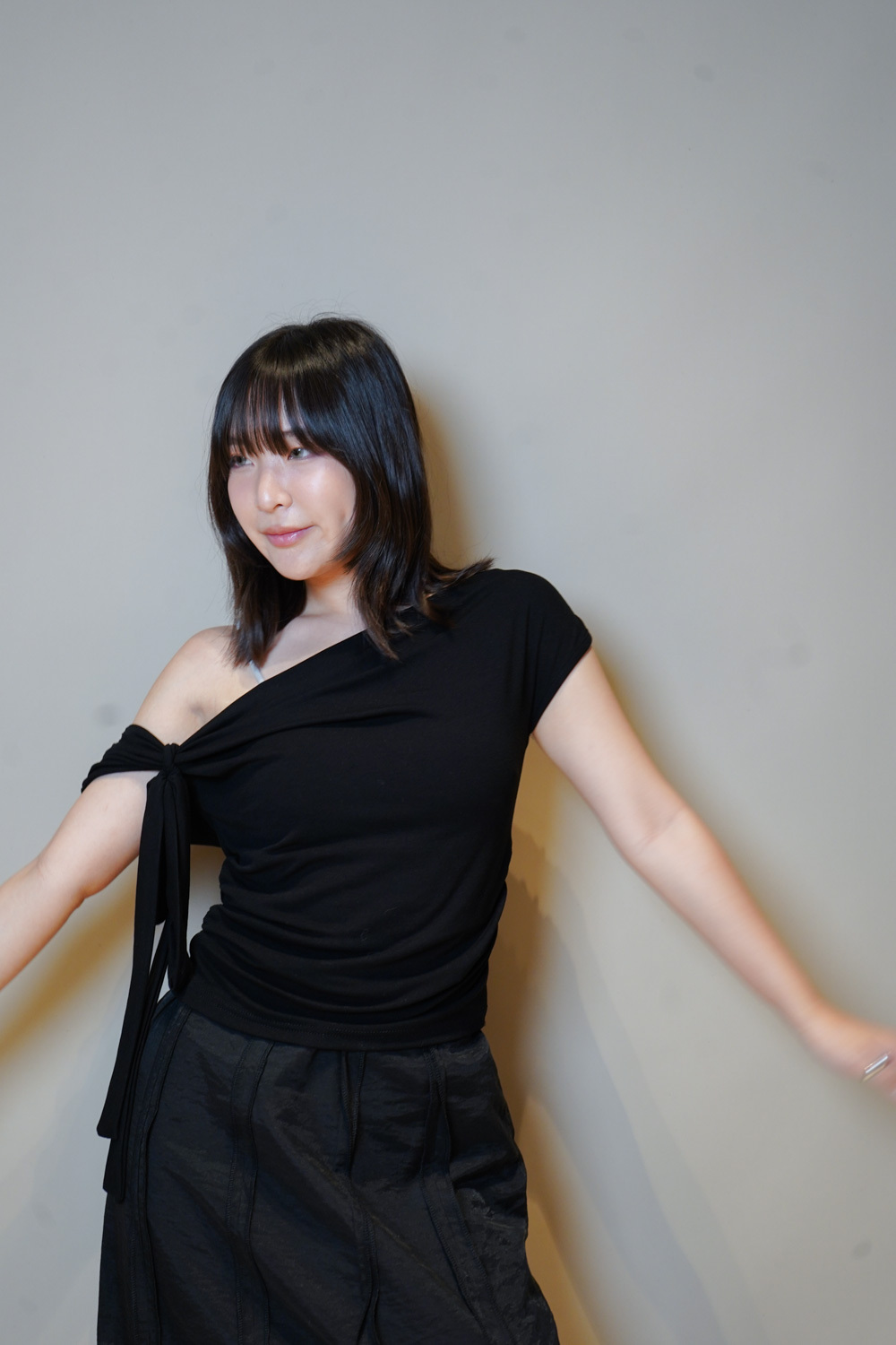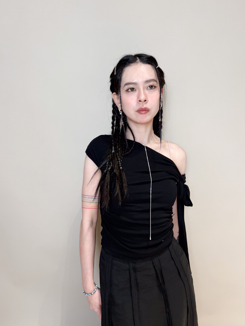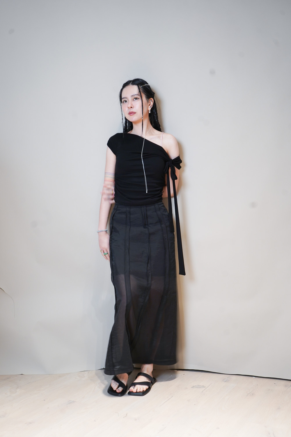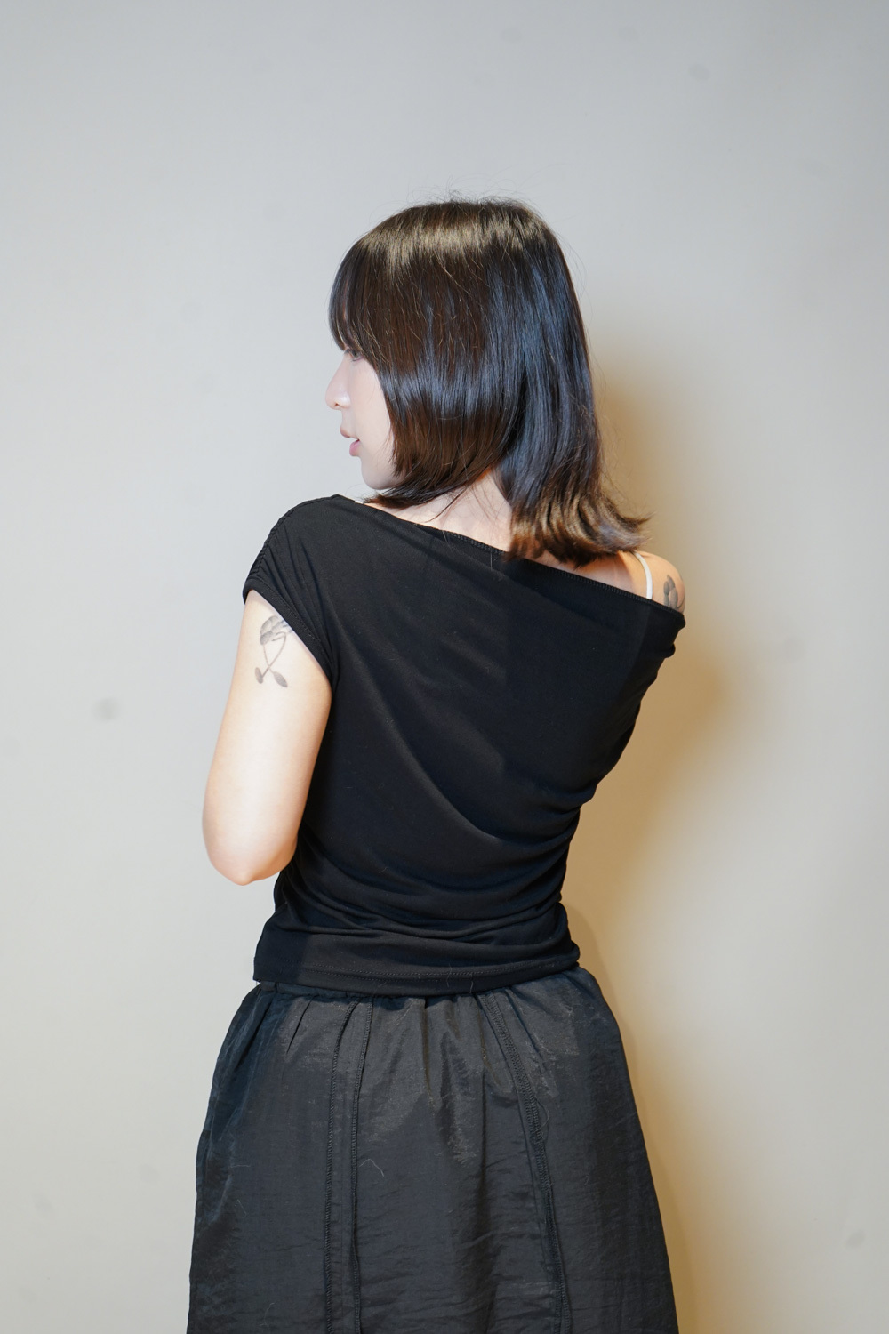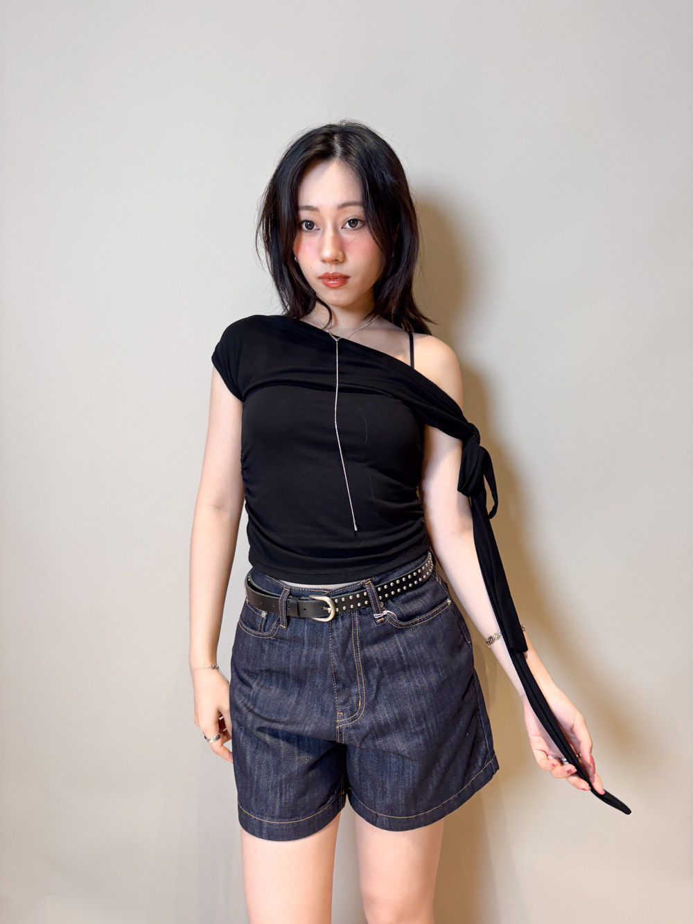 Muse off shoulder ribbon top (PURPLE / BLACK)