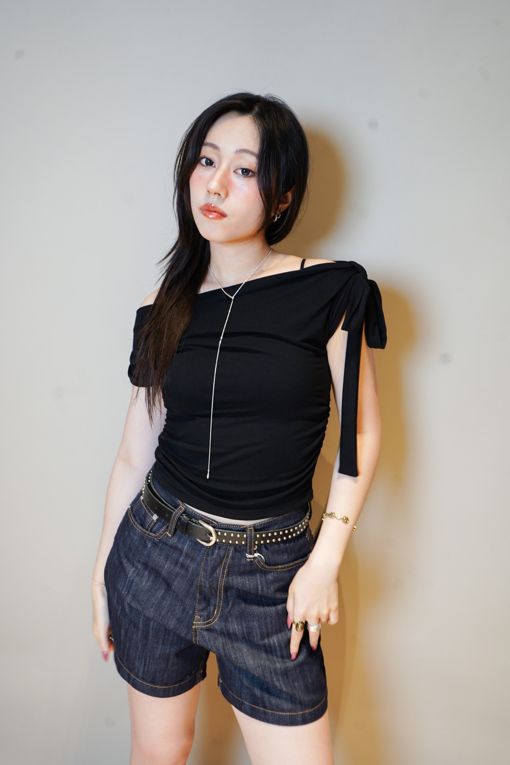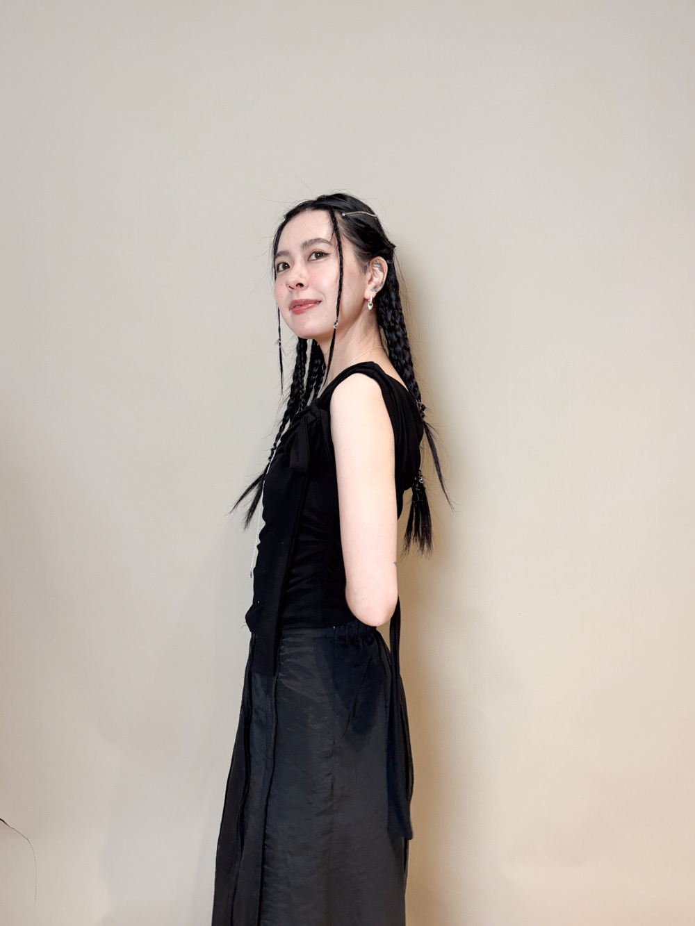 搭配綁帶長蝴蝶結行動之間流露出浪漫與女人味/