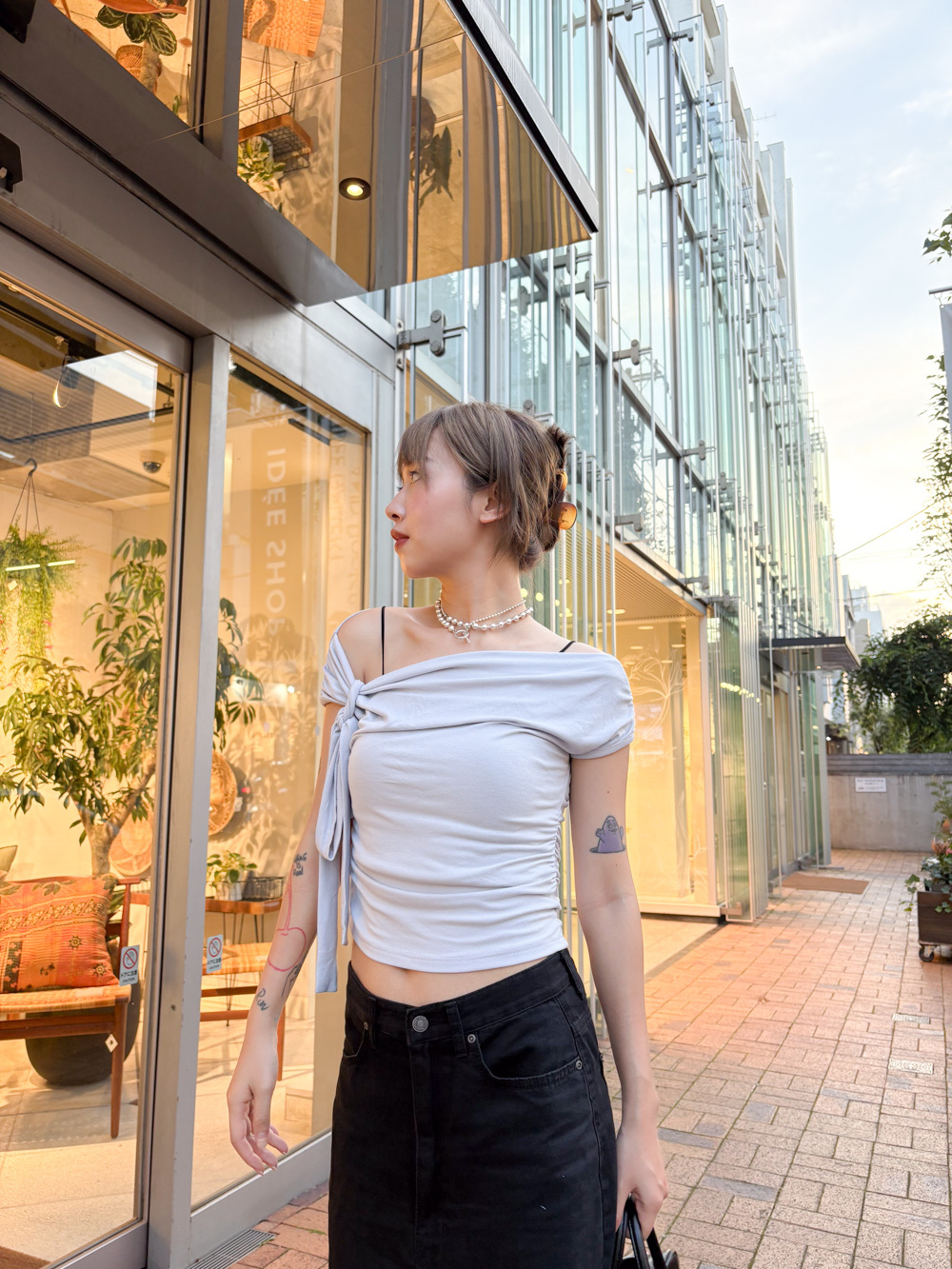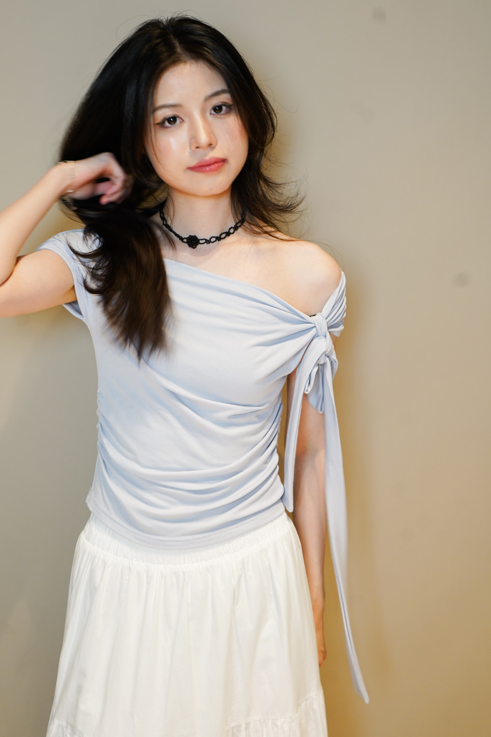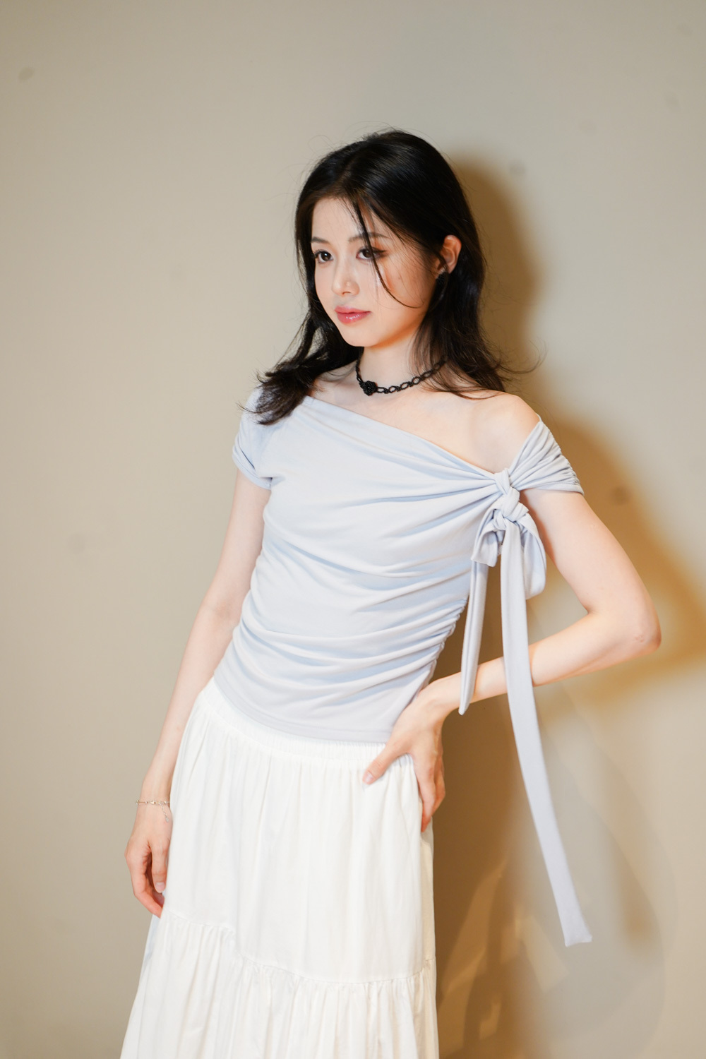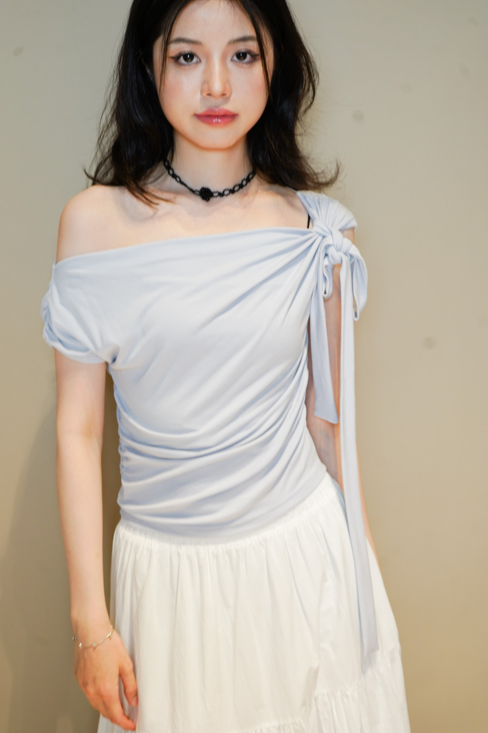 Muse off shoulder ribbon top (PURPLE / BLACK)