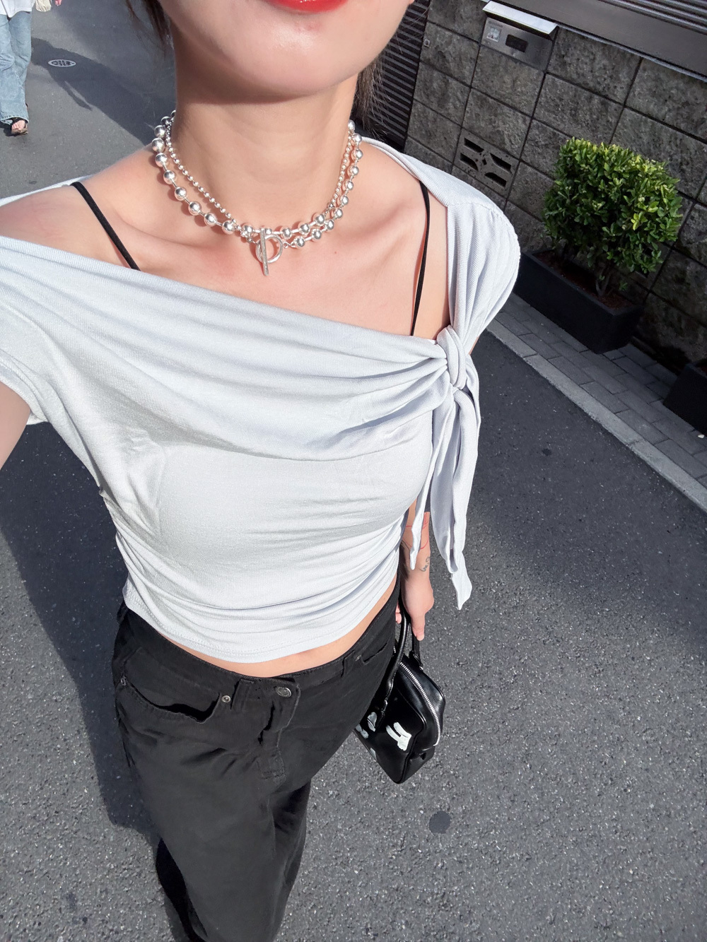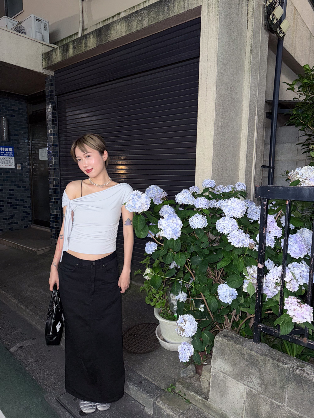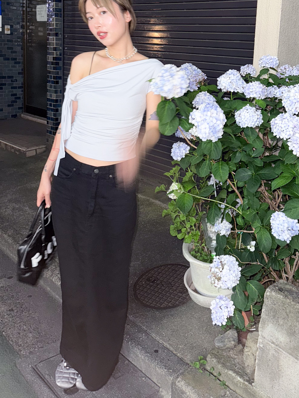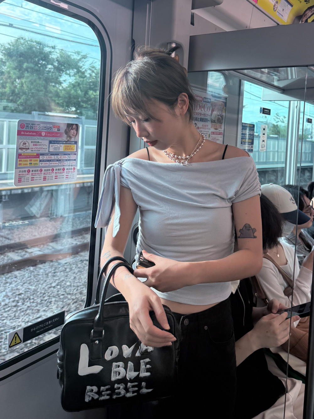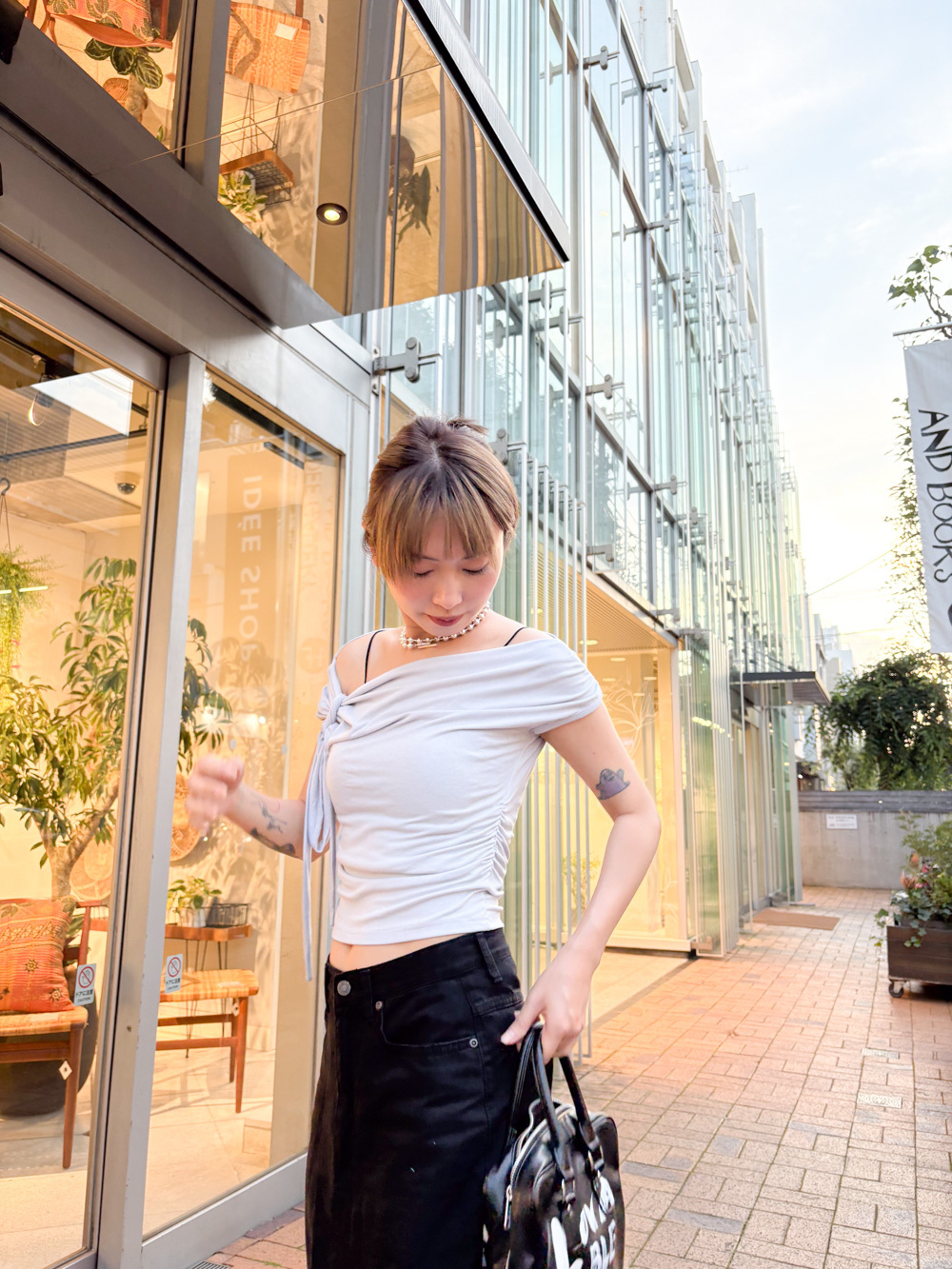 Muse off shoulder ribbon top (PURPLE / BLACK)
