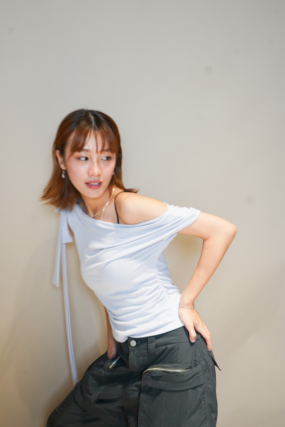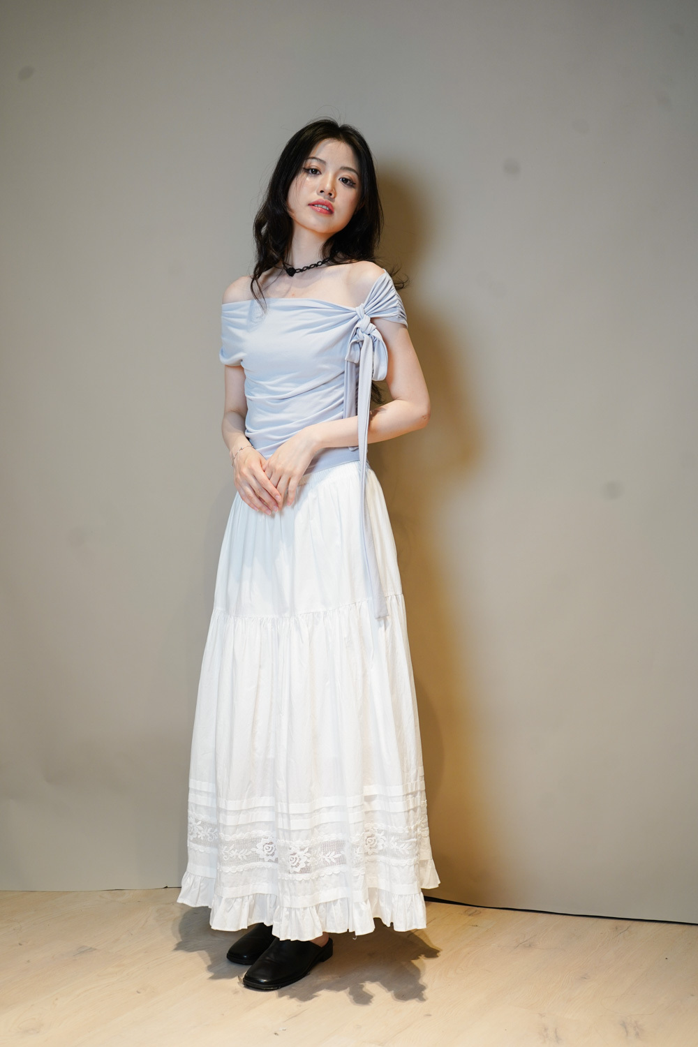 搭配綁帶長蝴蝶結行動之間流露出浪漫與女人味/