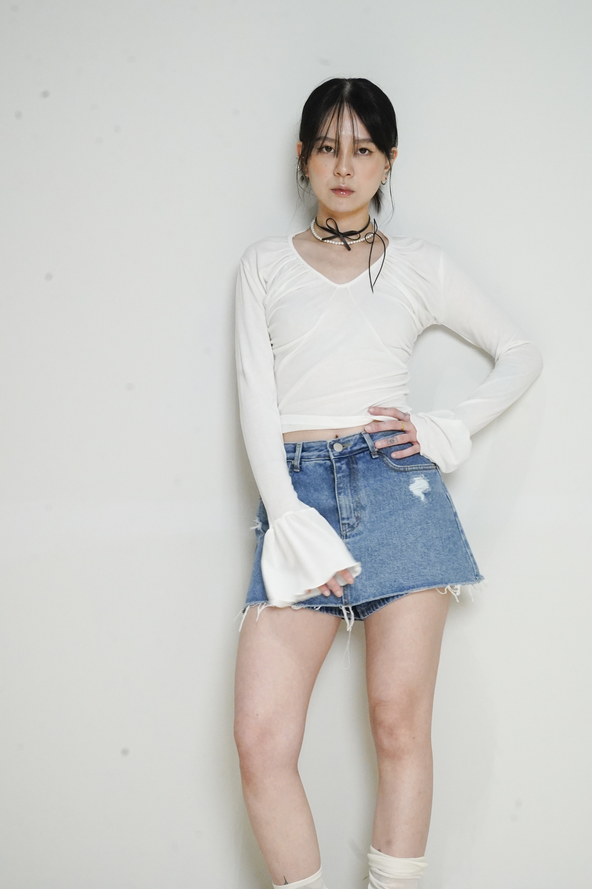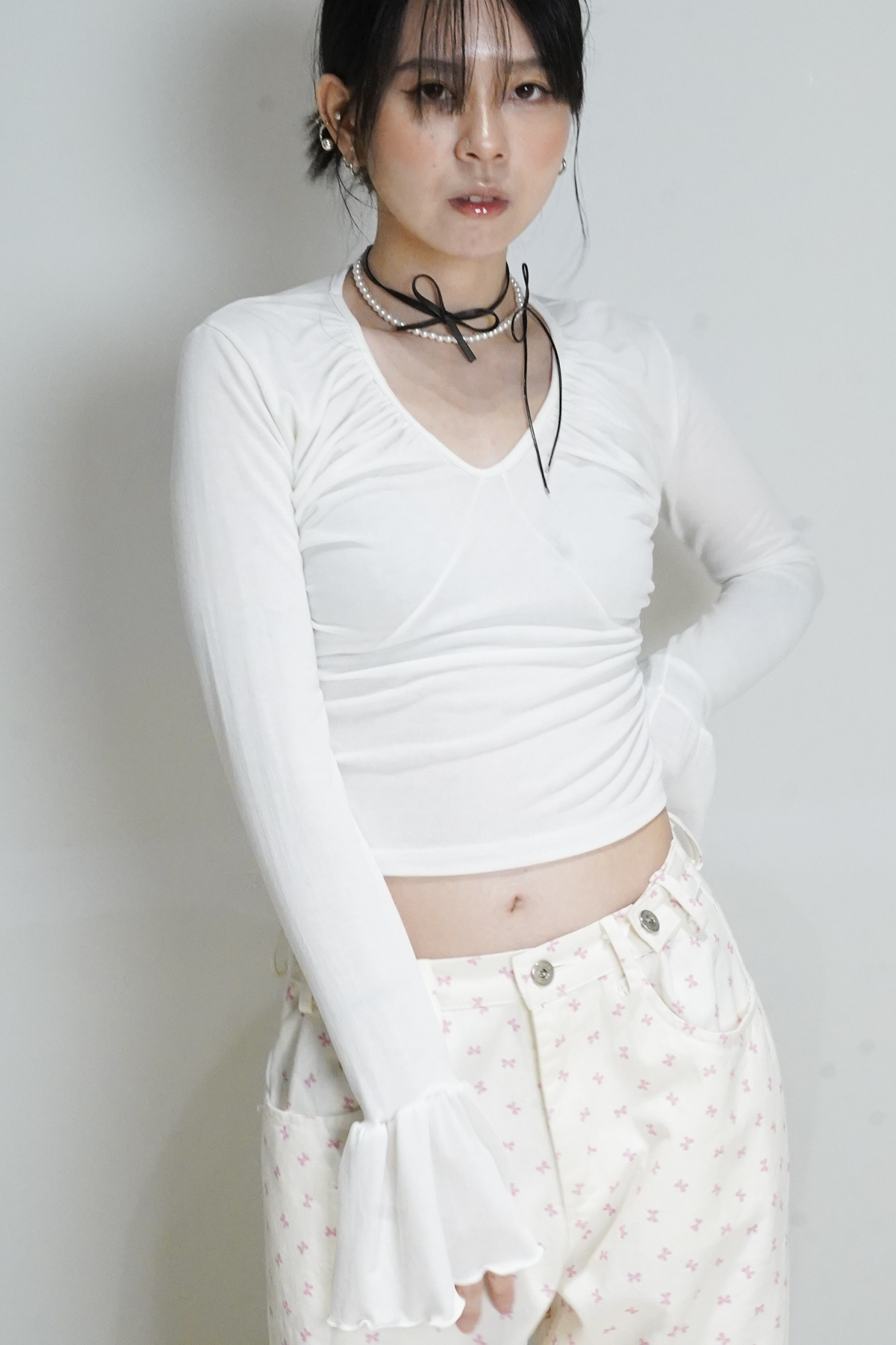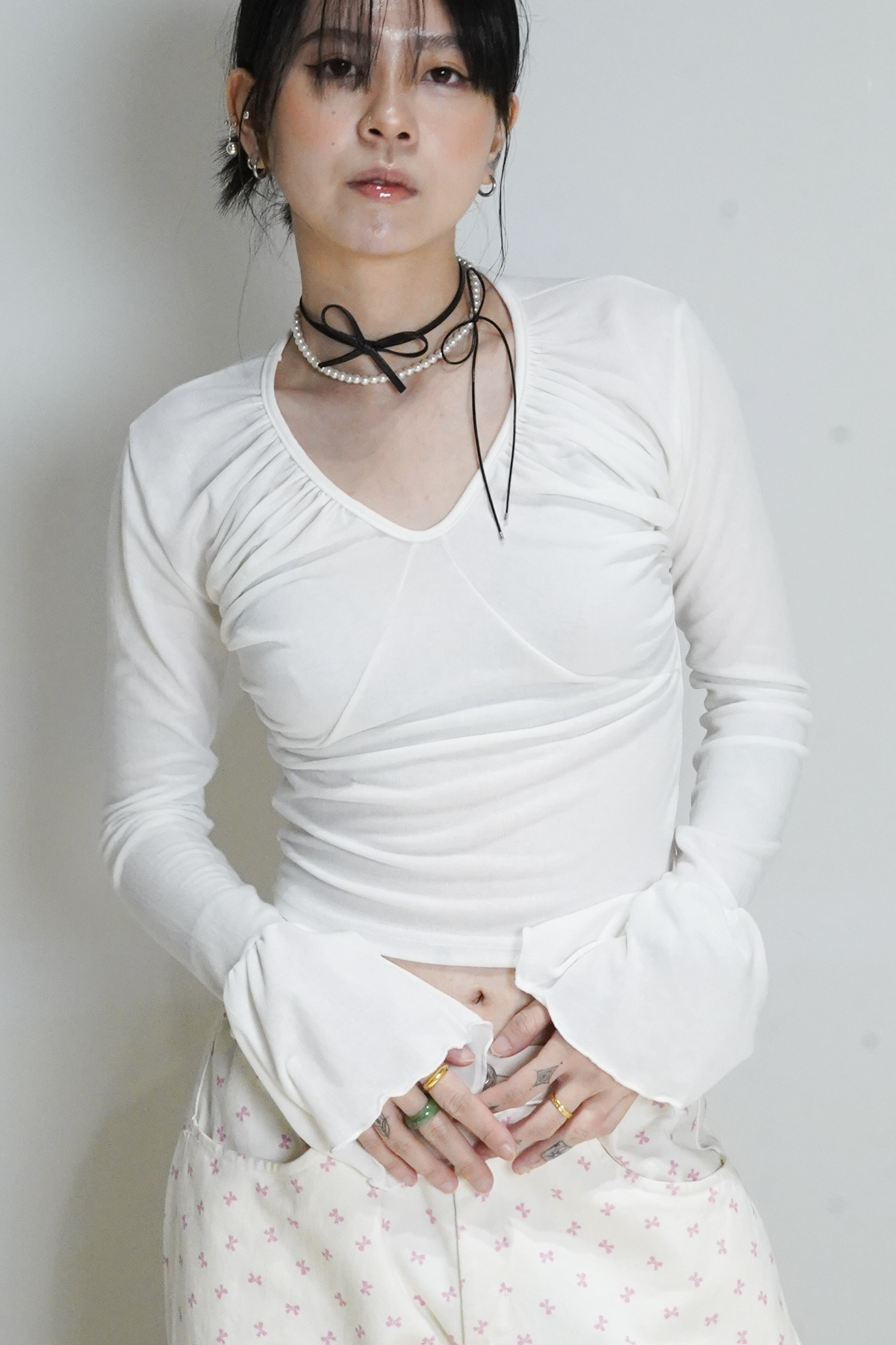 胸前ruffle修飾身型 增加造型氣質感/