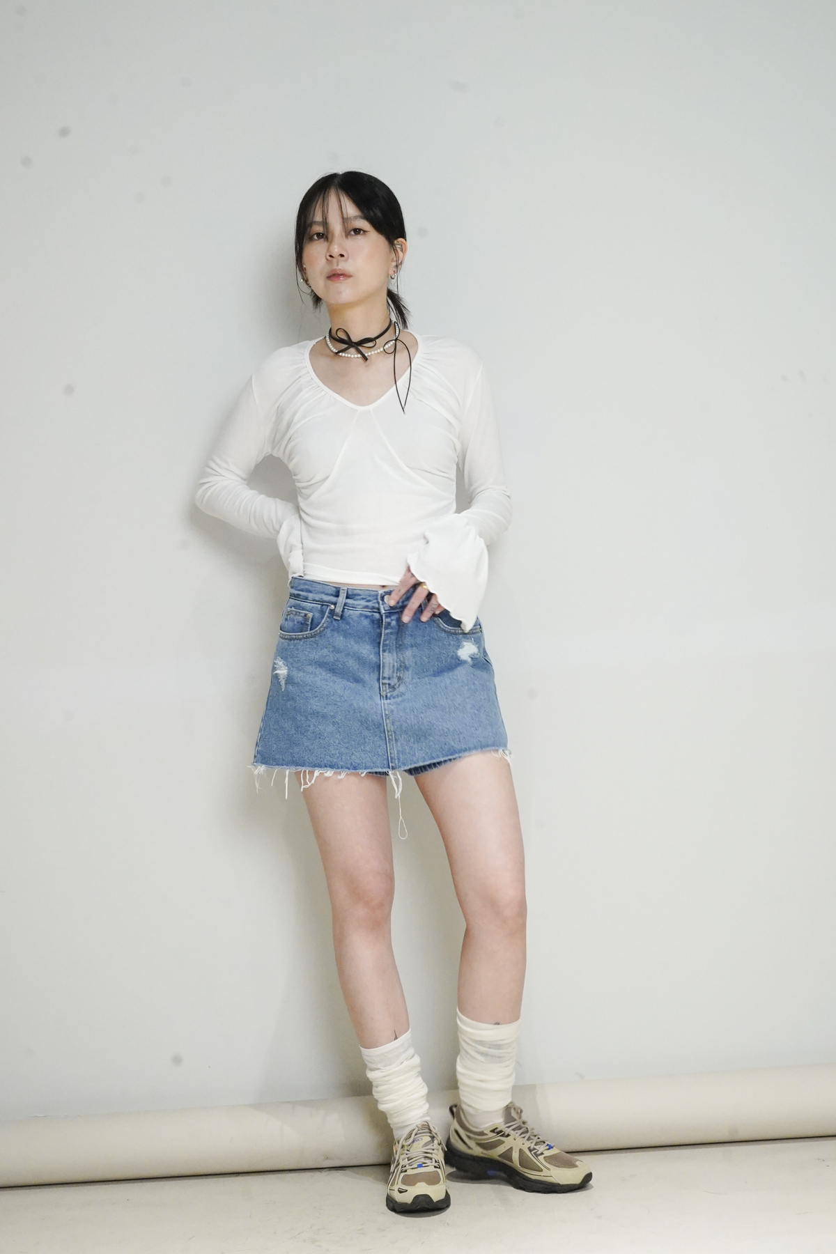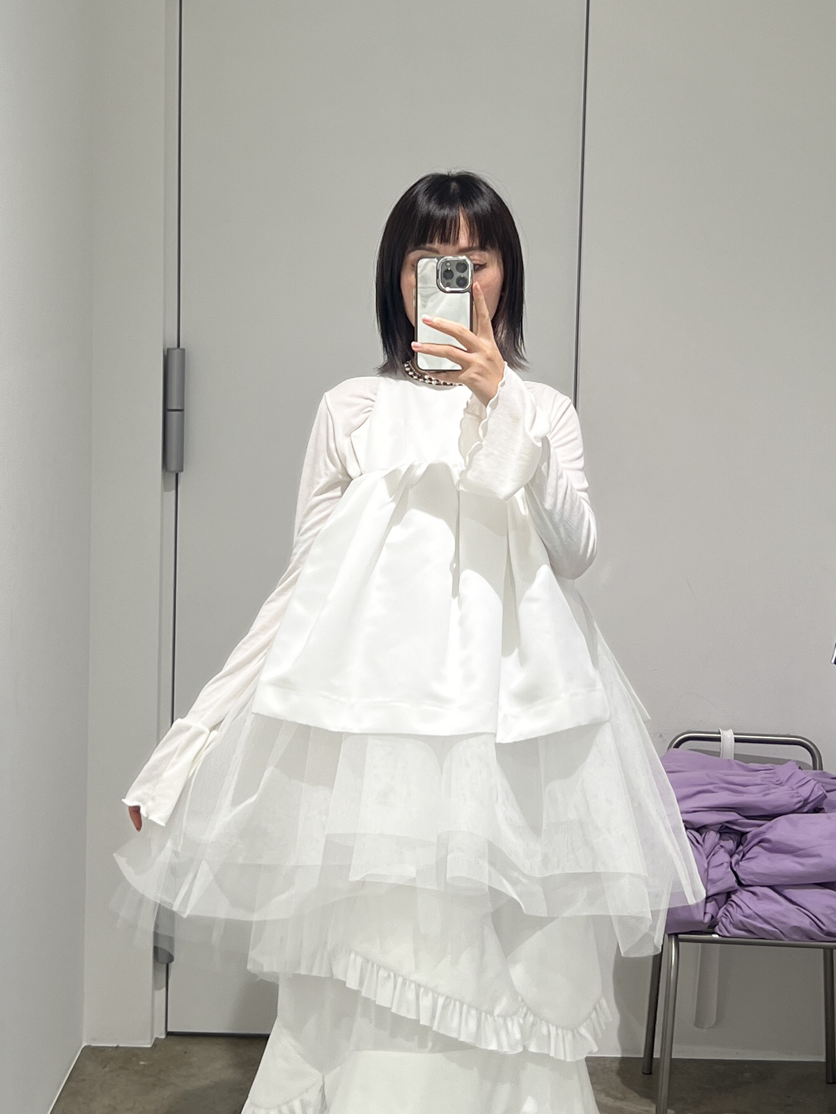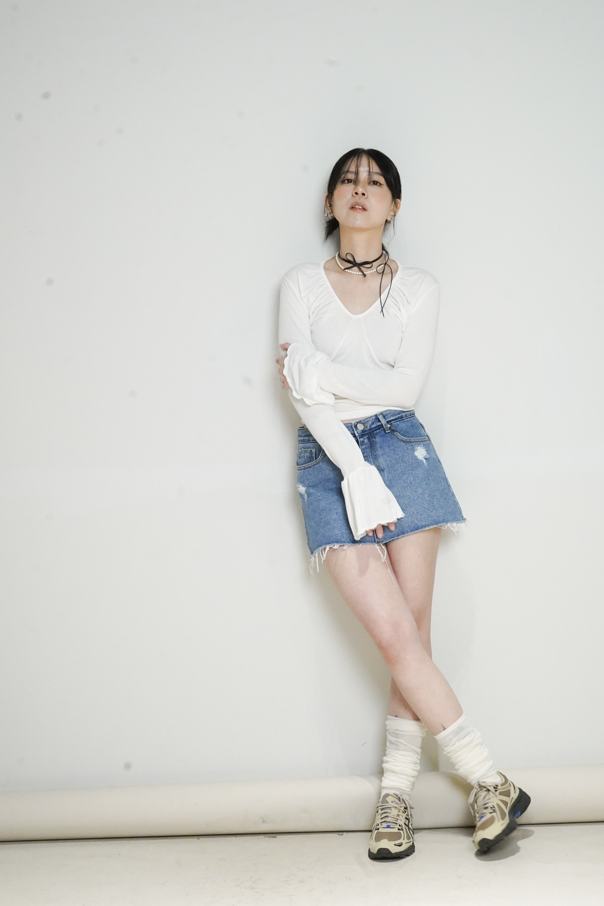 胸前ruffle修飾身型 增加造型氣質感/