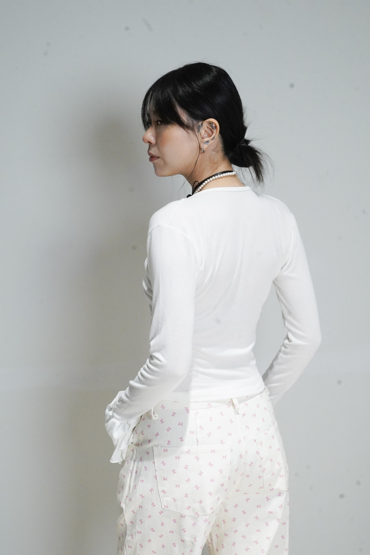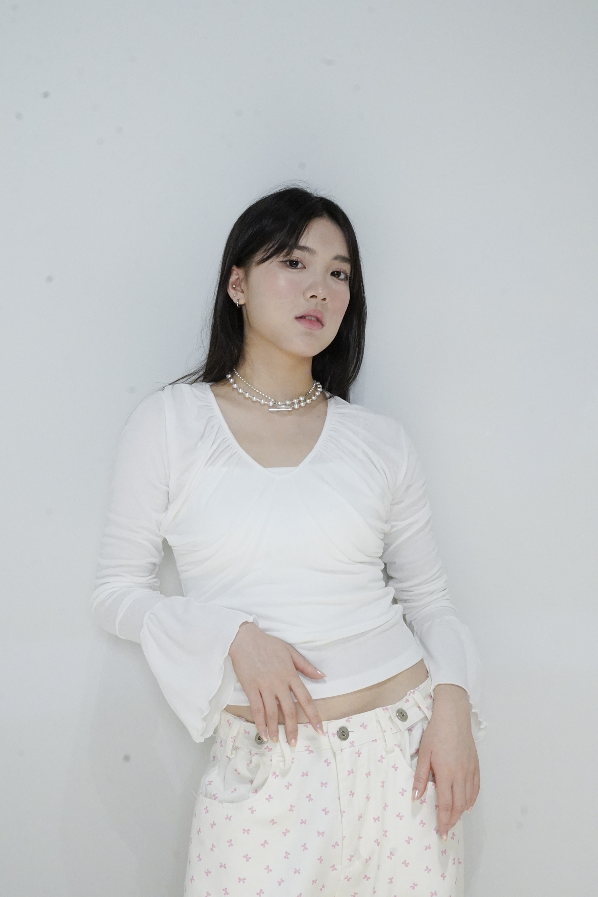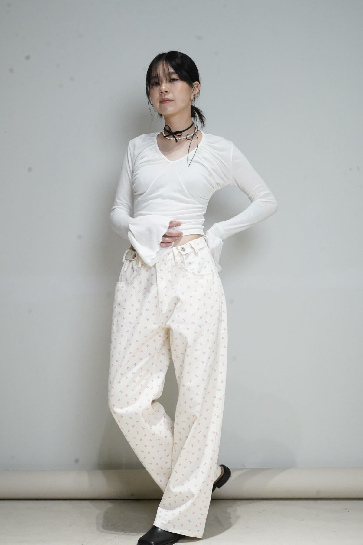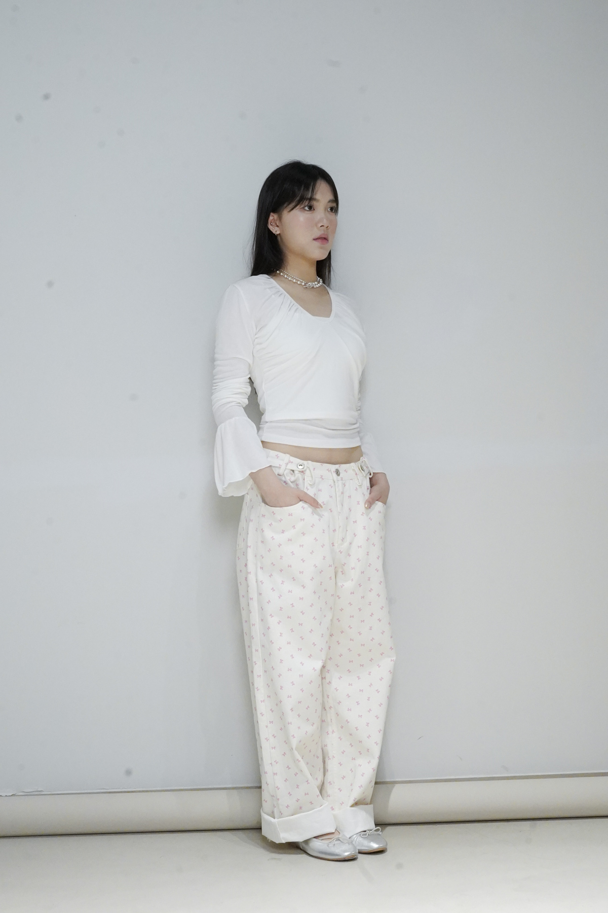 flare sleeves long top (WHITE/BLACK)