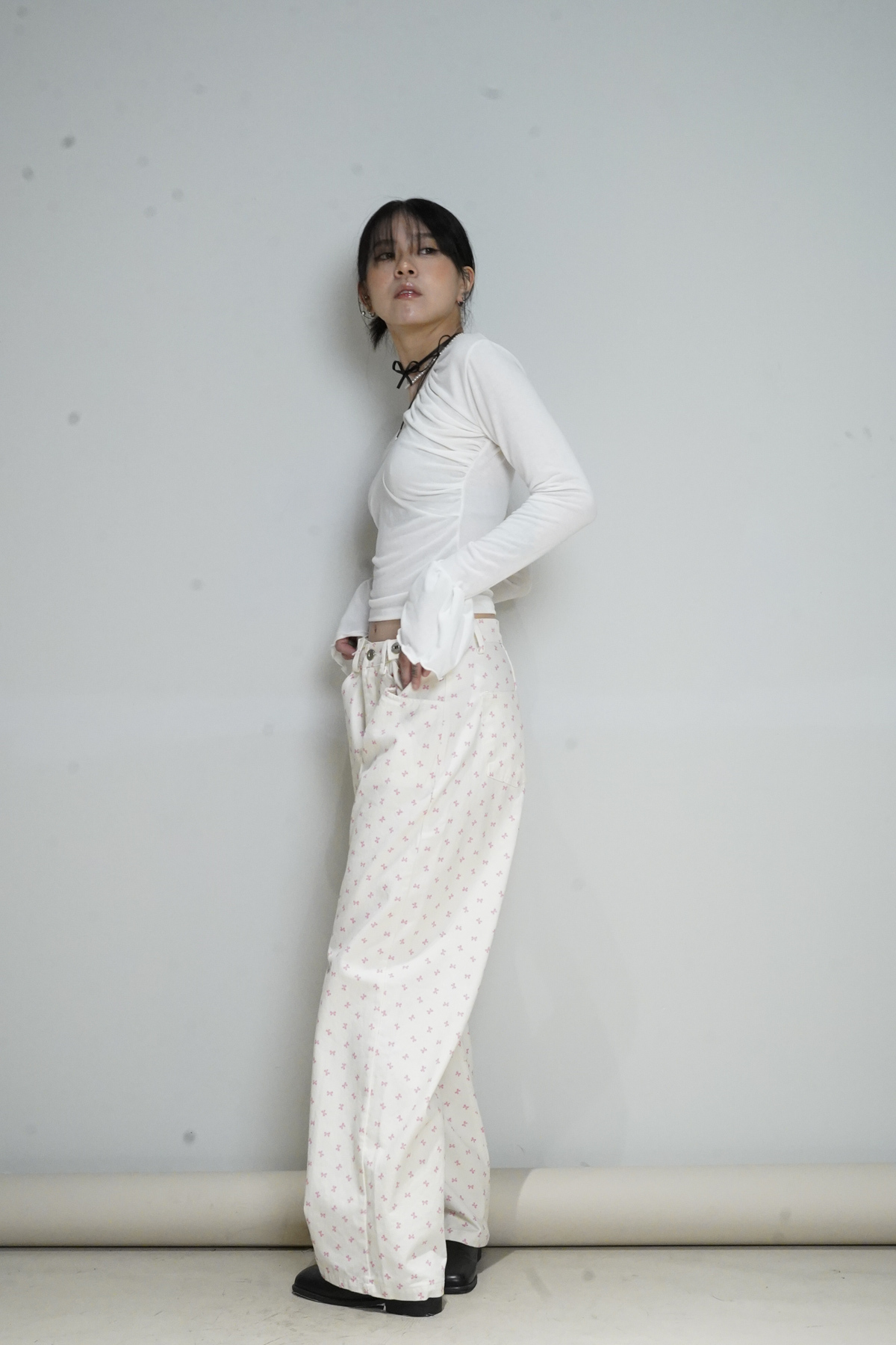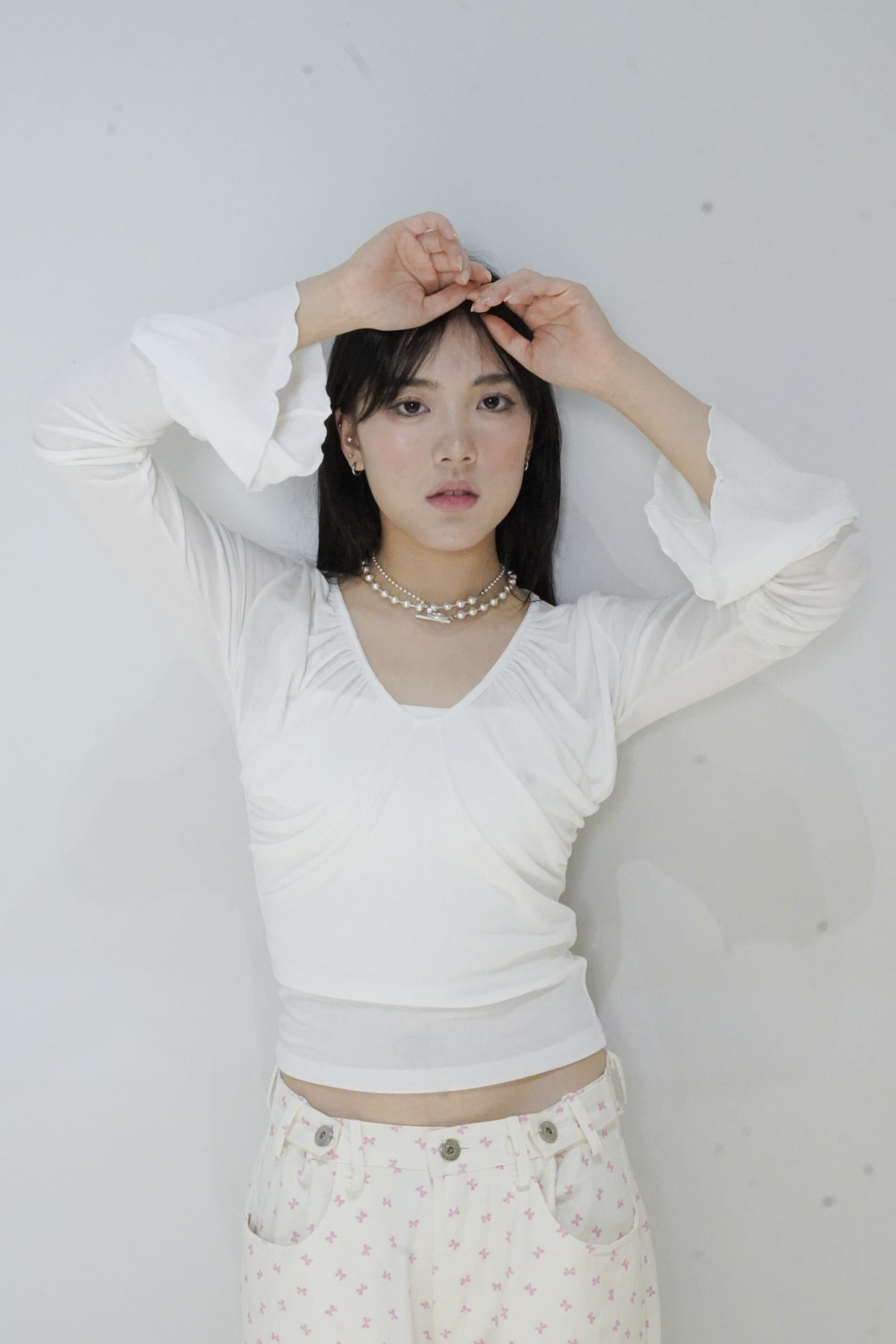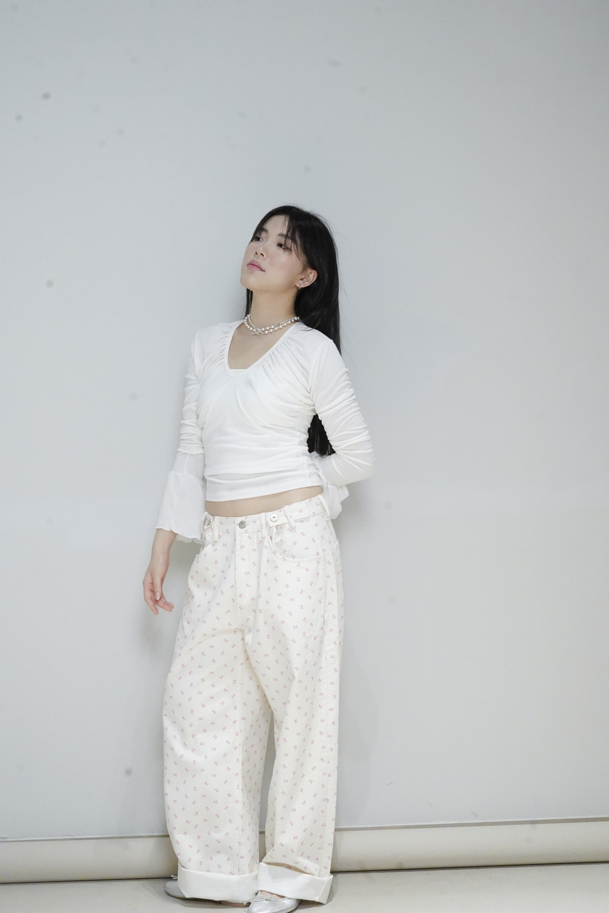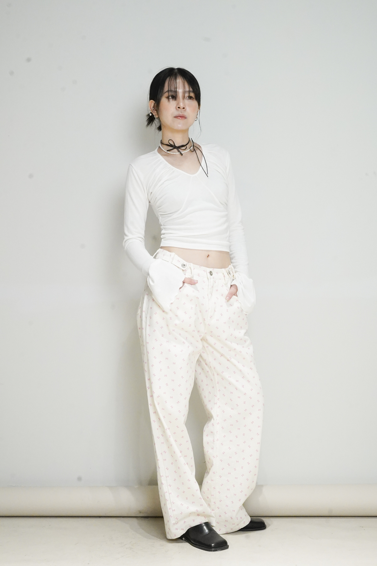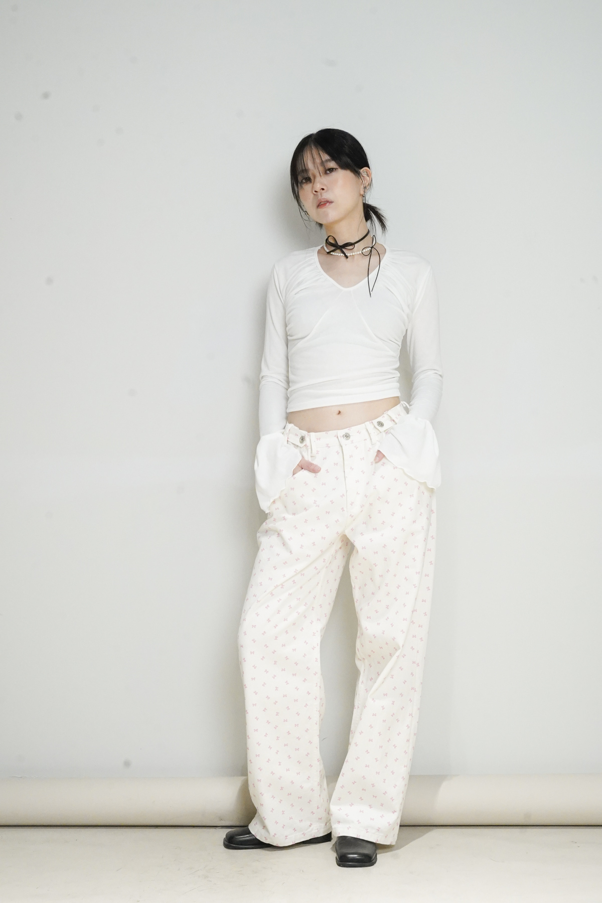 flare sleeves long top (WHITE/BLACK)