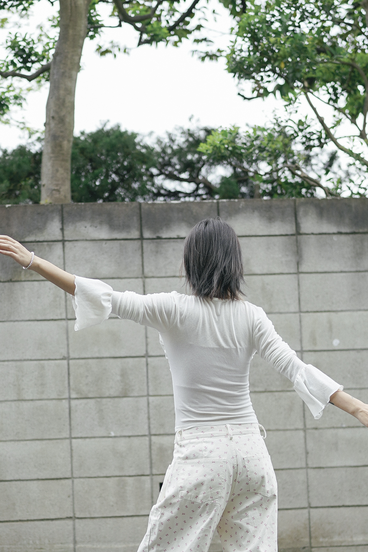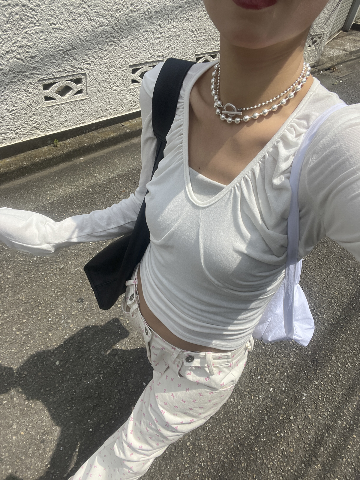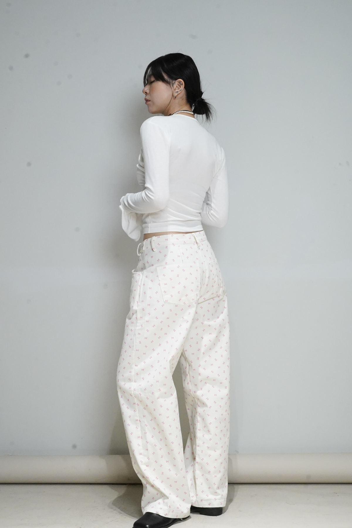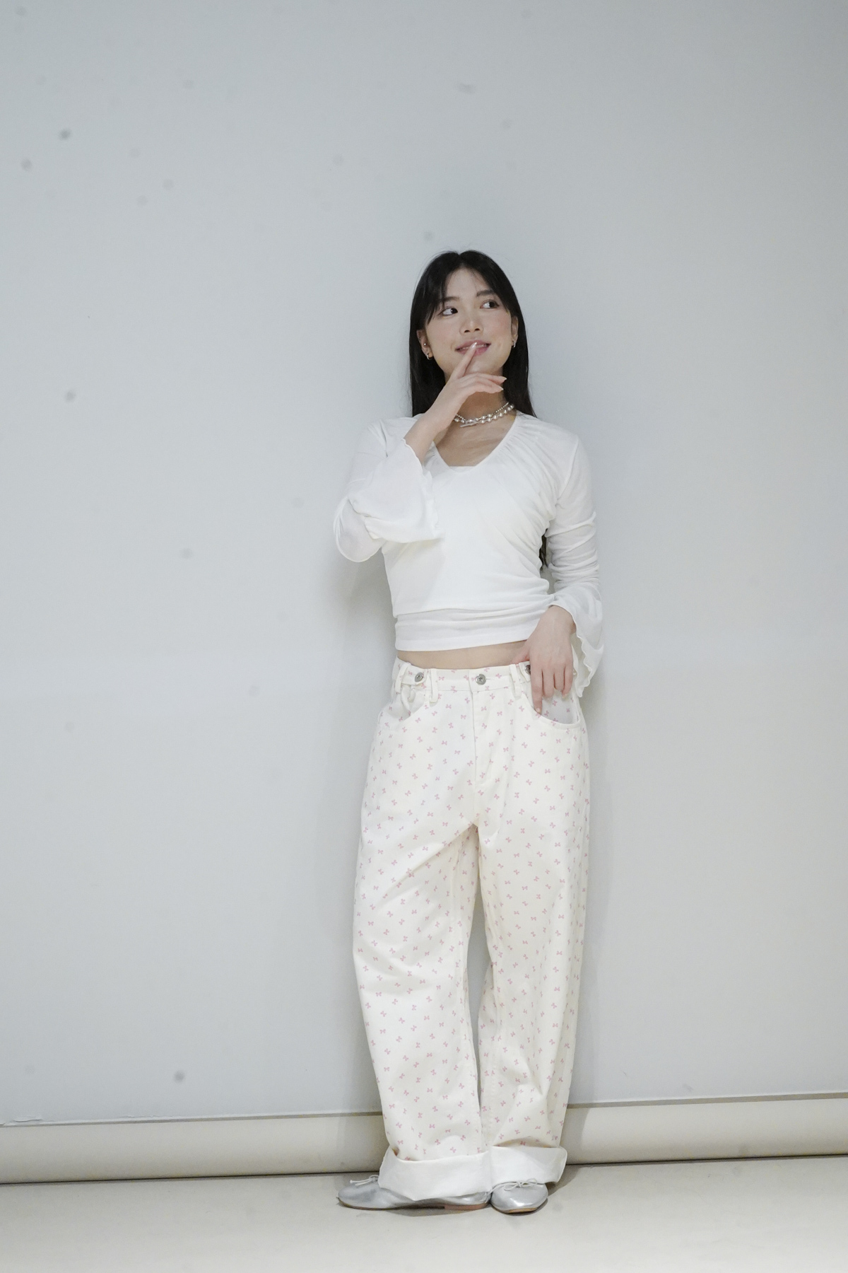 flare sleeves long top (WHITE/BLACK)