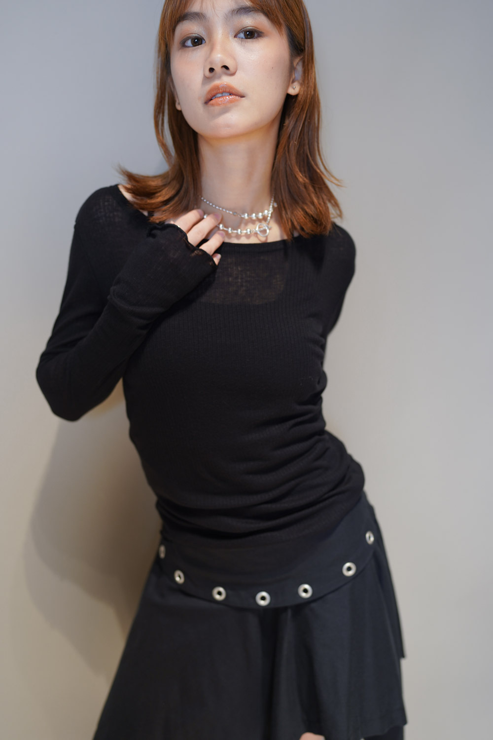 Must buy~ wavy edge big U ribbed long sleeve Top (WHITE/GREY/BRWON/BLACK) - 30% wool