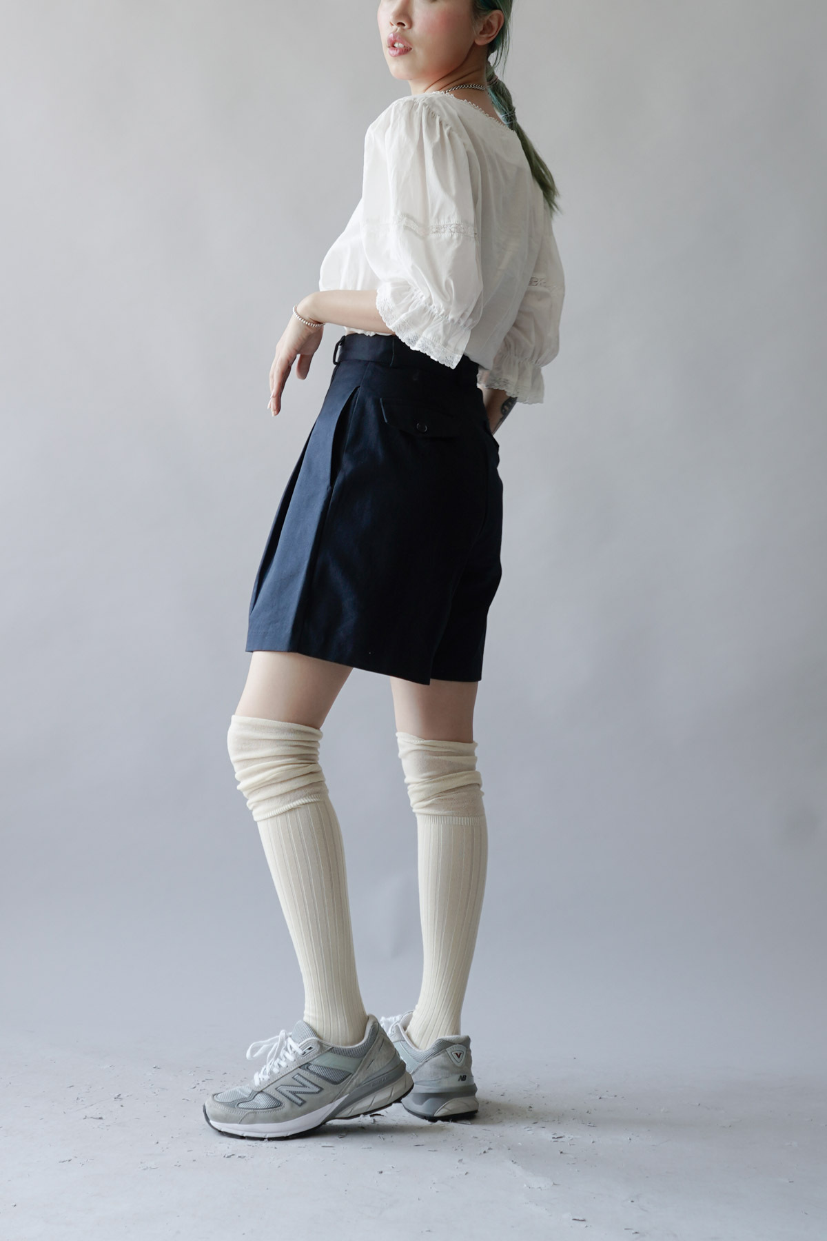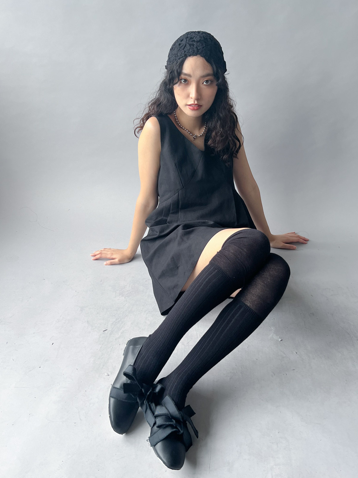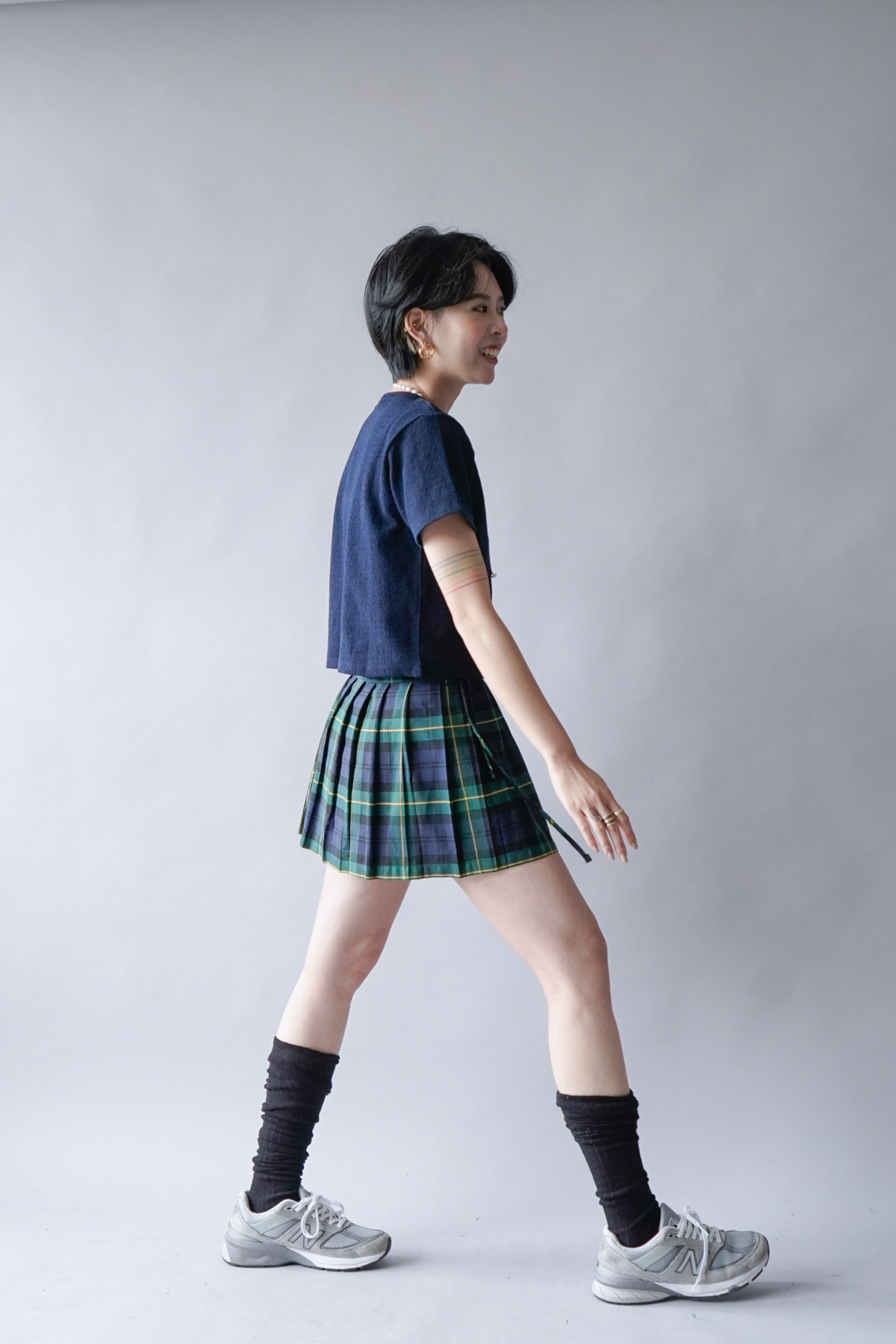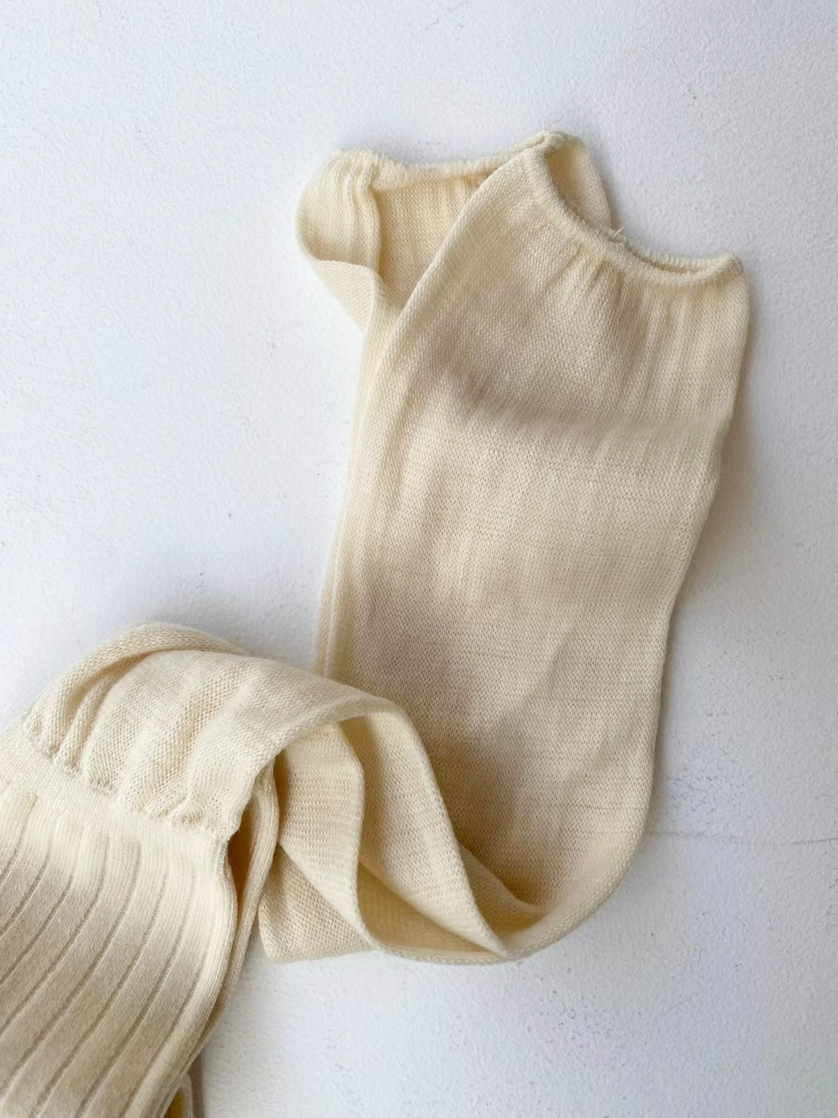 混合兩種布料 / 直坑紋修飾小腿 / 亦可拉低 作微泡泡襪穿着 /
