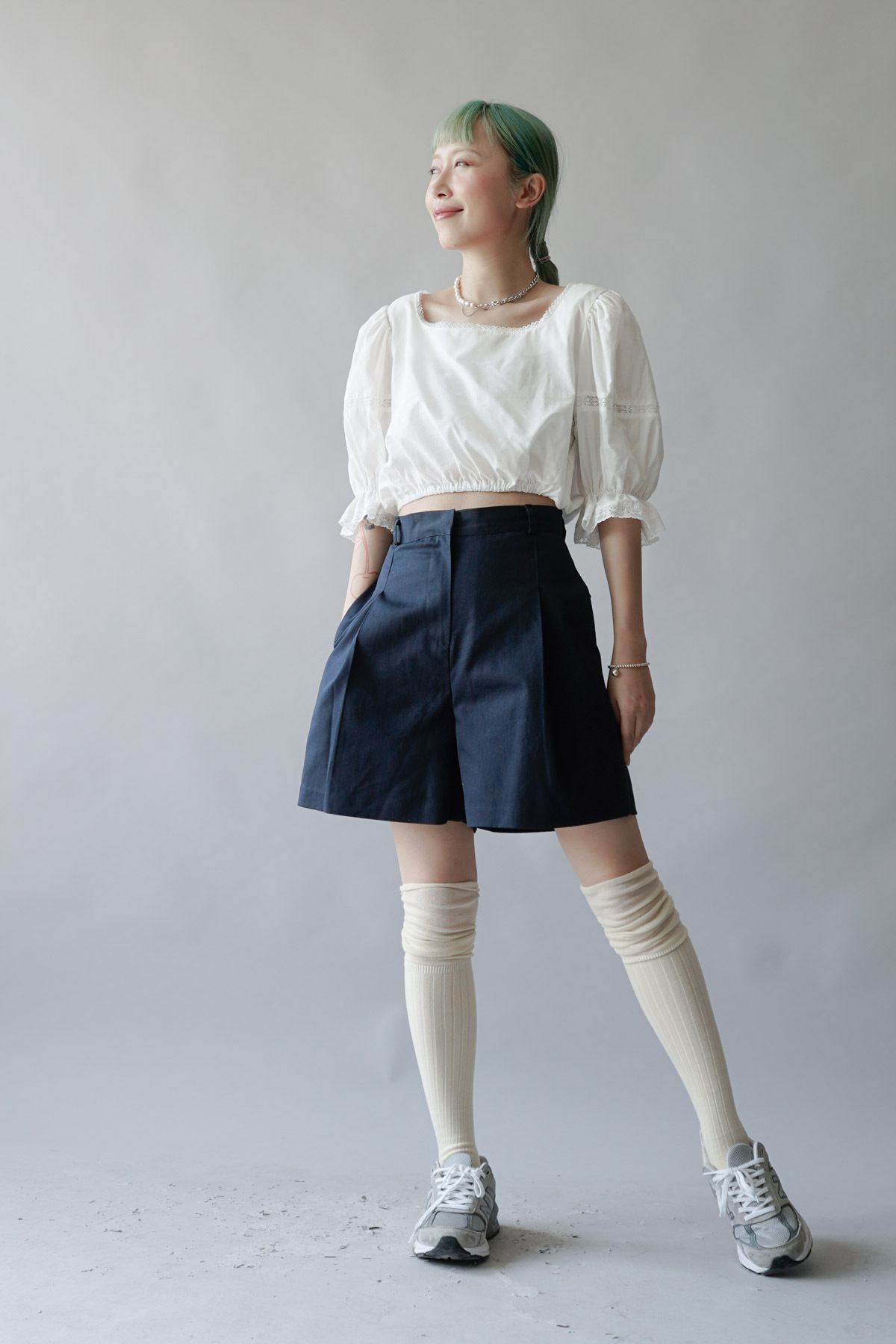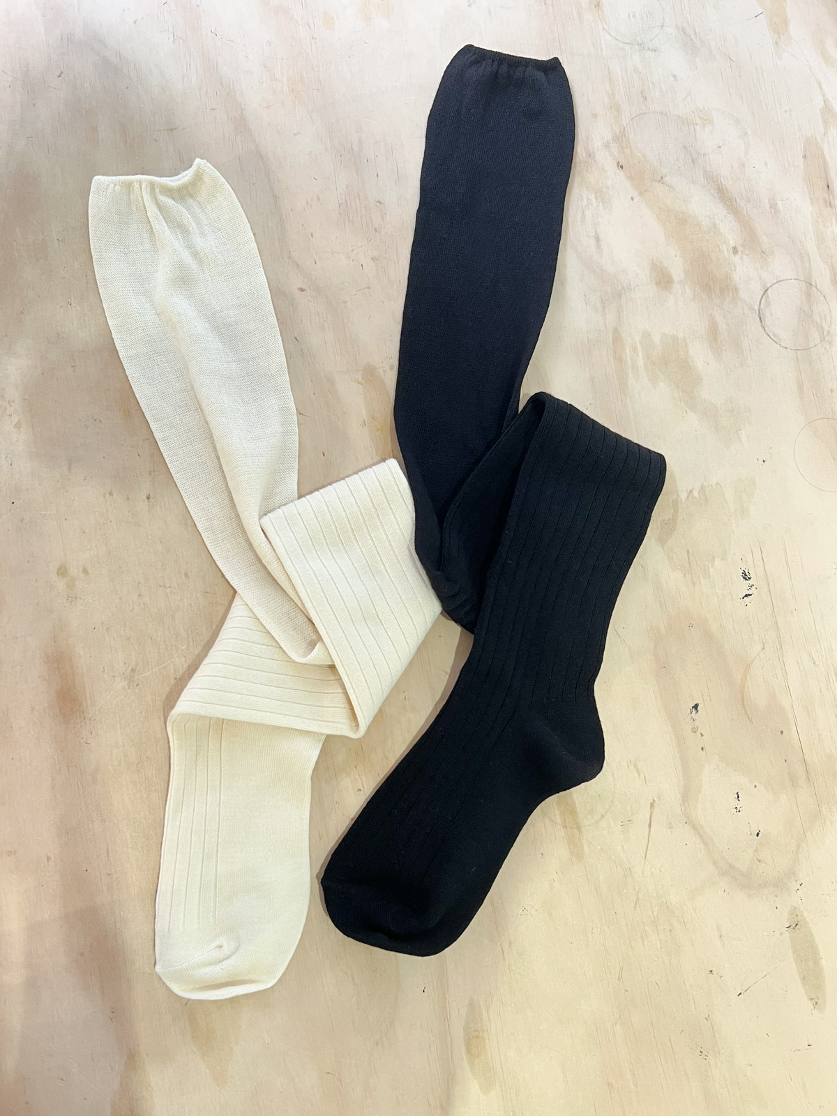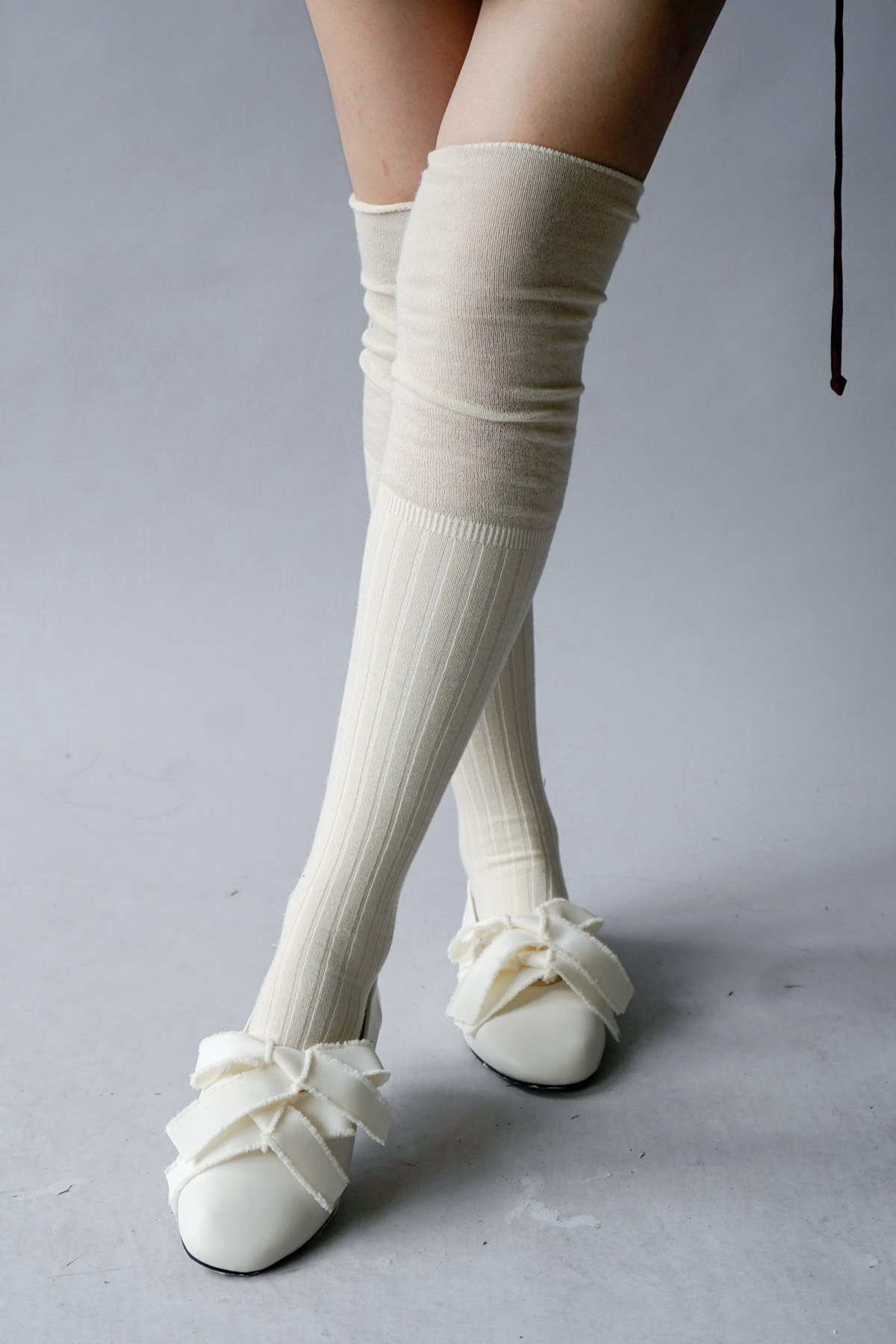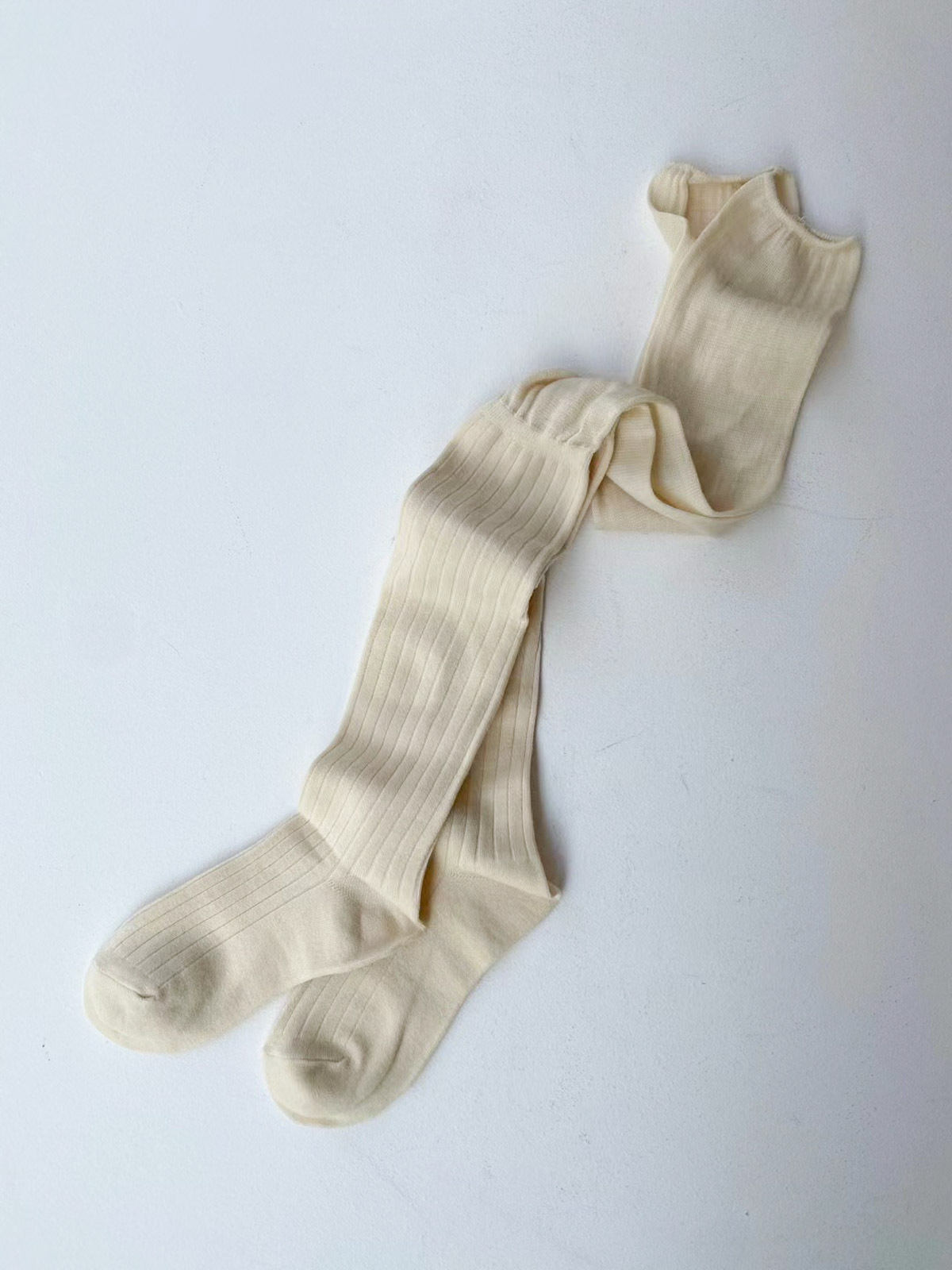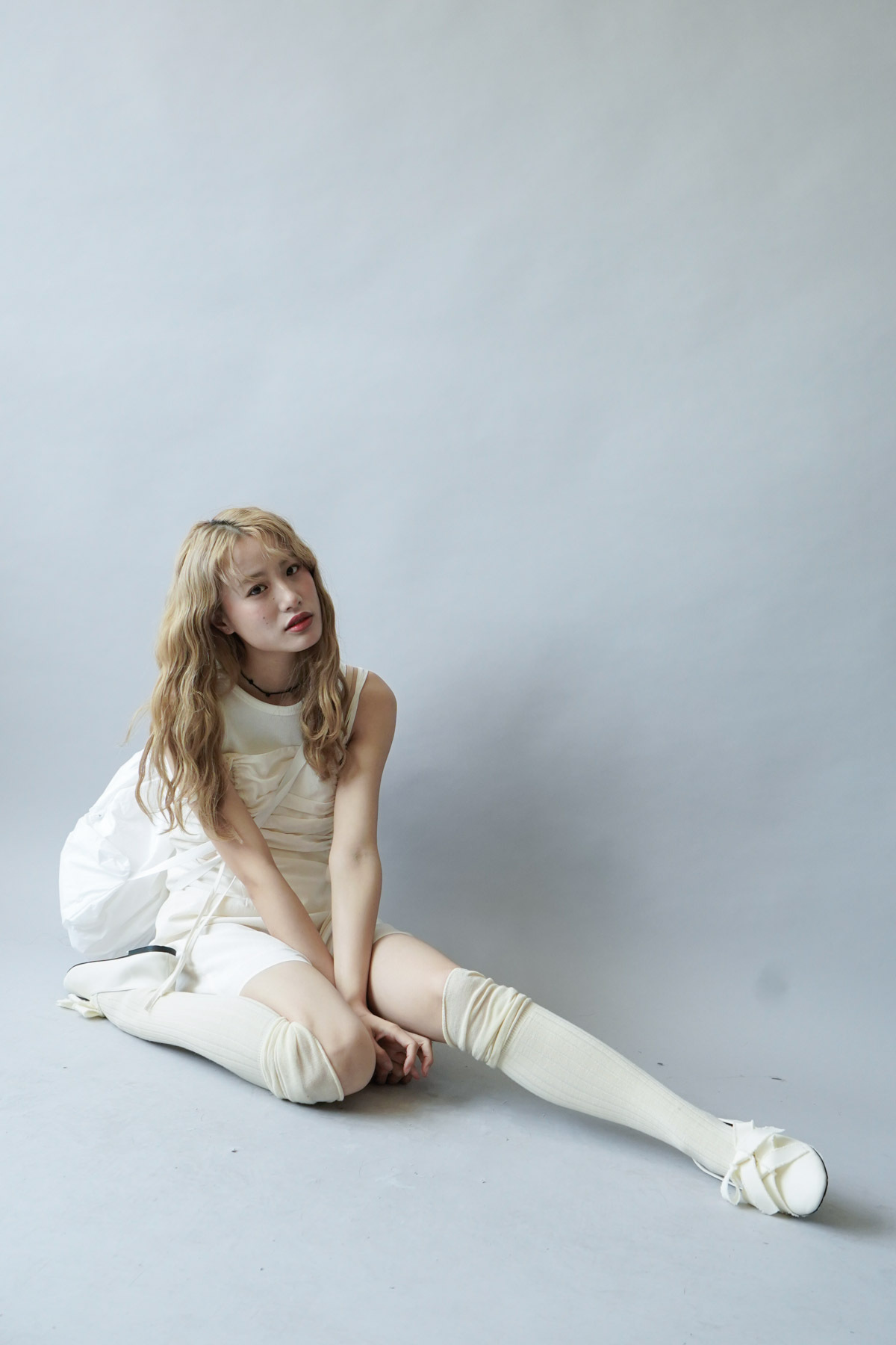 混合兩種布料 / 直坑紋修飾小腿 / 亦可拉低 作微泡泡襪穿着 /