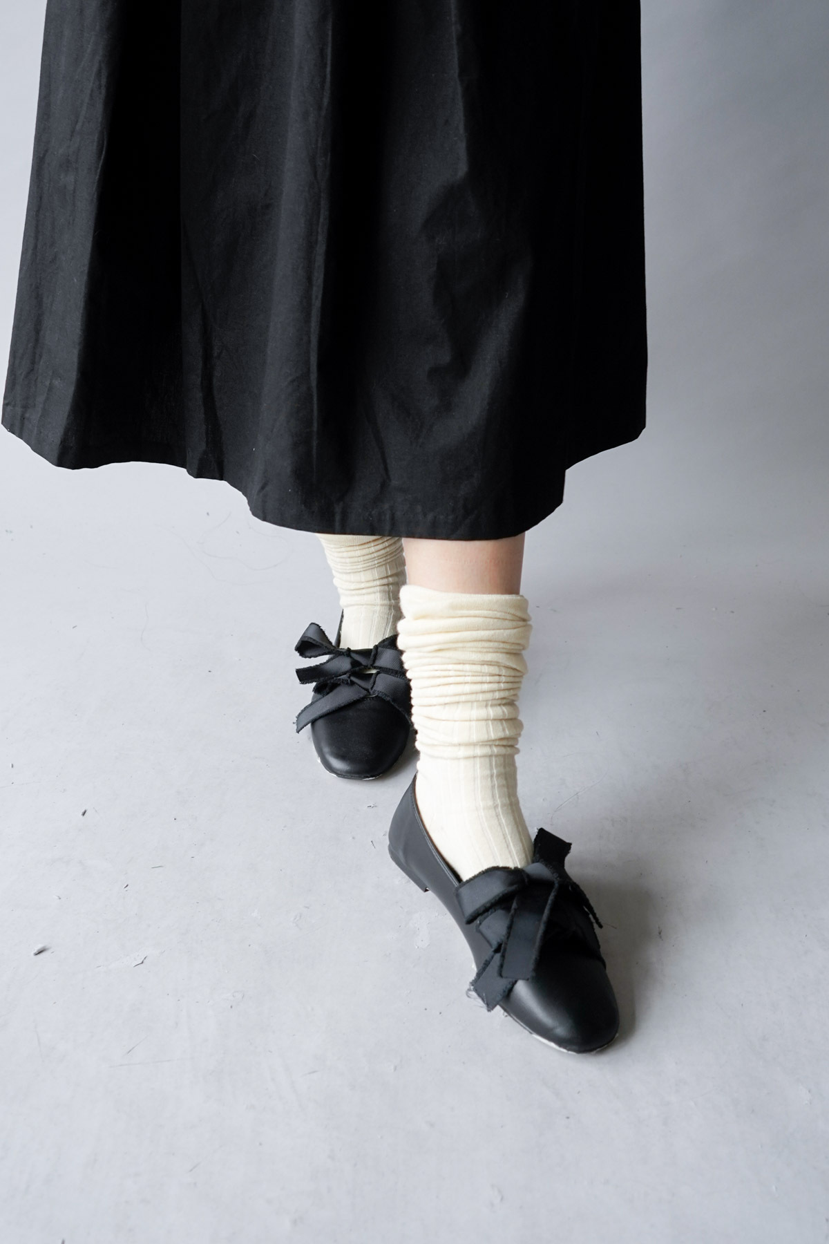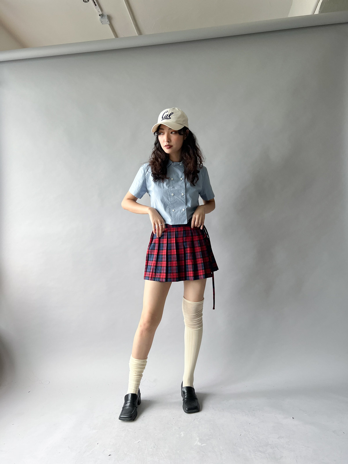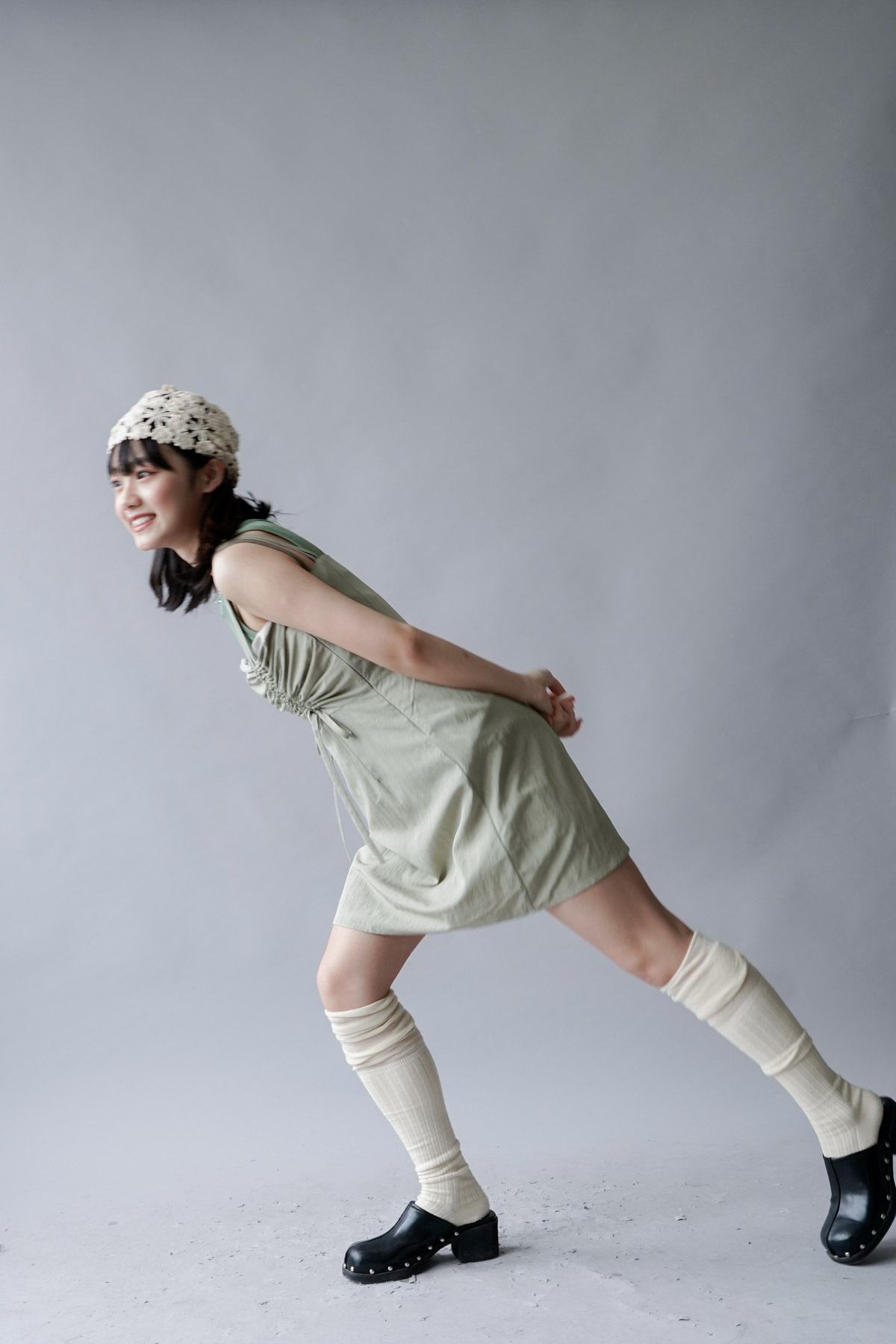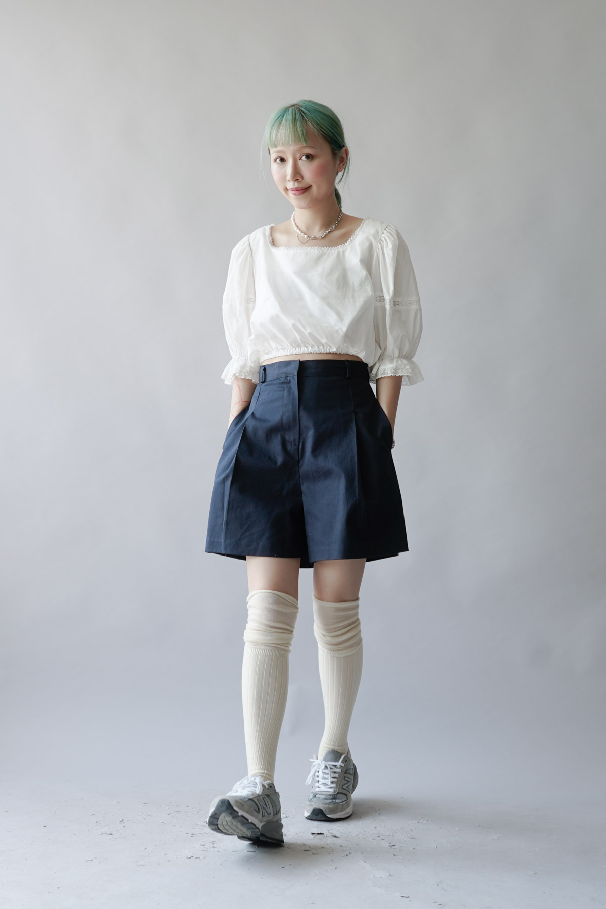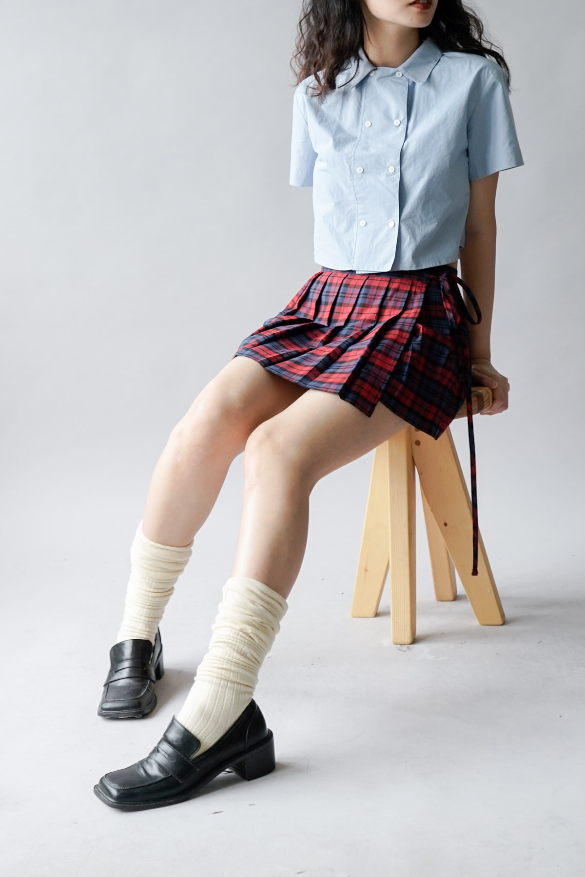 混合兩種布料 / 直坑紋修飾小腿 / 亦可拉低 作微泡泡襪穿着 /
