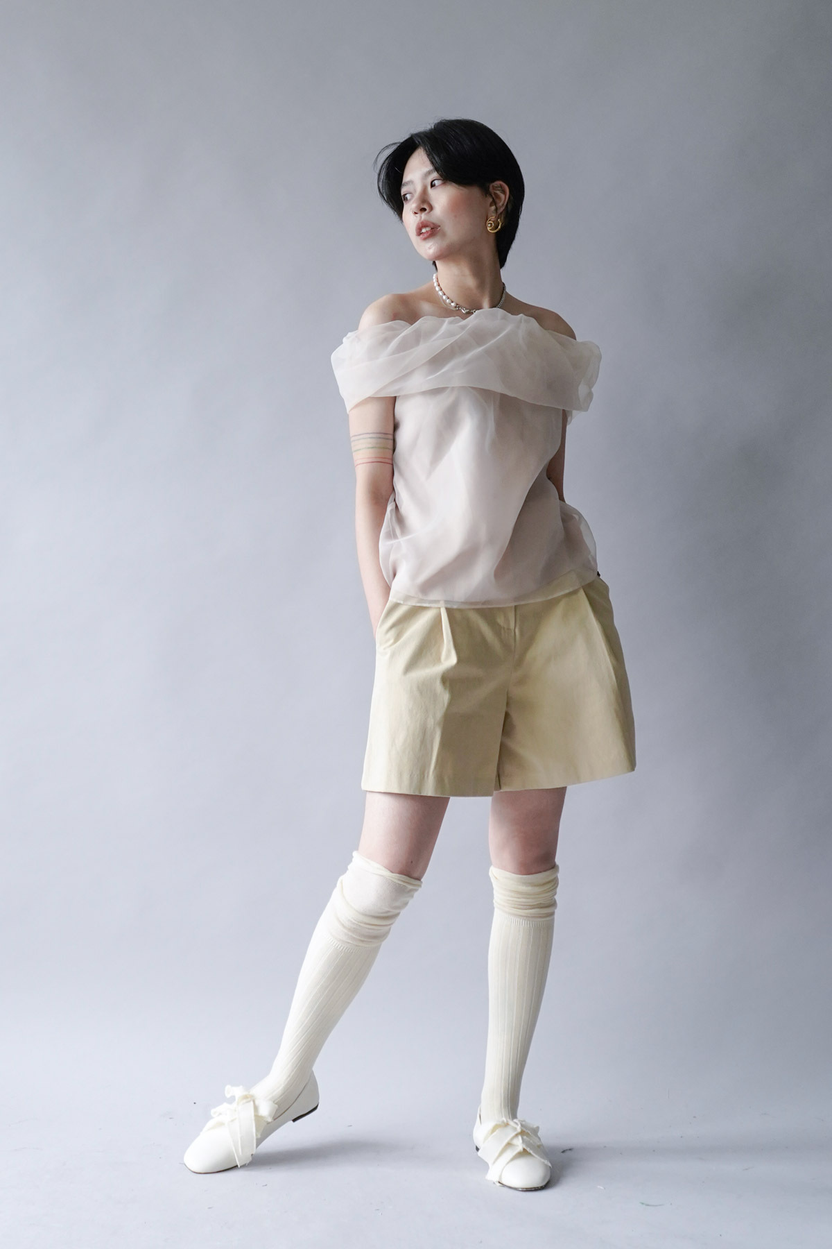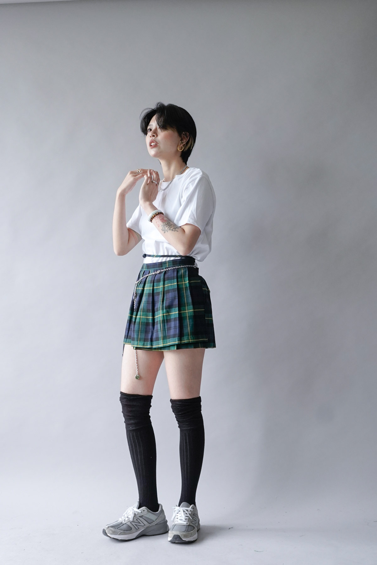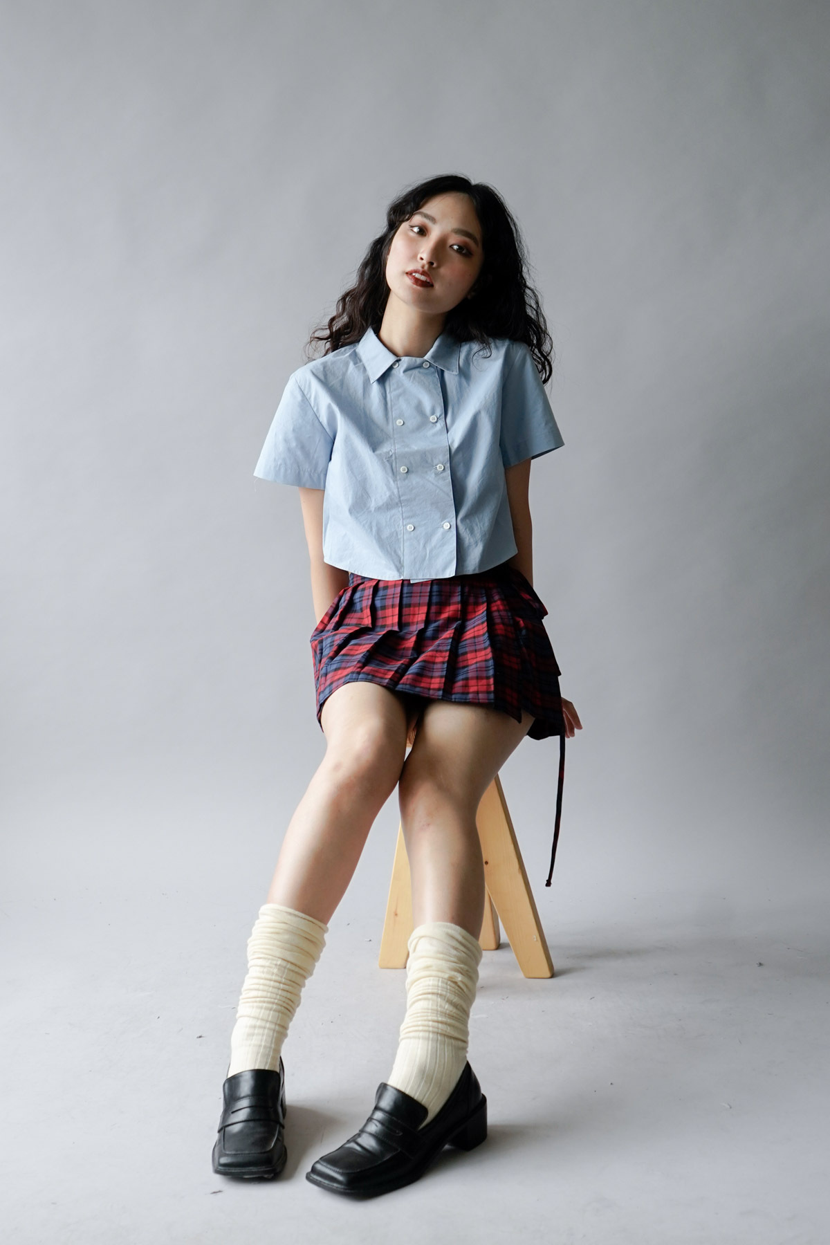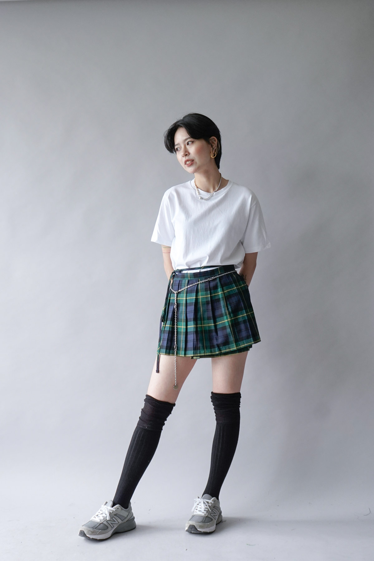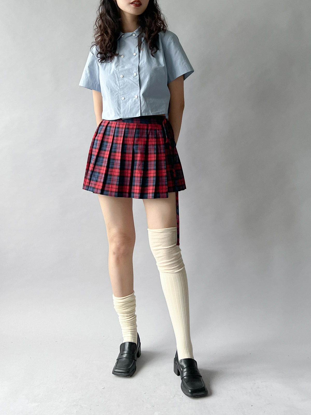 混合兩種布料 / 直坑紋修飾小腿 / 亦可拉低 作微泡泡襪穿着 /