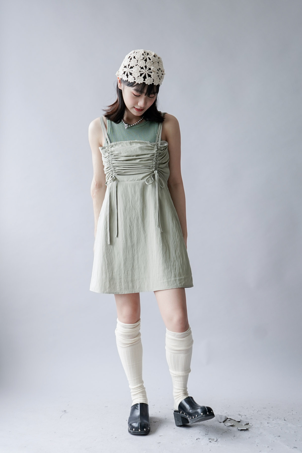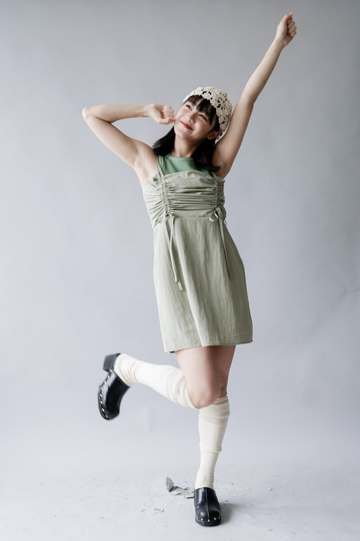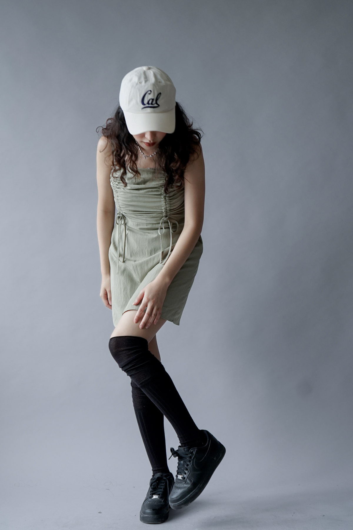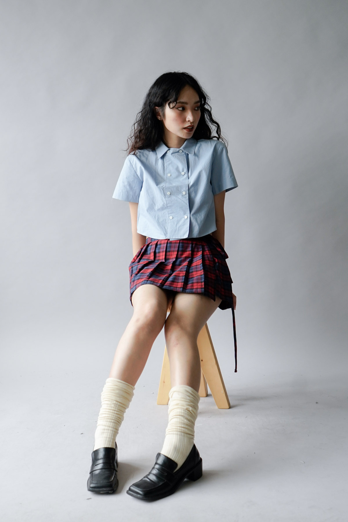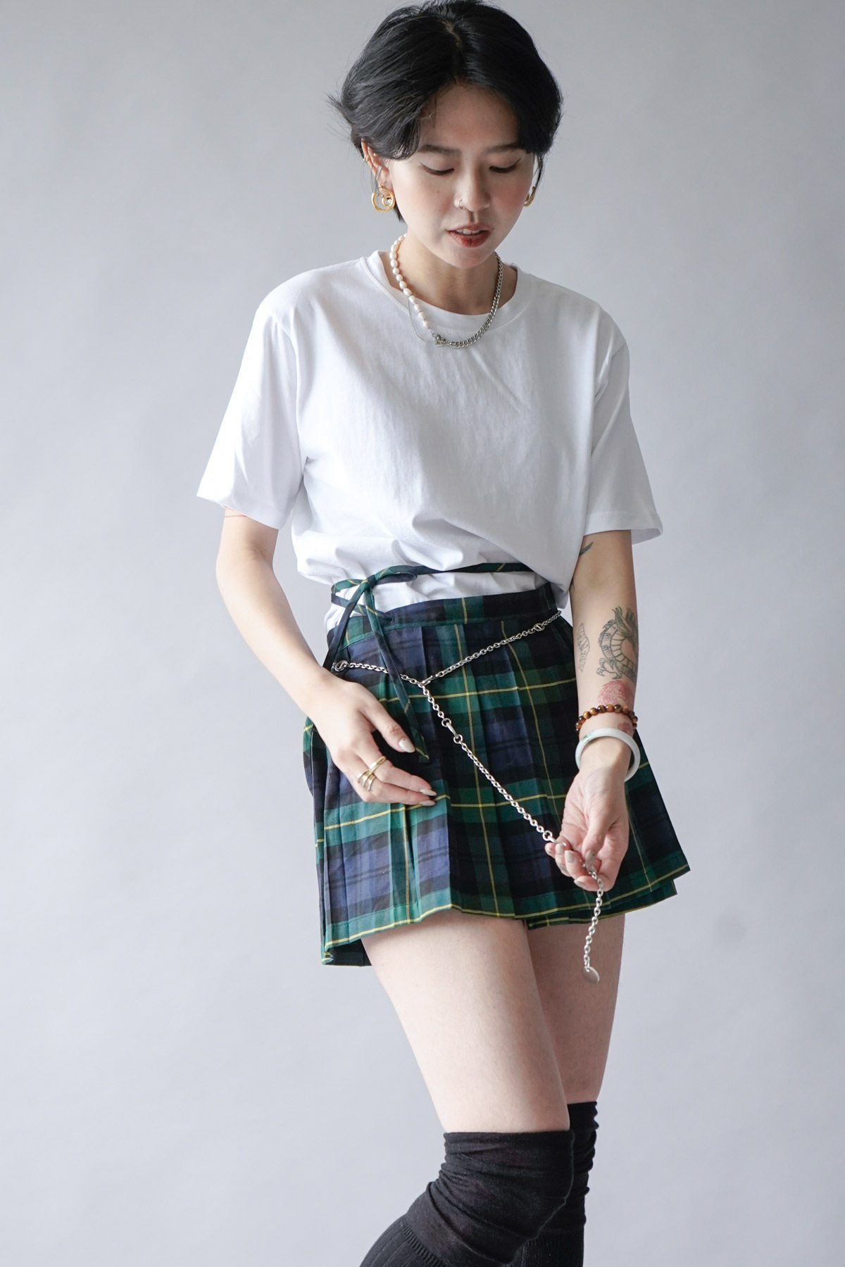 混合兩種布料 / 直坑紋修飾小腿 / 亦可拉低 作微泡泡襪穿着 /