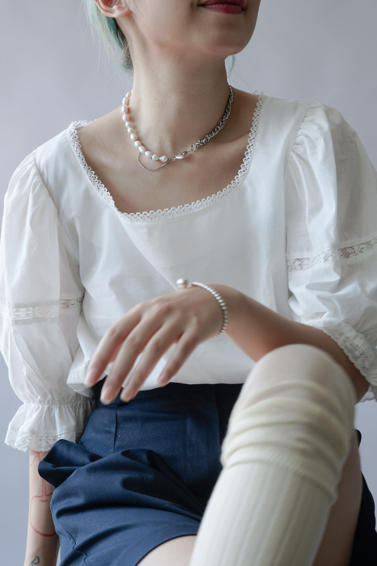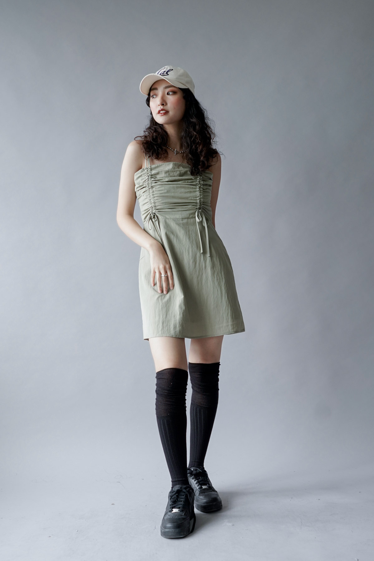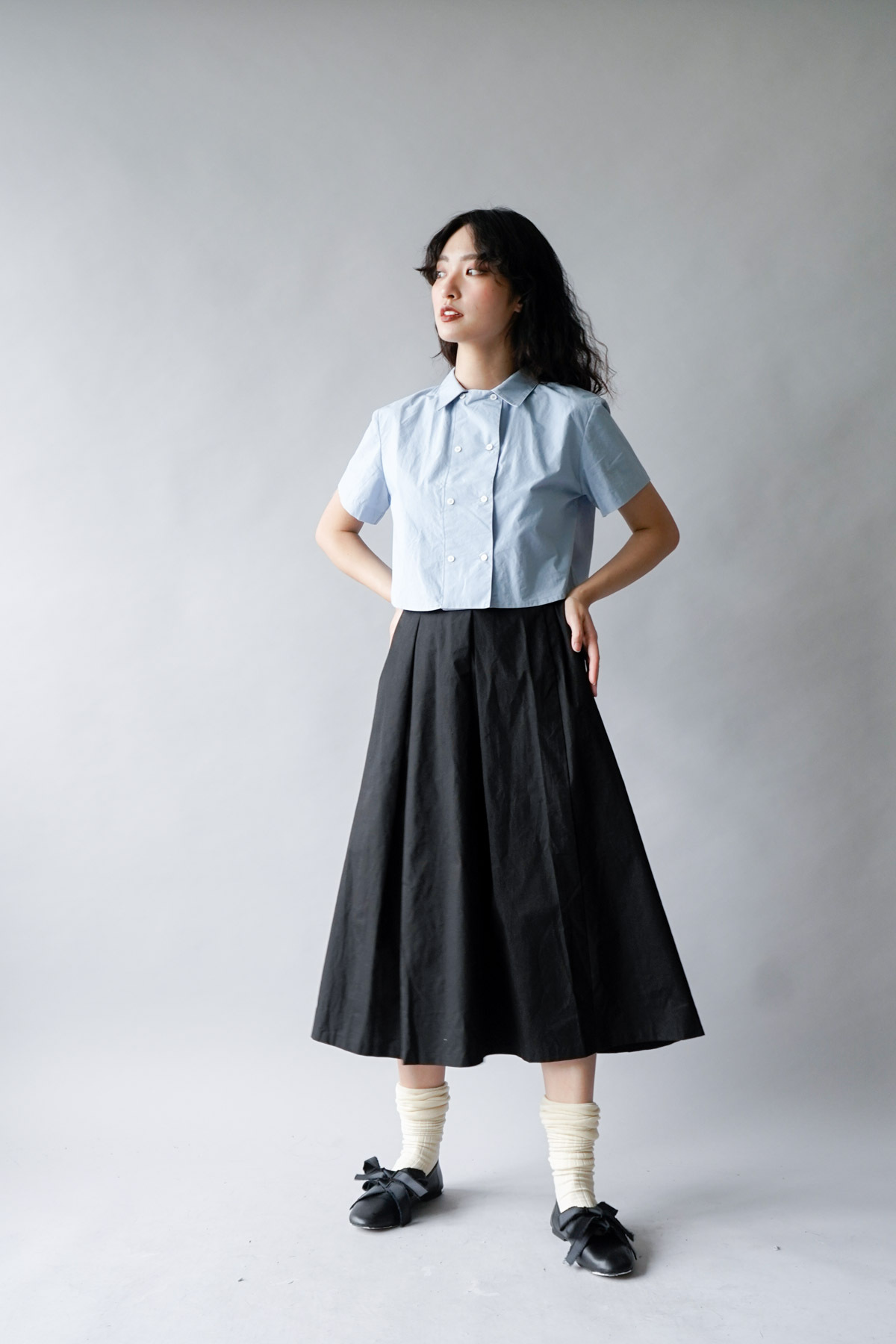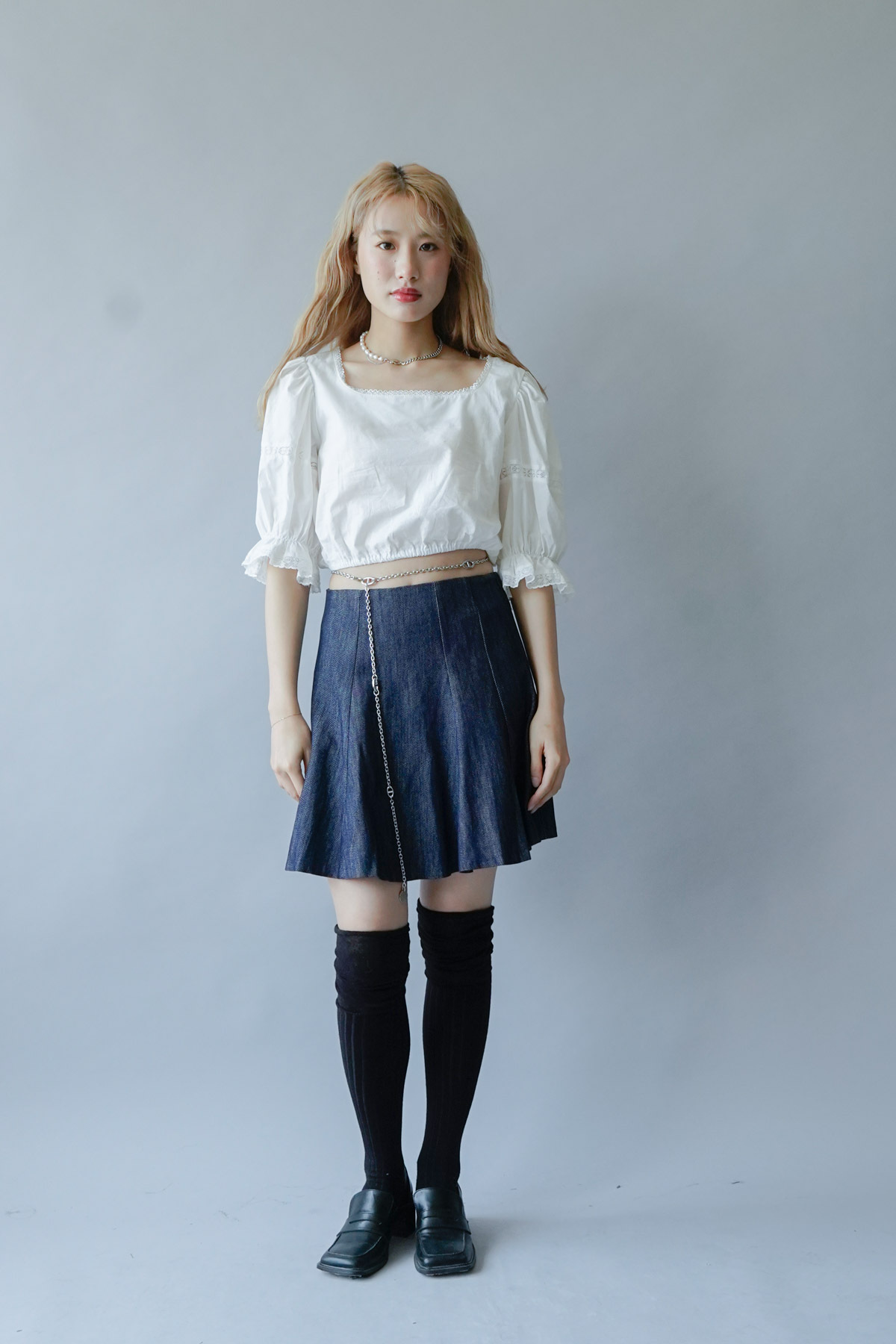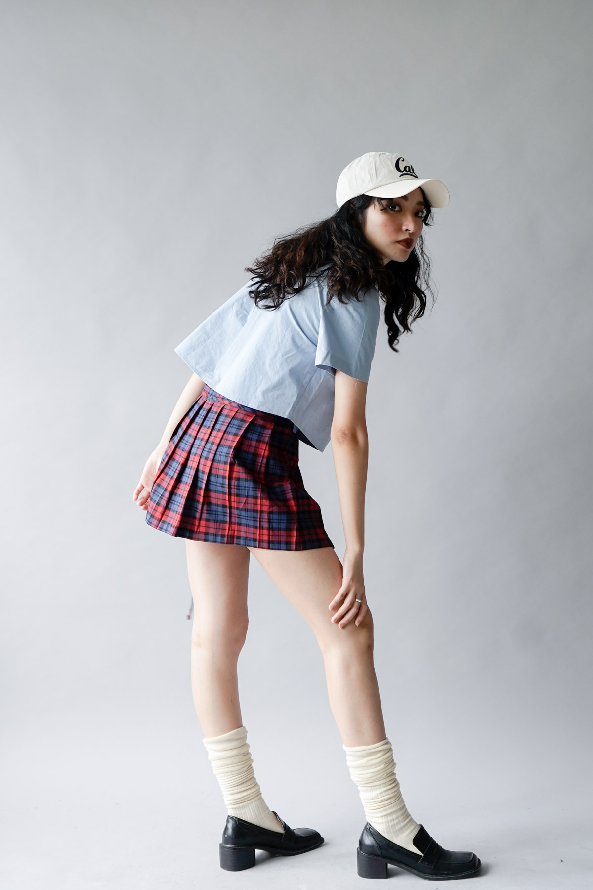 混合兩種布料 / 直坑紋修飾小腿 / 亦可拉低 作微泡泡襪穿着 /