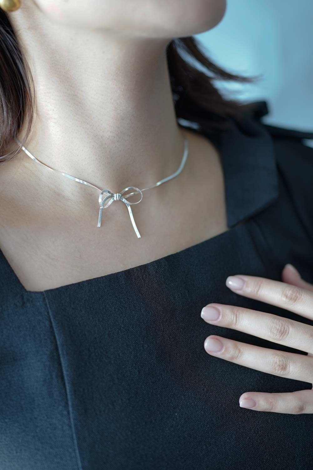 俐落蛇鏈造型 / 搭配蝴蝶結 / 氣質與可愛并存 / 925 純銀