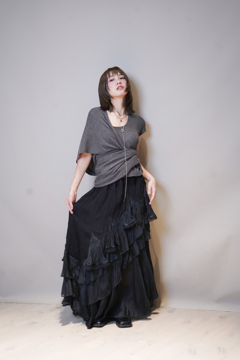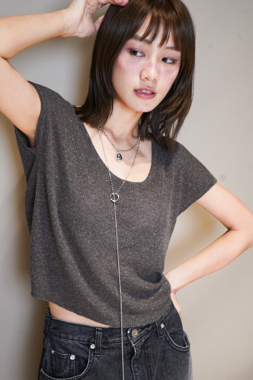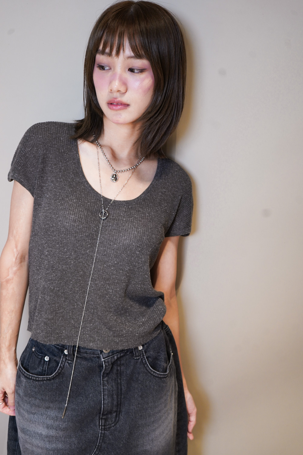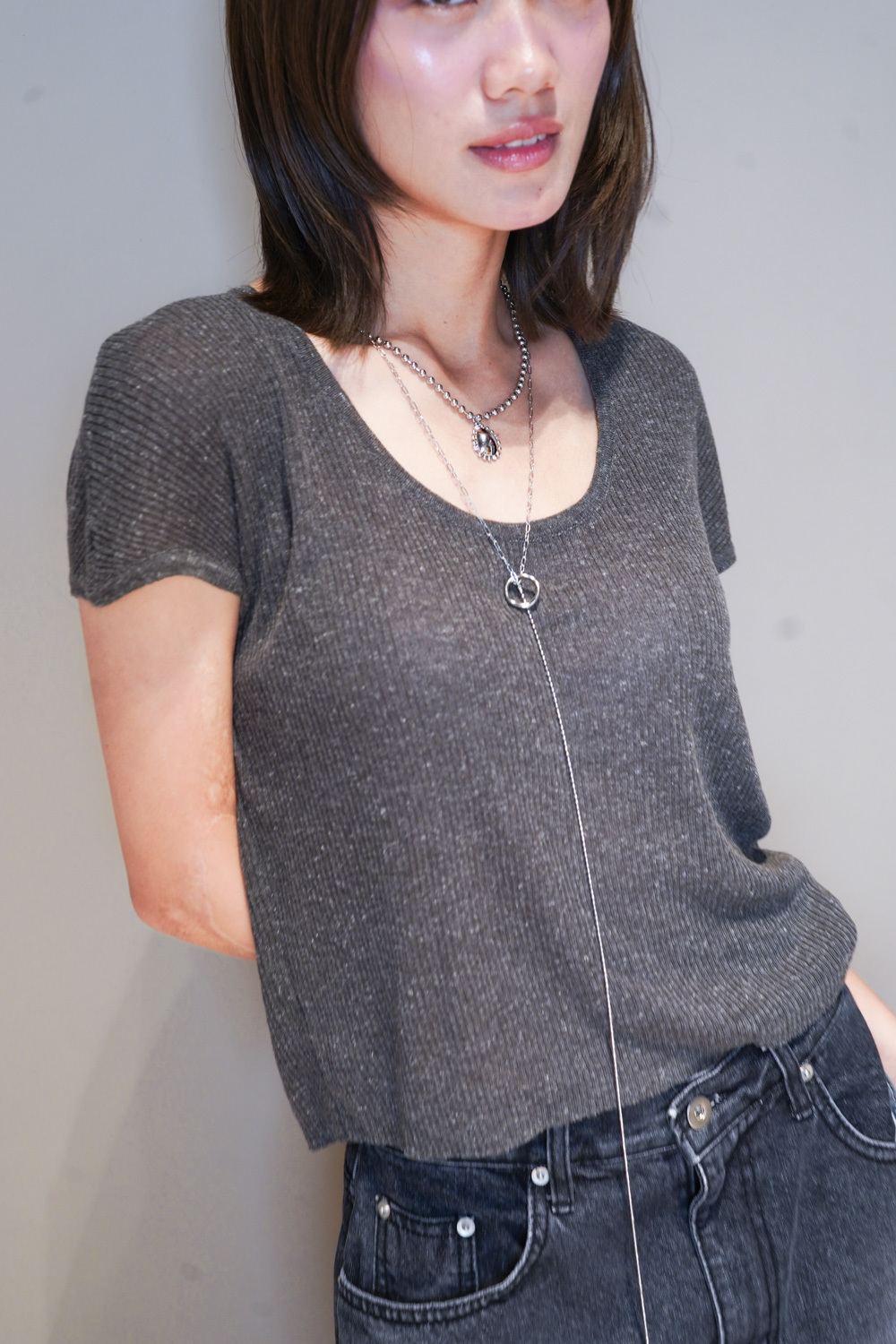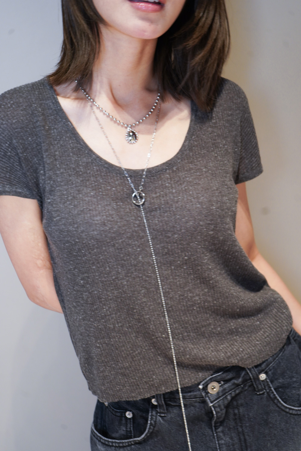 Necklace: long with hole and silver gem set