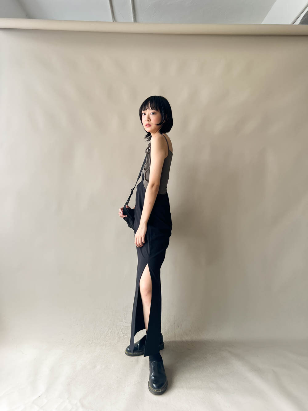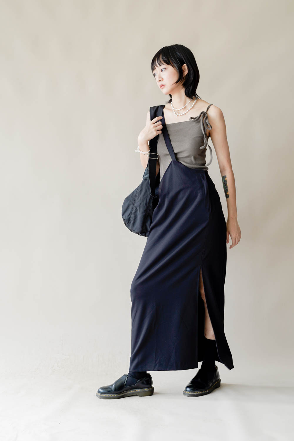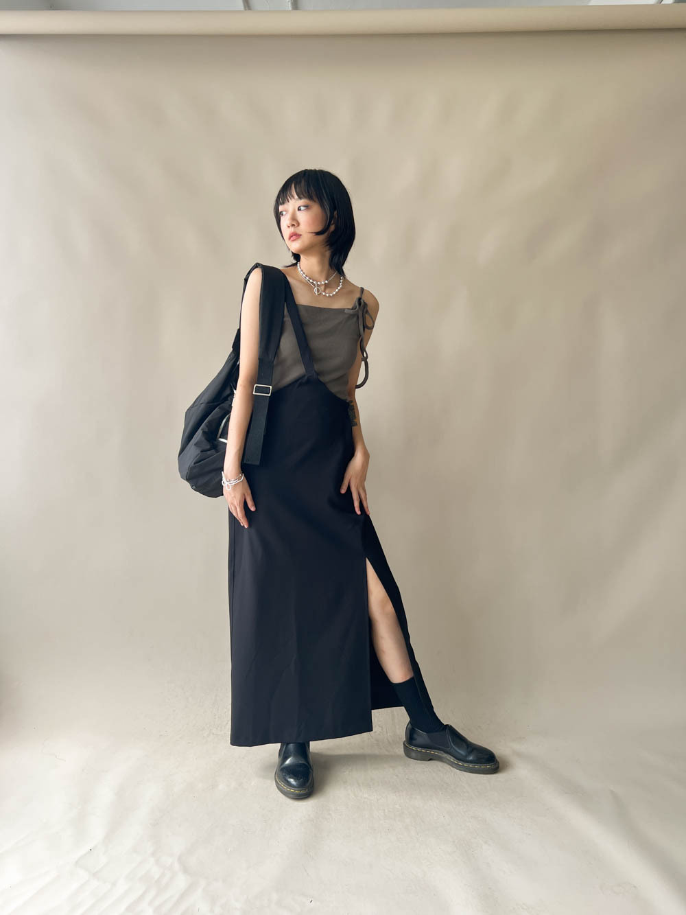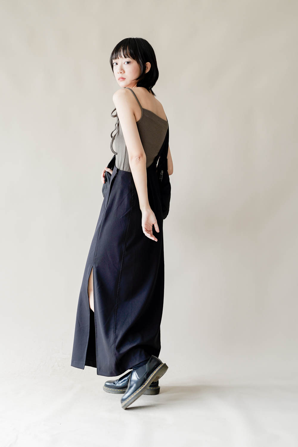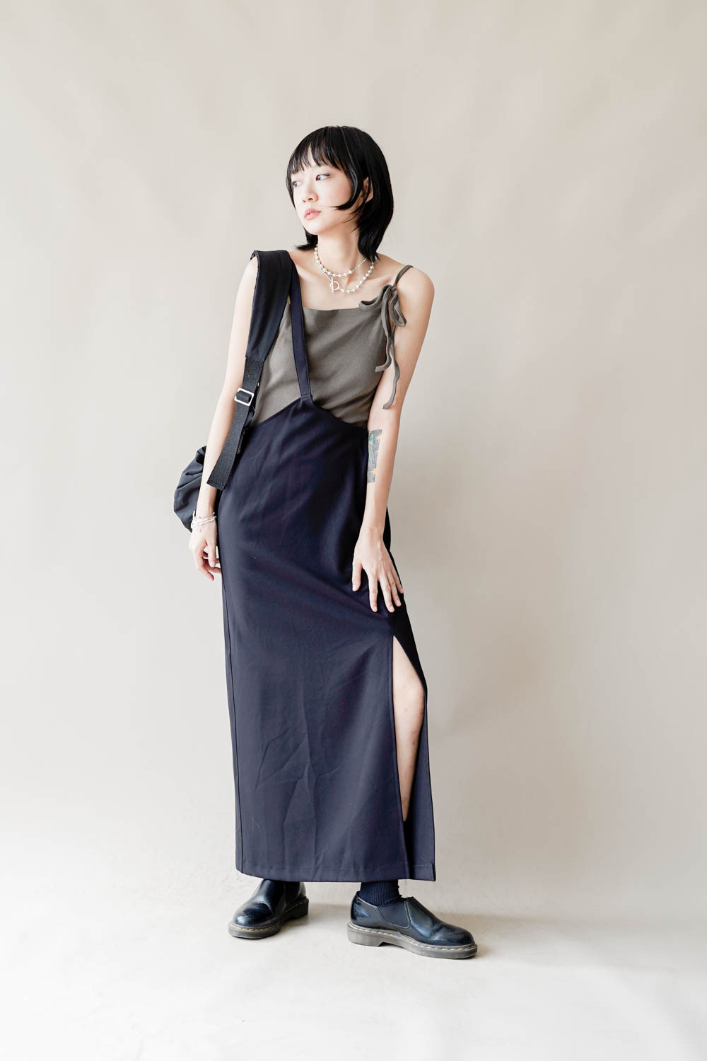 亦可放下吊帶變成半截裙 / 側開叉性感有型/ 可搭配裇衫打造個性都市造型 /