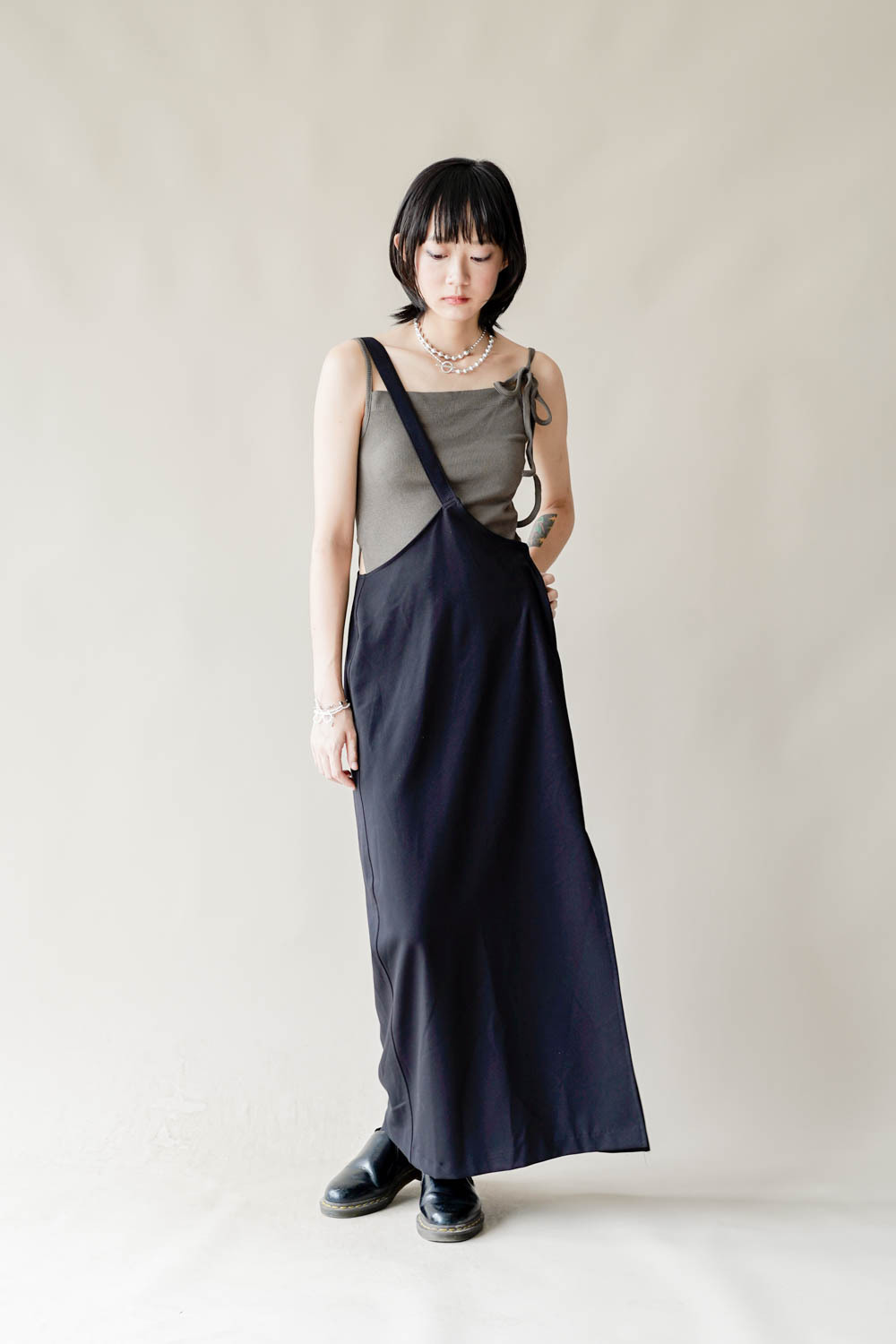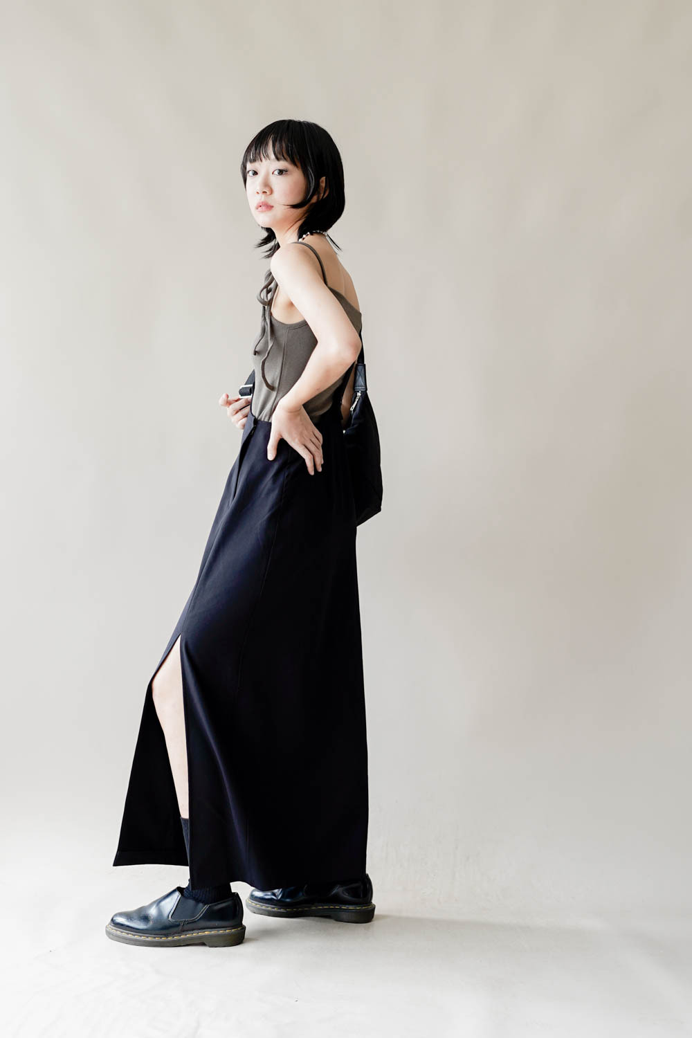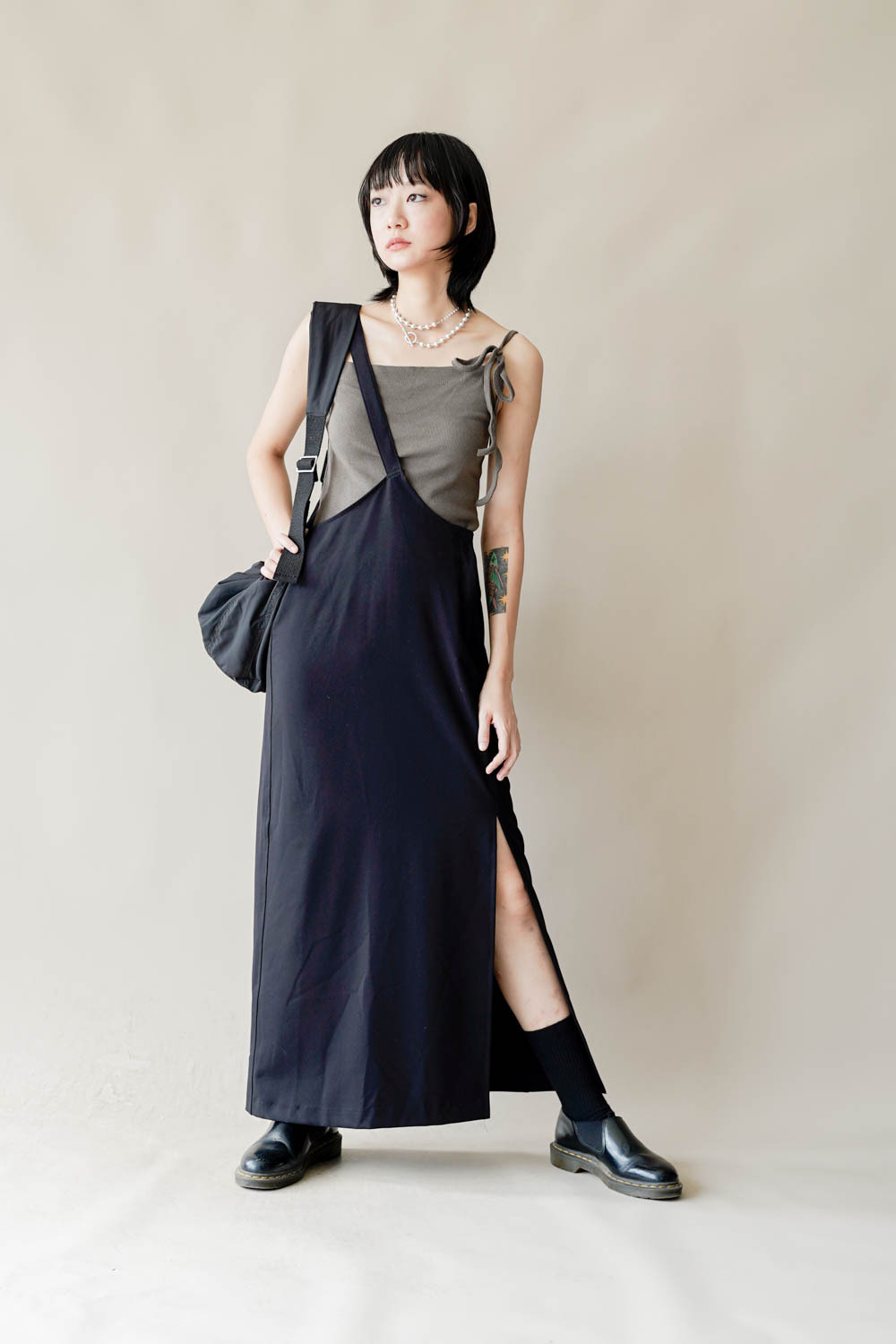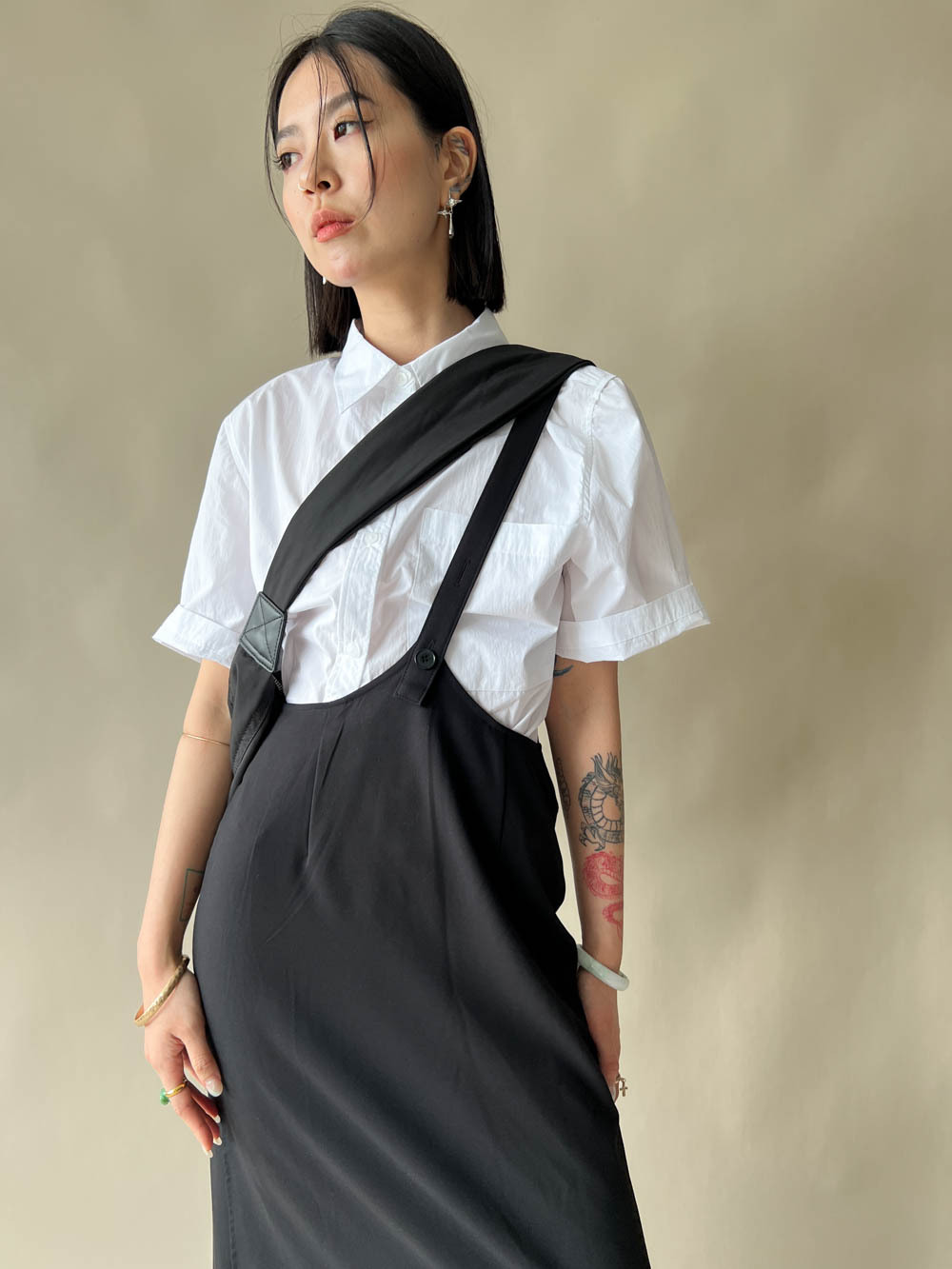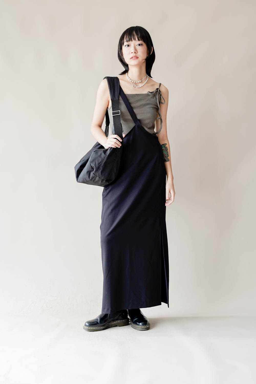 亦可放下吊帶變成半截裙 / 側開叉性感有型/ 可搭配裇衫打造個性都市造型 /