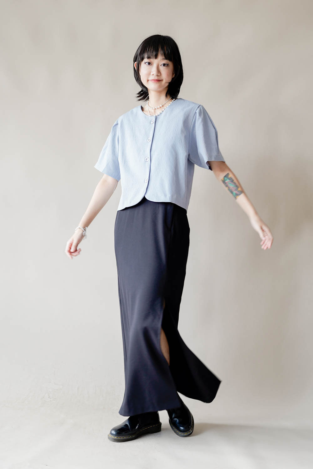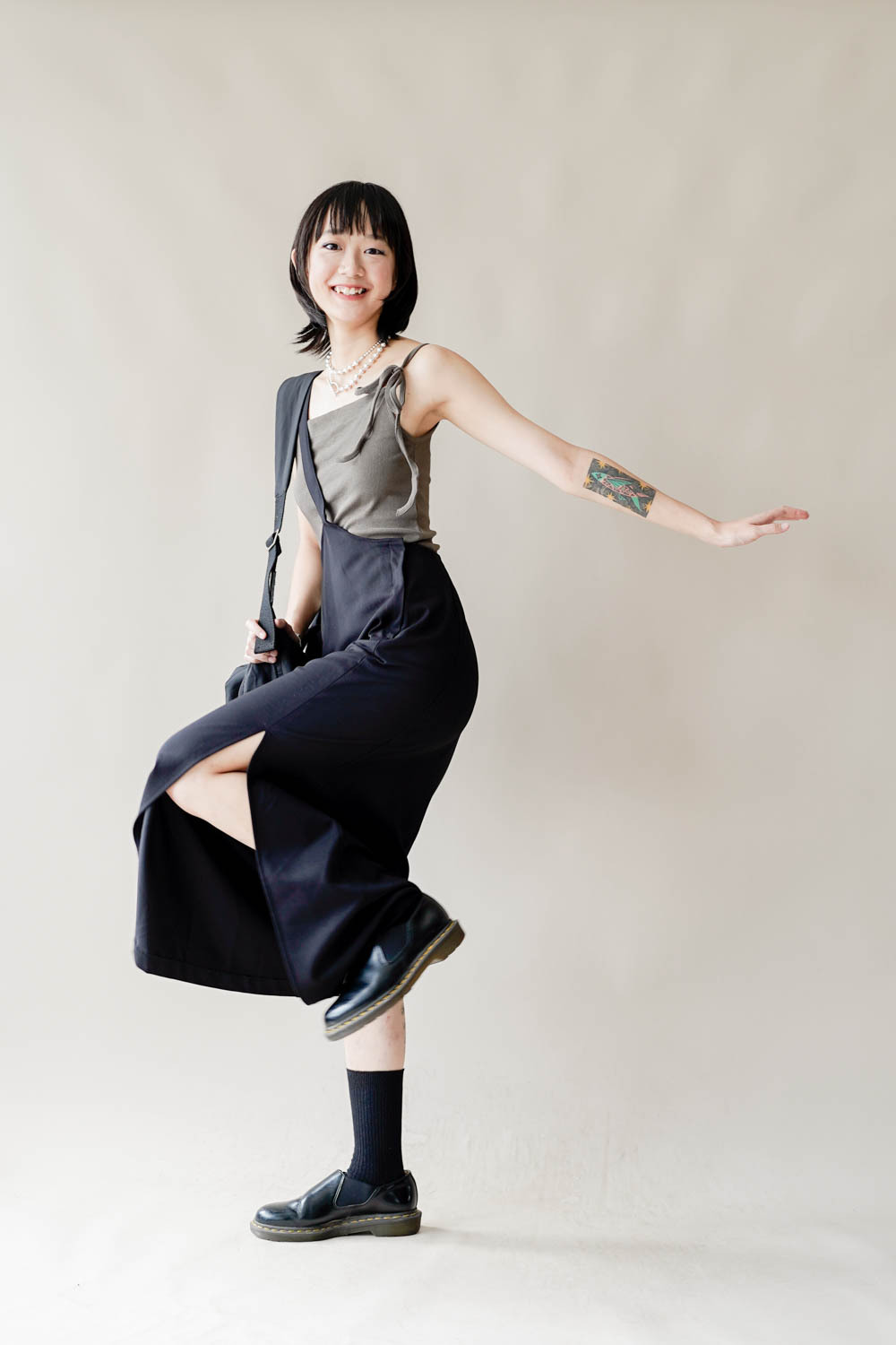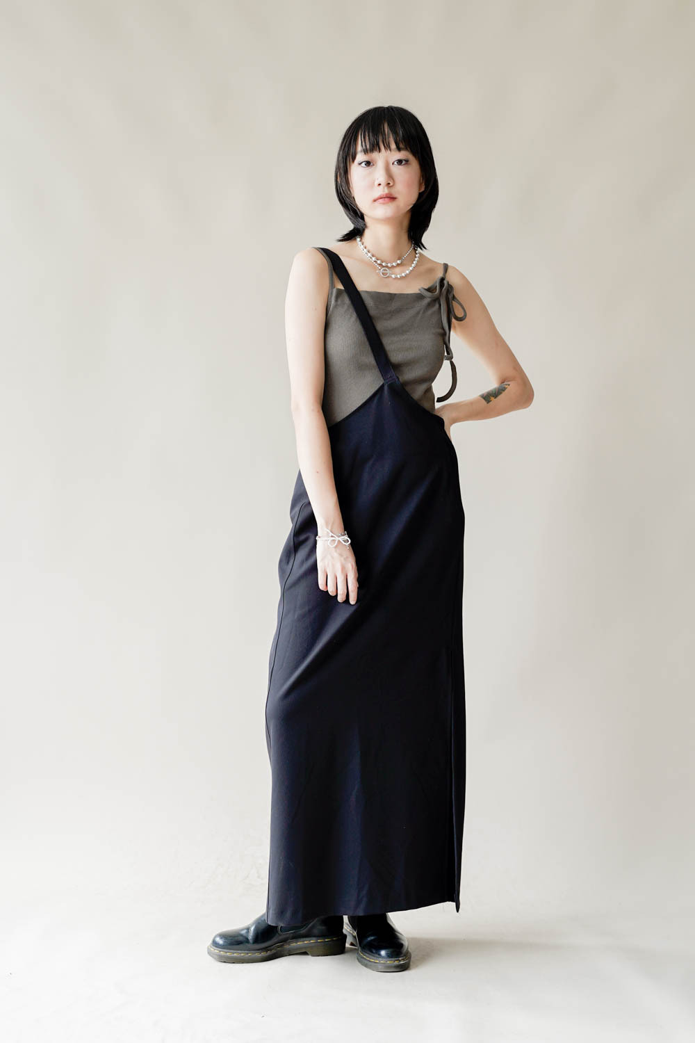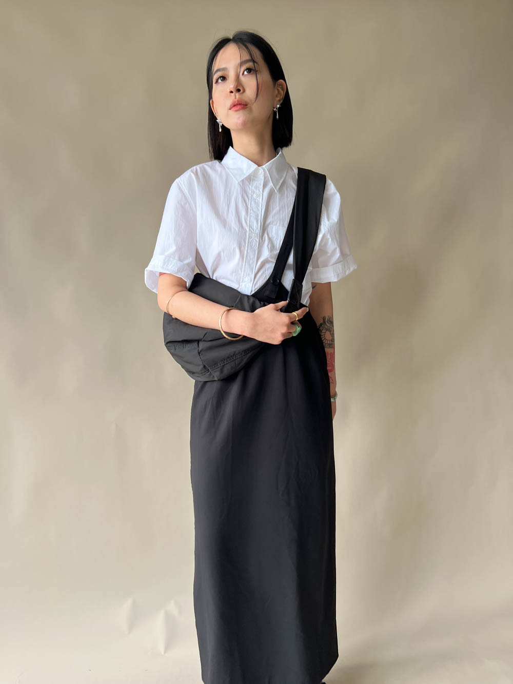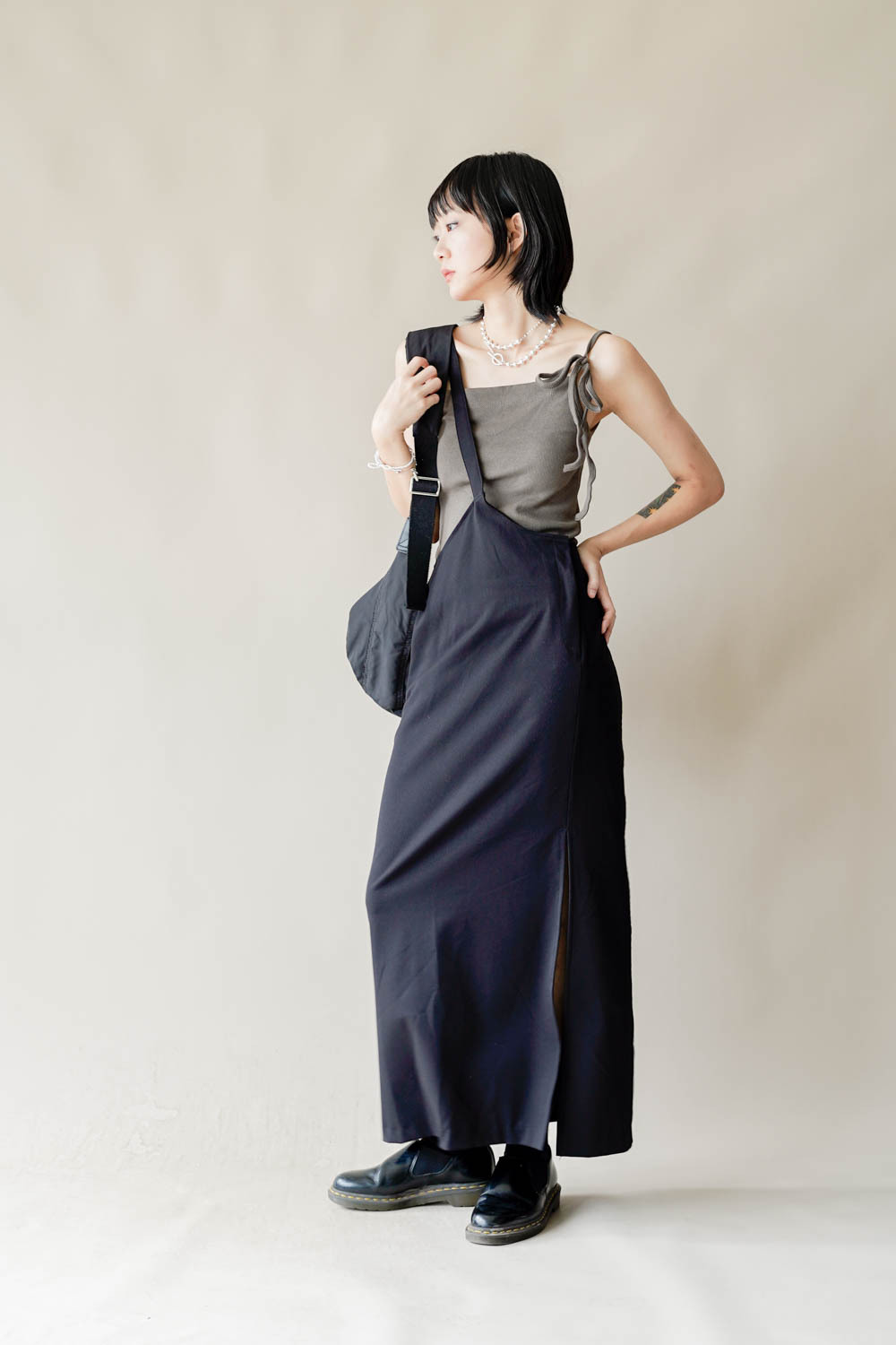 亦可放下吊帶變成半截裙 / 側開叉性感有型/ 可搭配裇衫打造個性都市造型 /