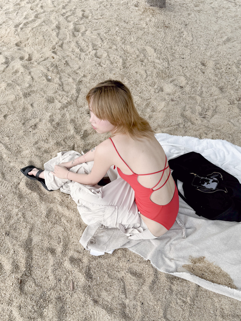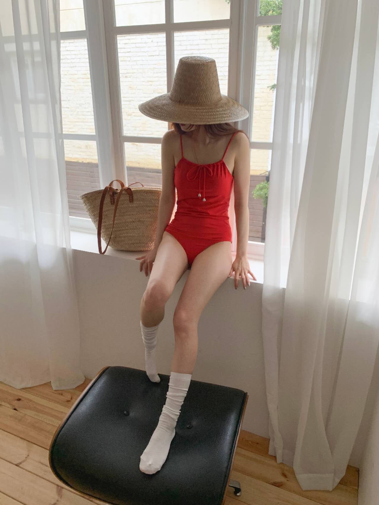 open back cherry swimsuit ( WHITE/ RED/ BLACK)
