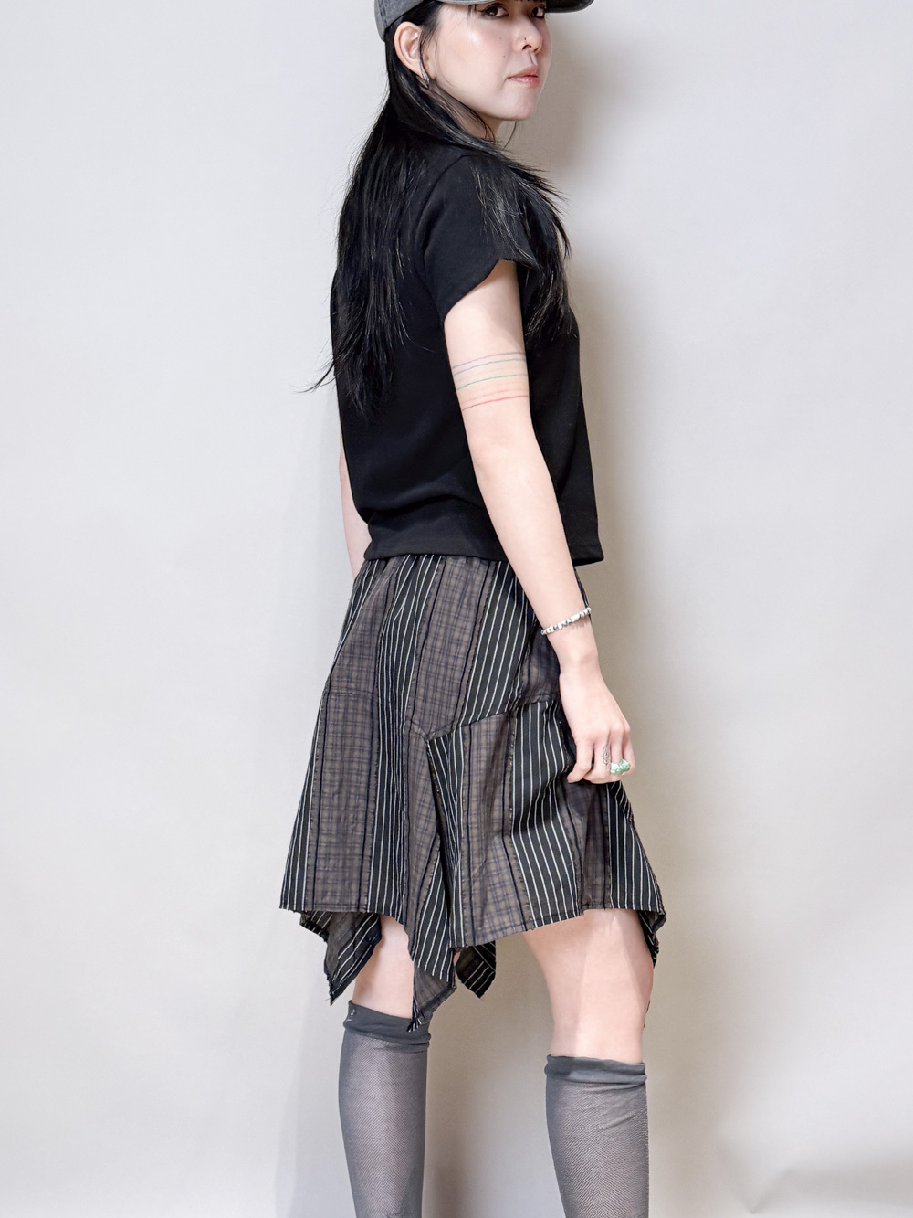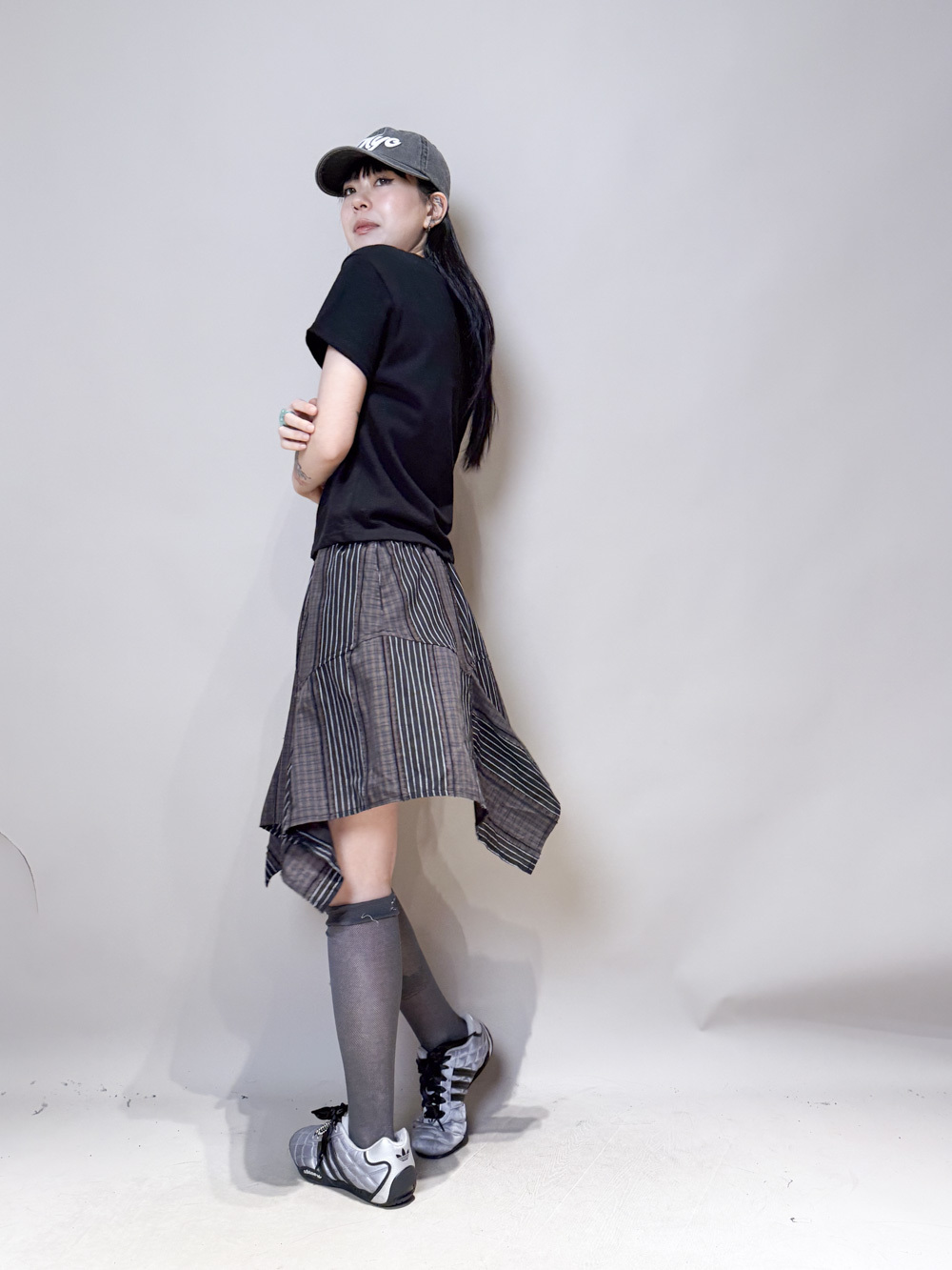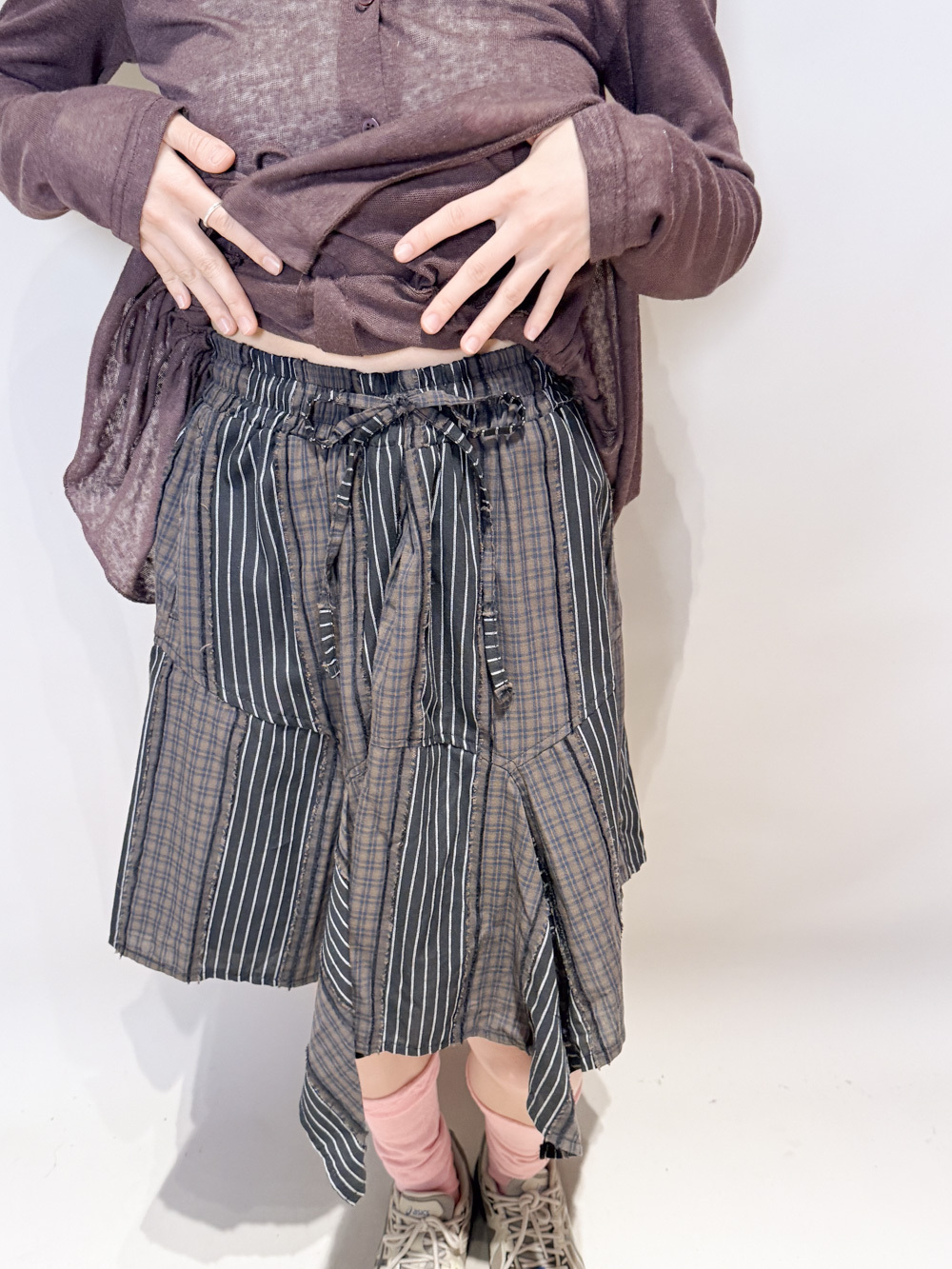 Patchwork Irregular Skirt (BEIGE/ BLACK) - Free Size