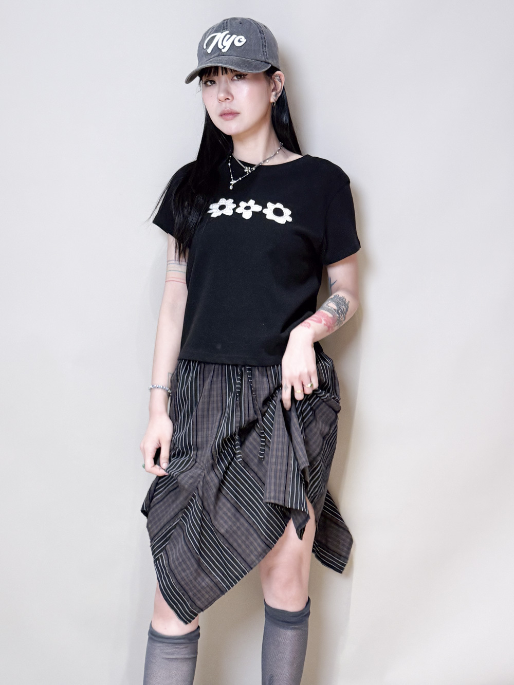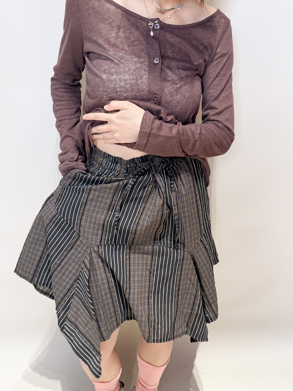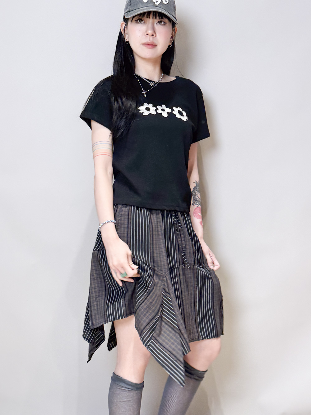 Patchwork Irregular Skirt (BEIGE/ BLACK) - Free Size