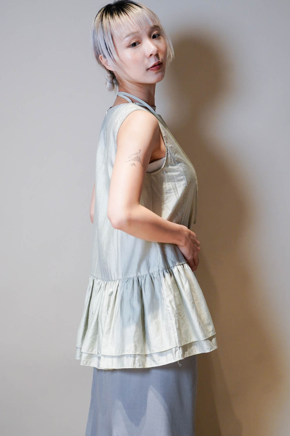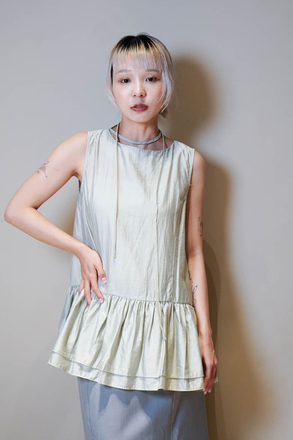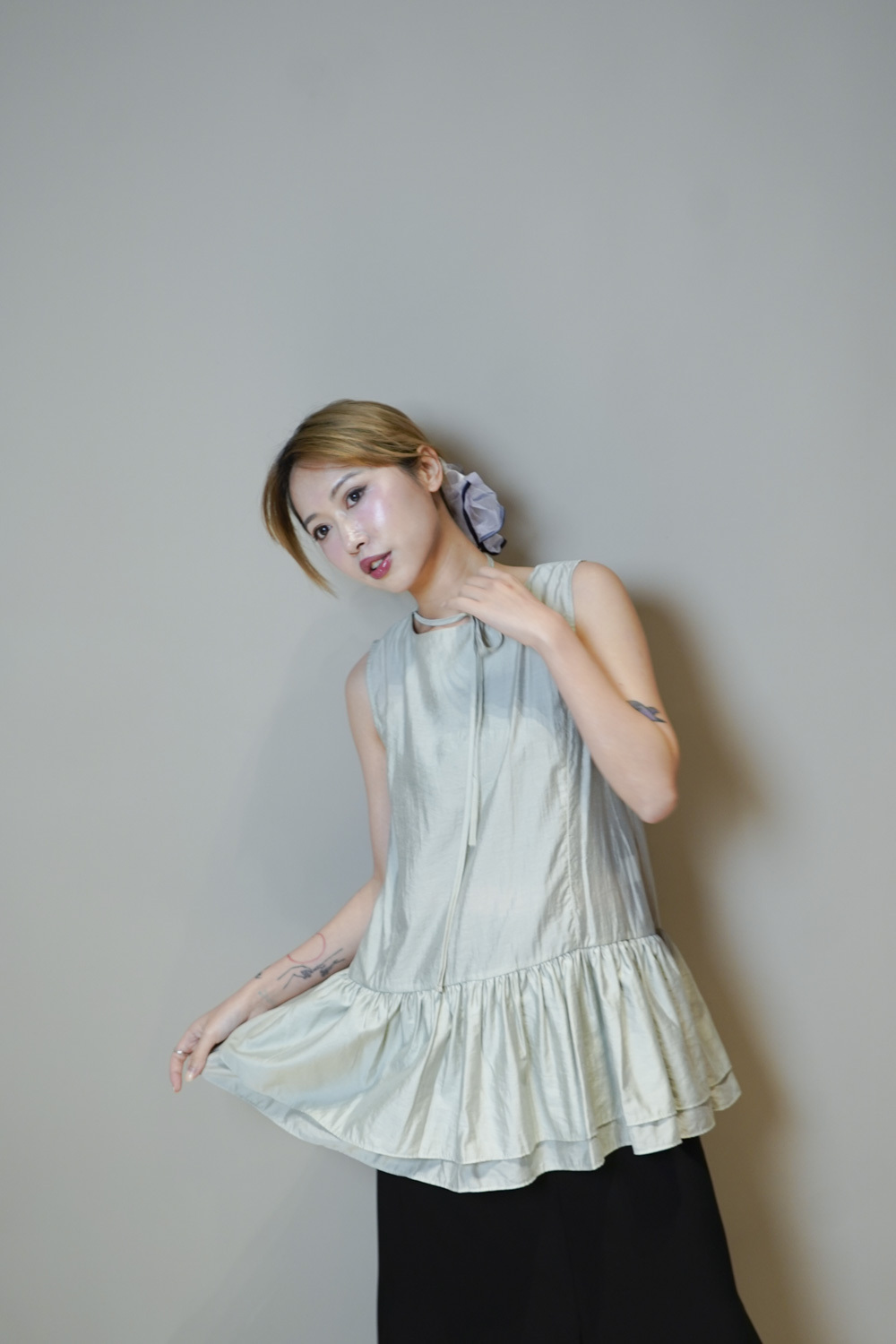 特別訂製~Pear pearly long vest with chocker (MINT/BLACK)