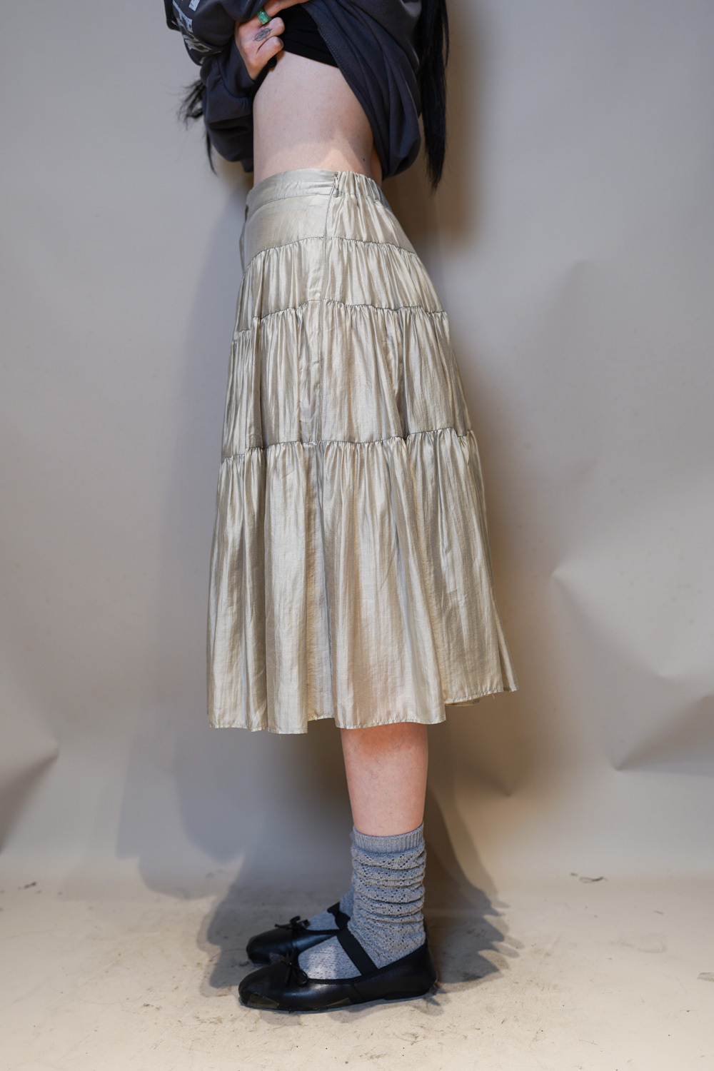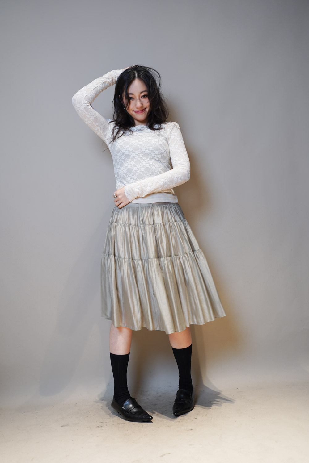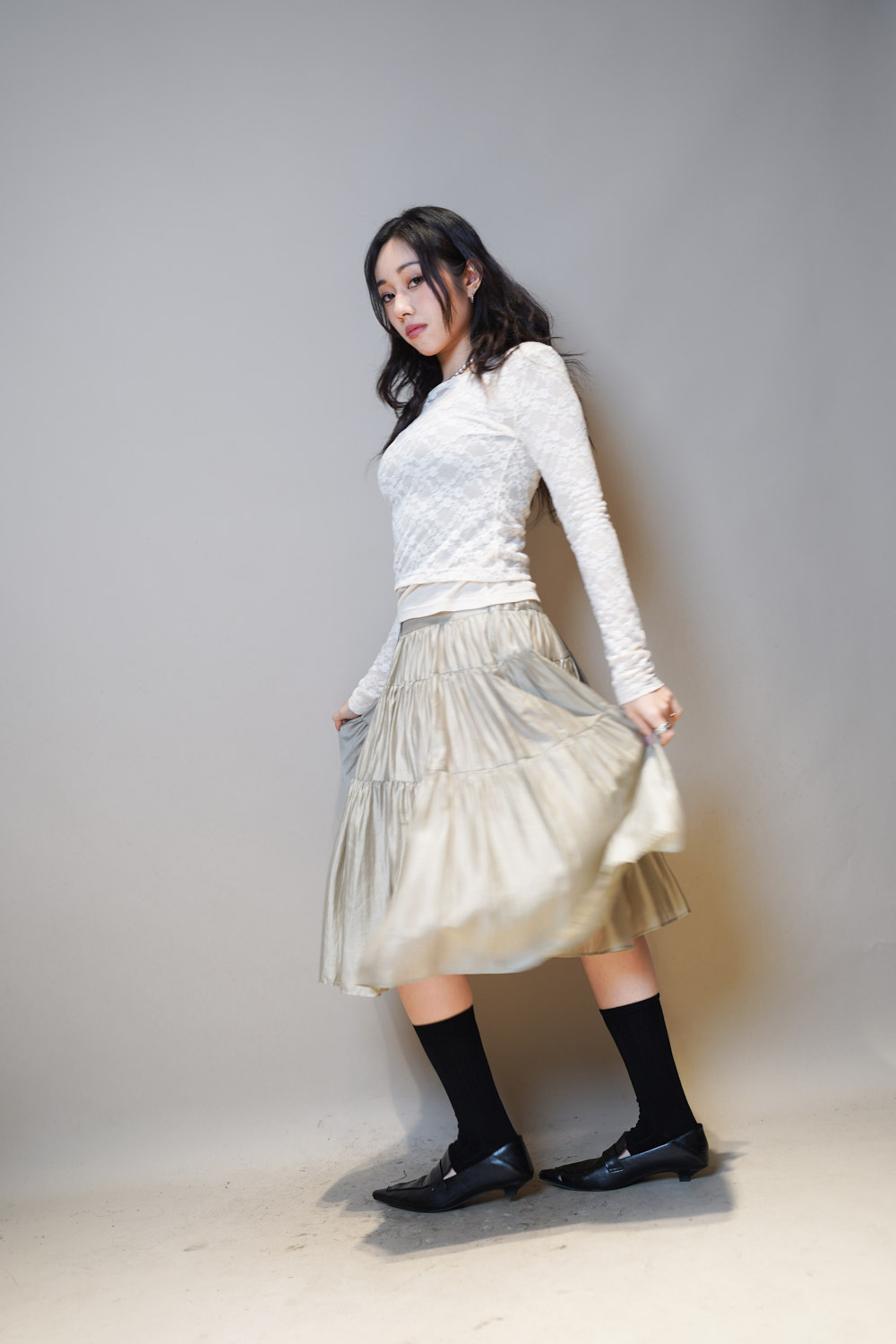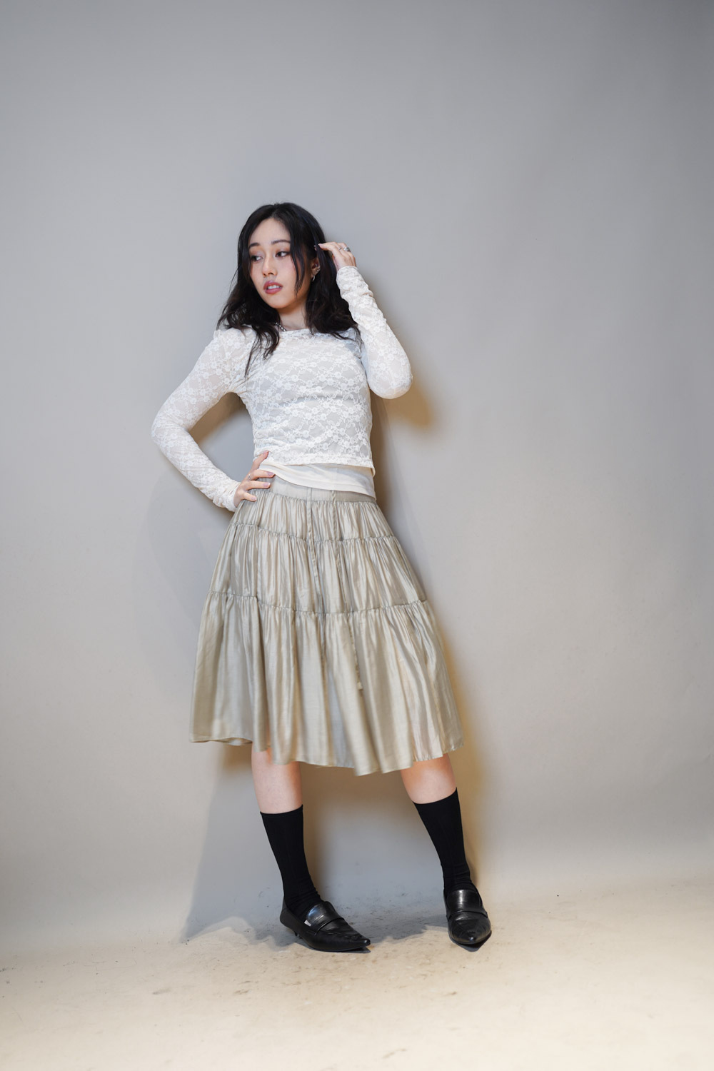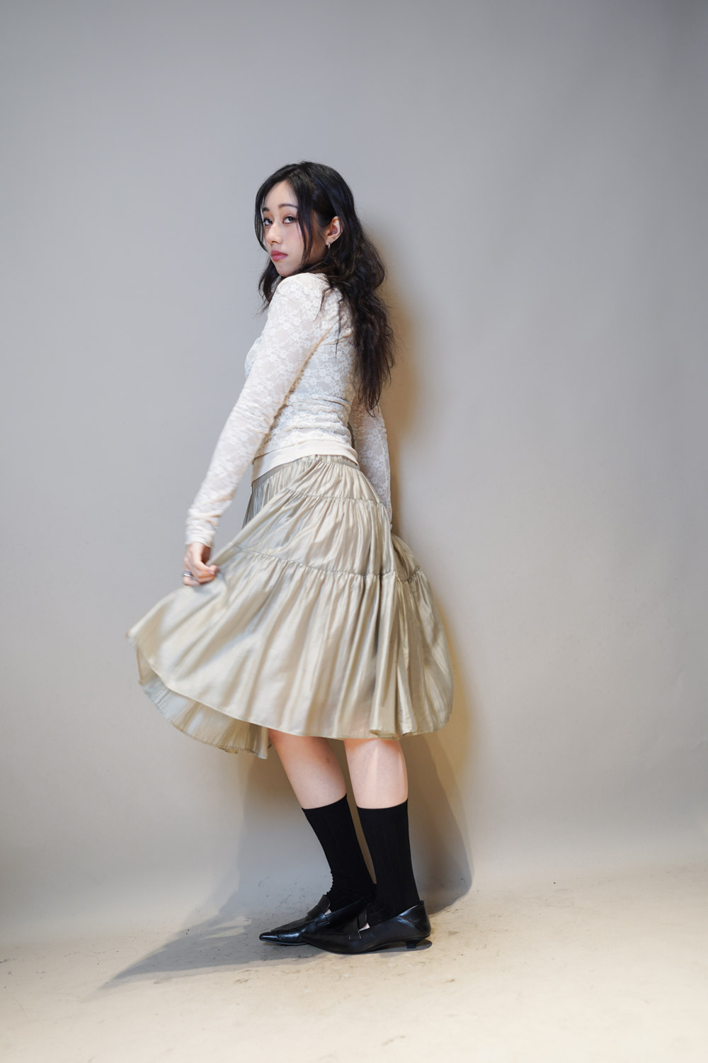 Pearly Fan skirt (BEIGE/GREY) - Free size