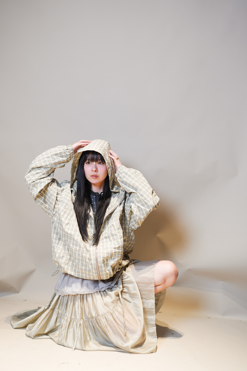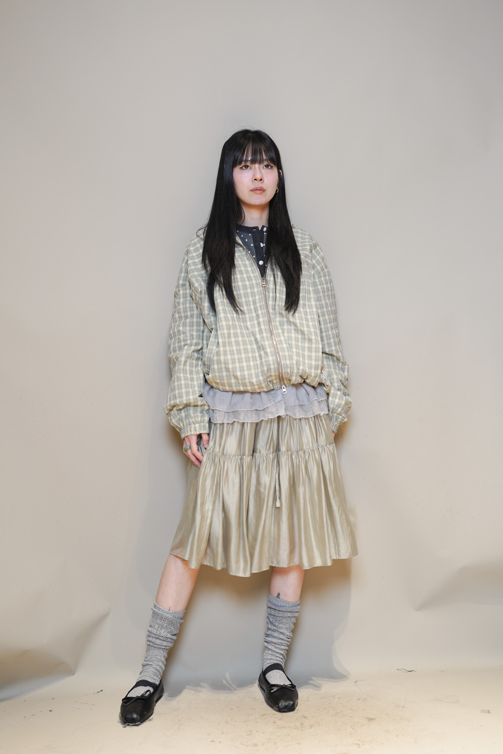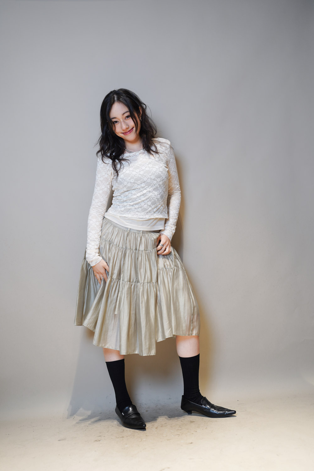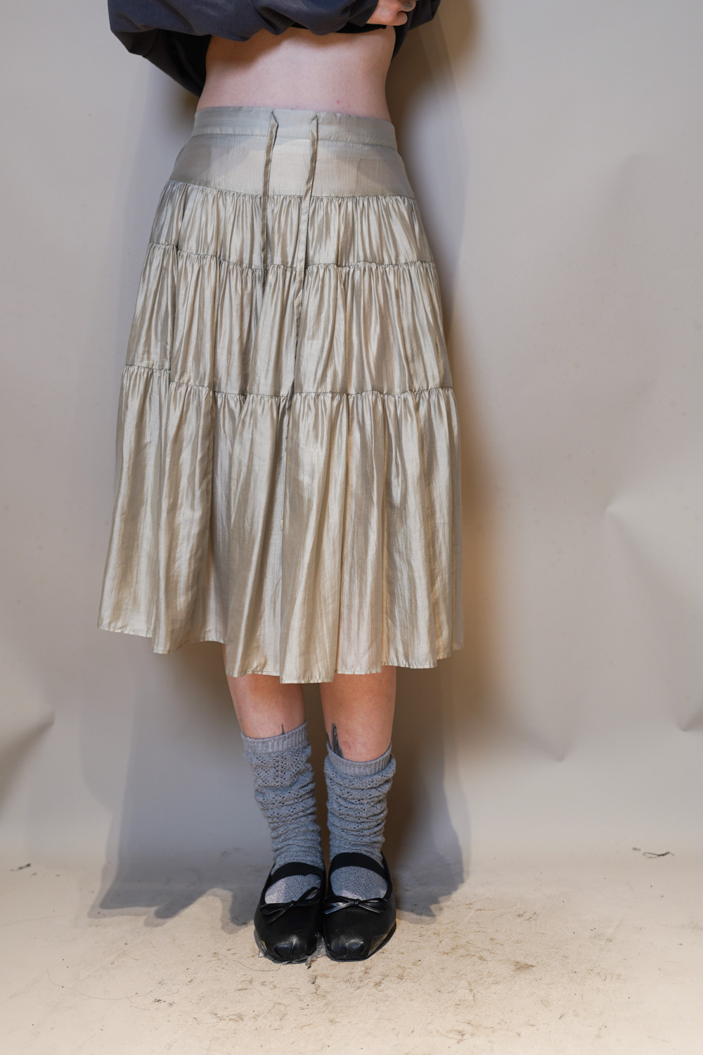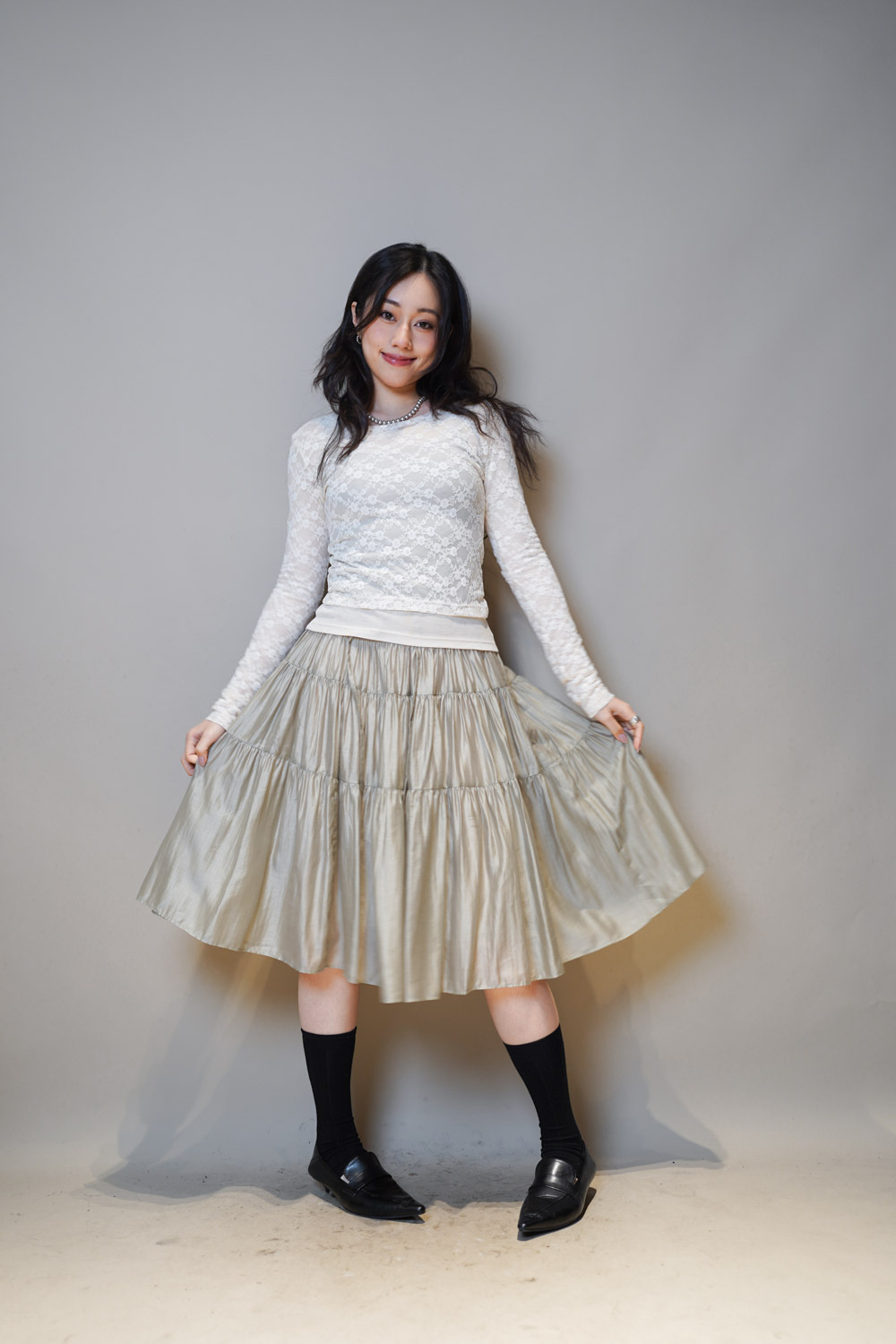 Pearly Fan skirt (BEIGE/GREY) - Free size