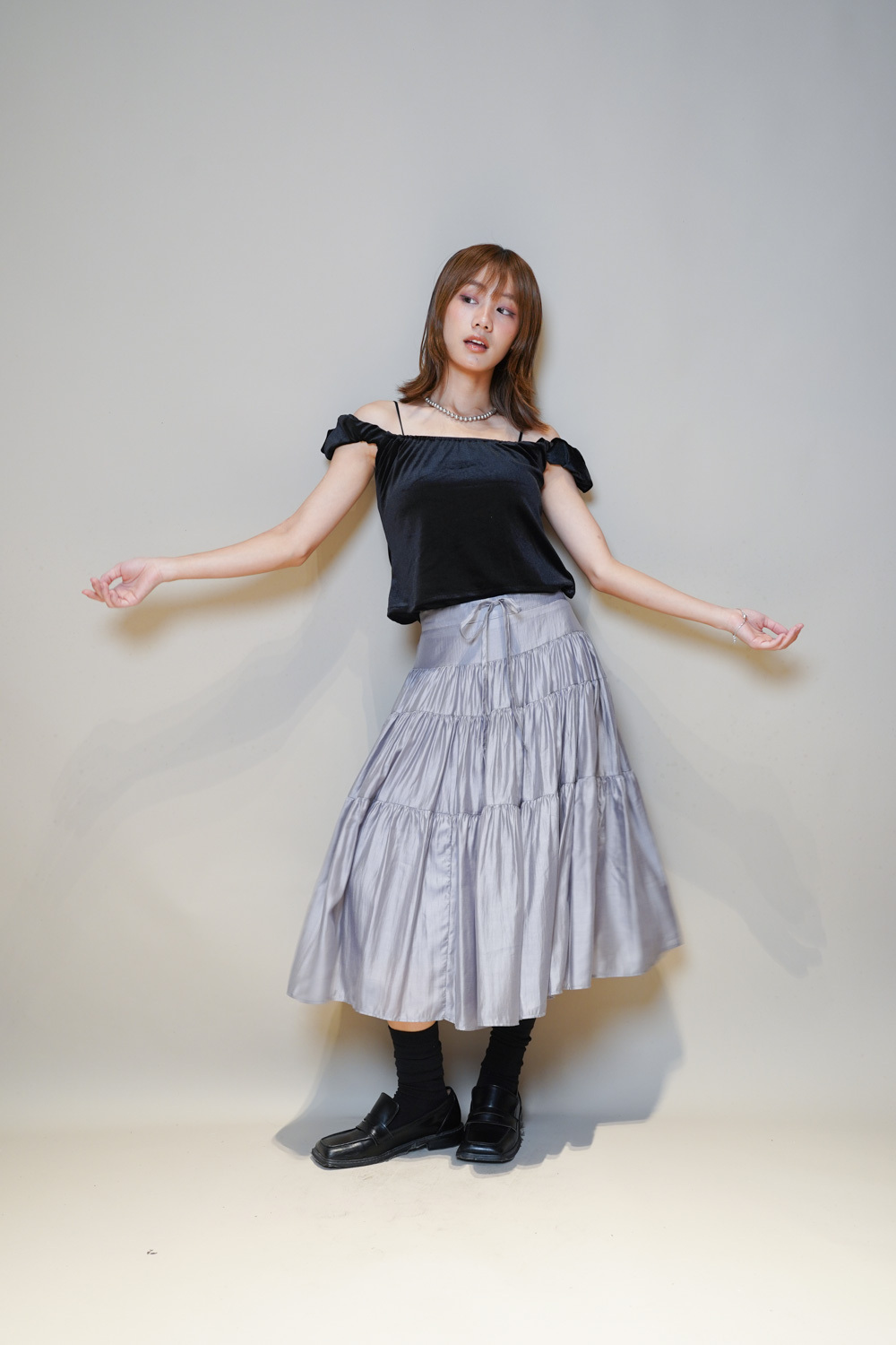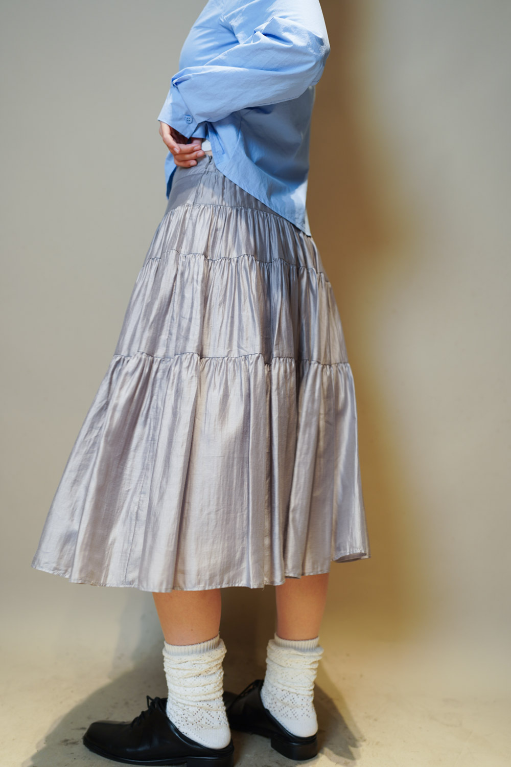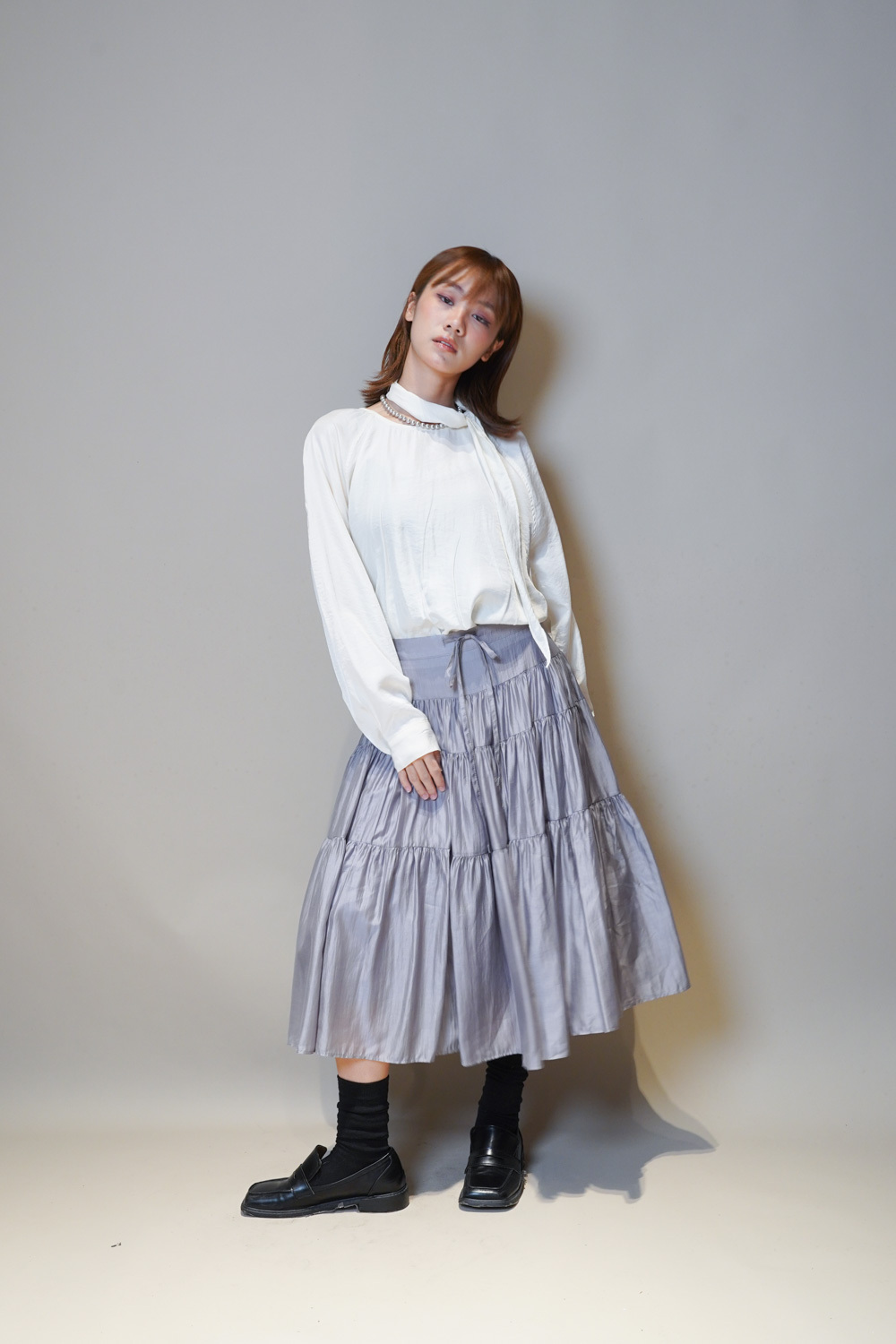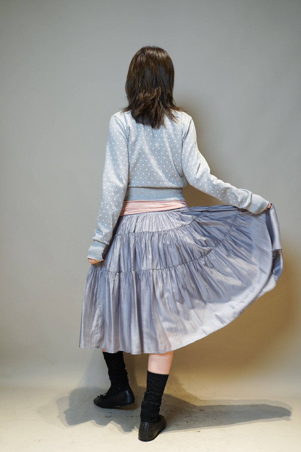 Pearly Fan skirt (BEIGE/GREY) - Free size