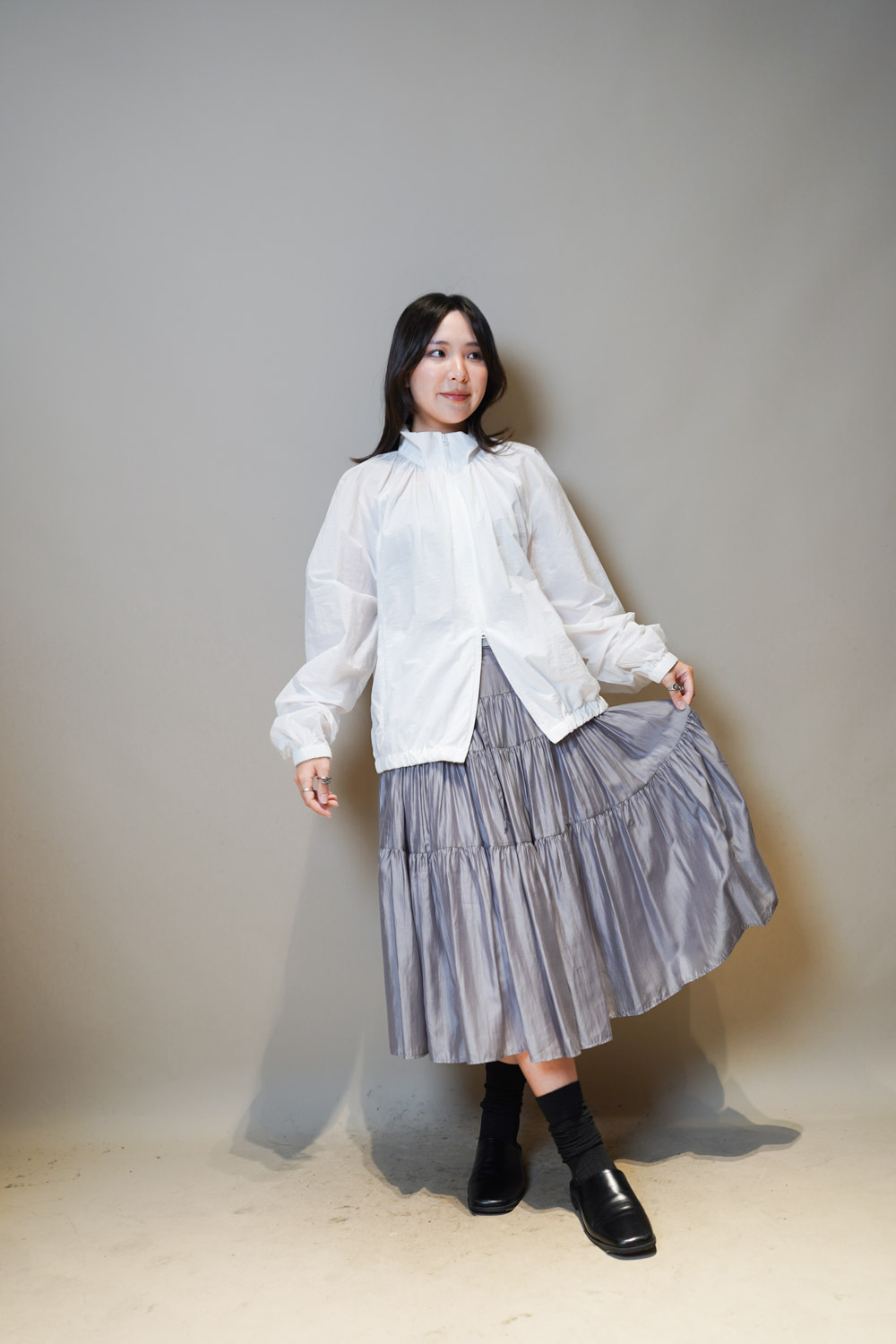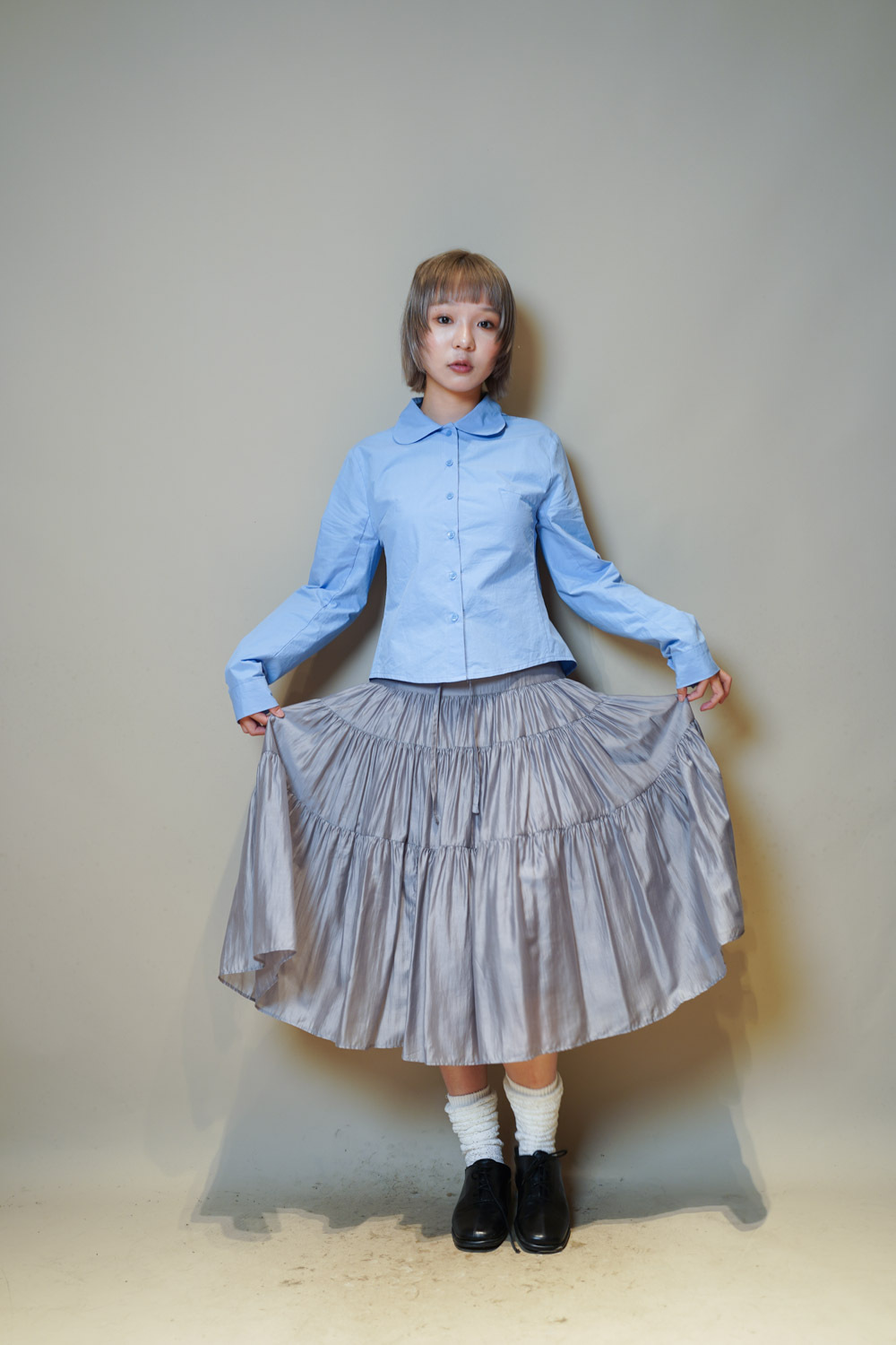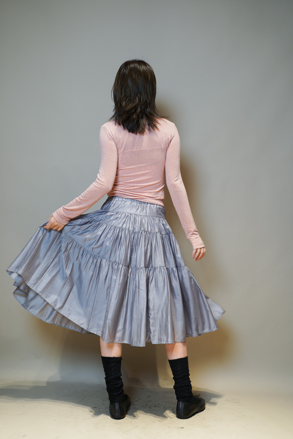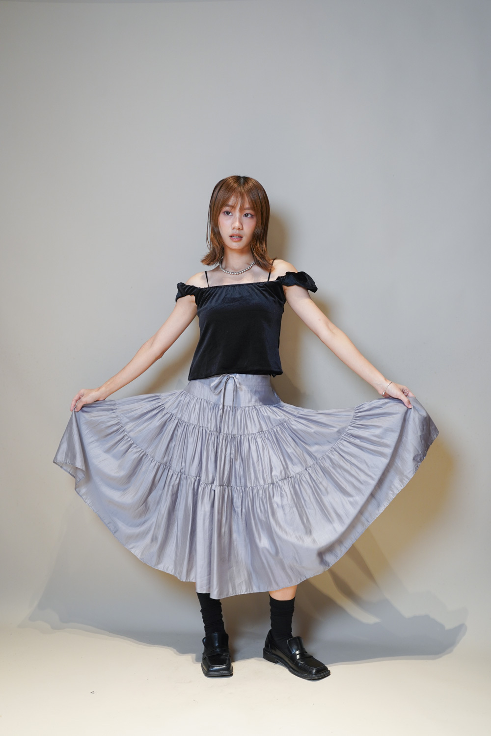 Pearly Fan skirt (BEIGE/GREY) - Free size