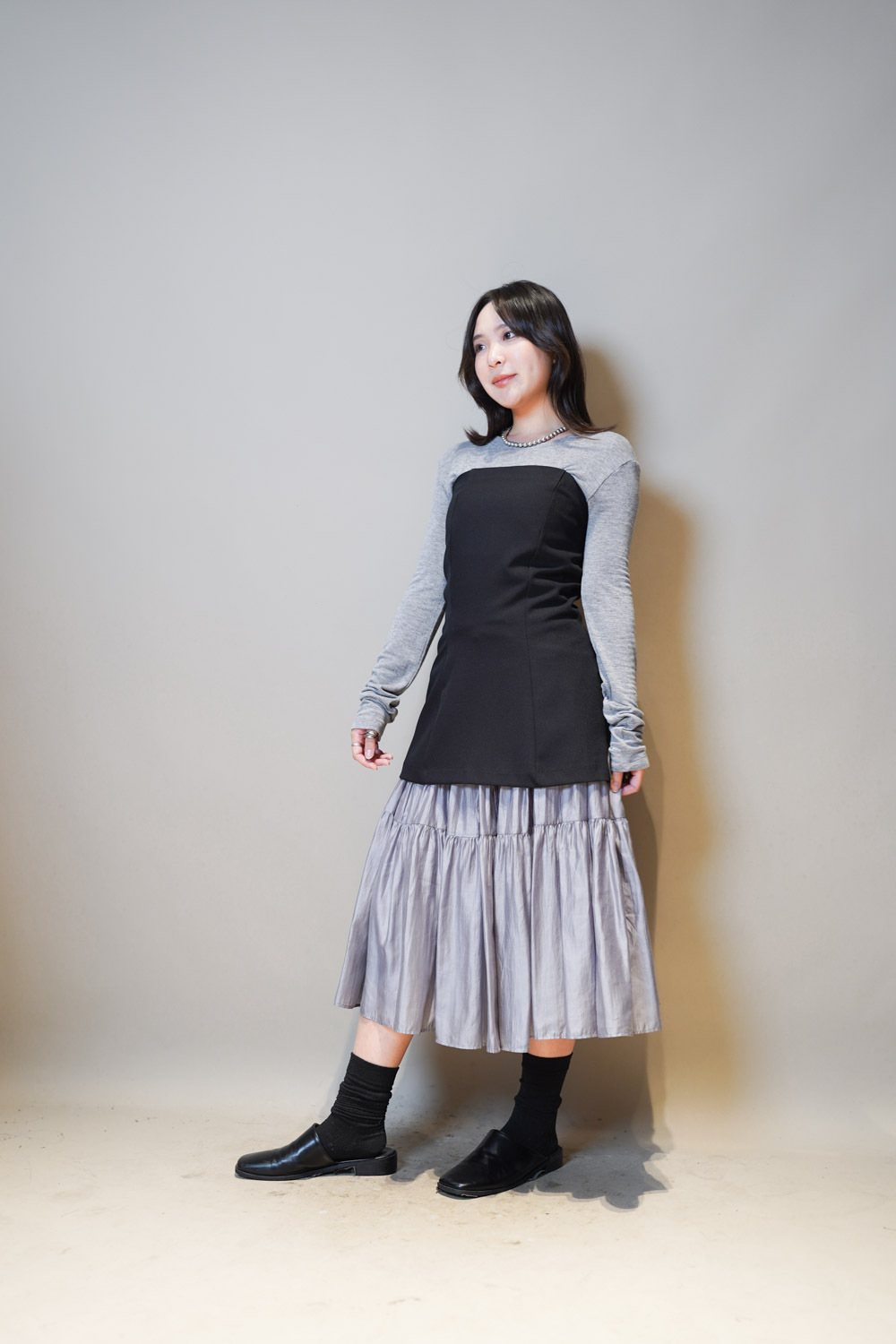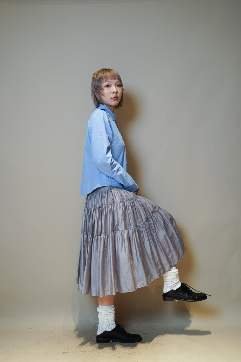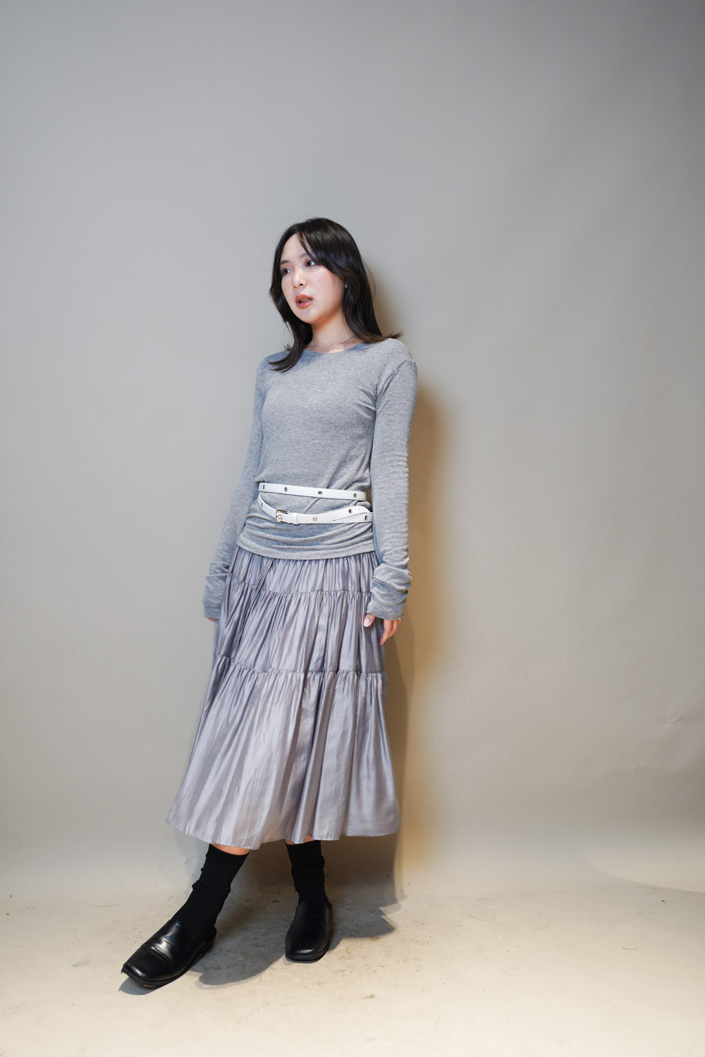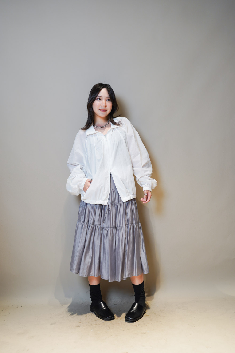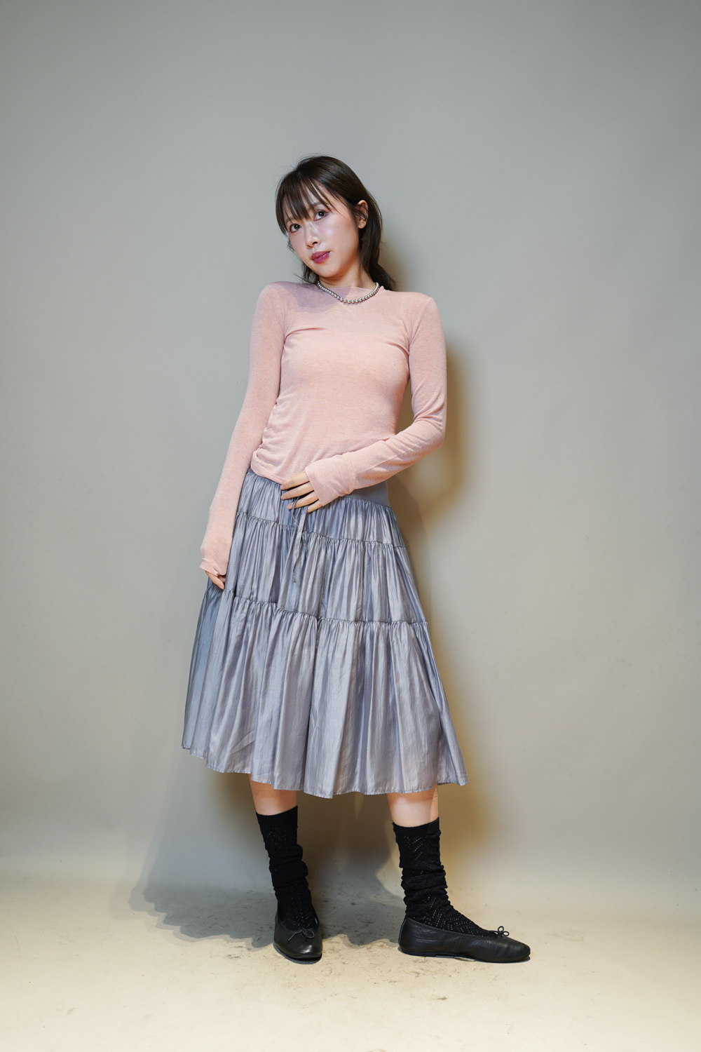 Pearly Fan skirt (BEIGE/GREY) - Free size