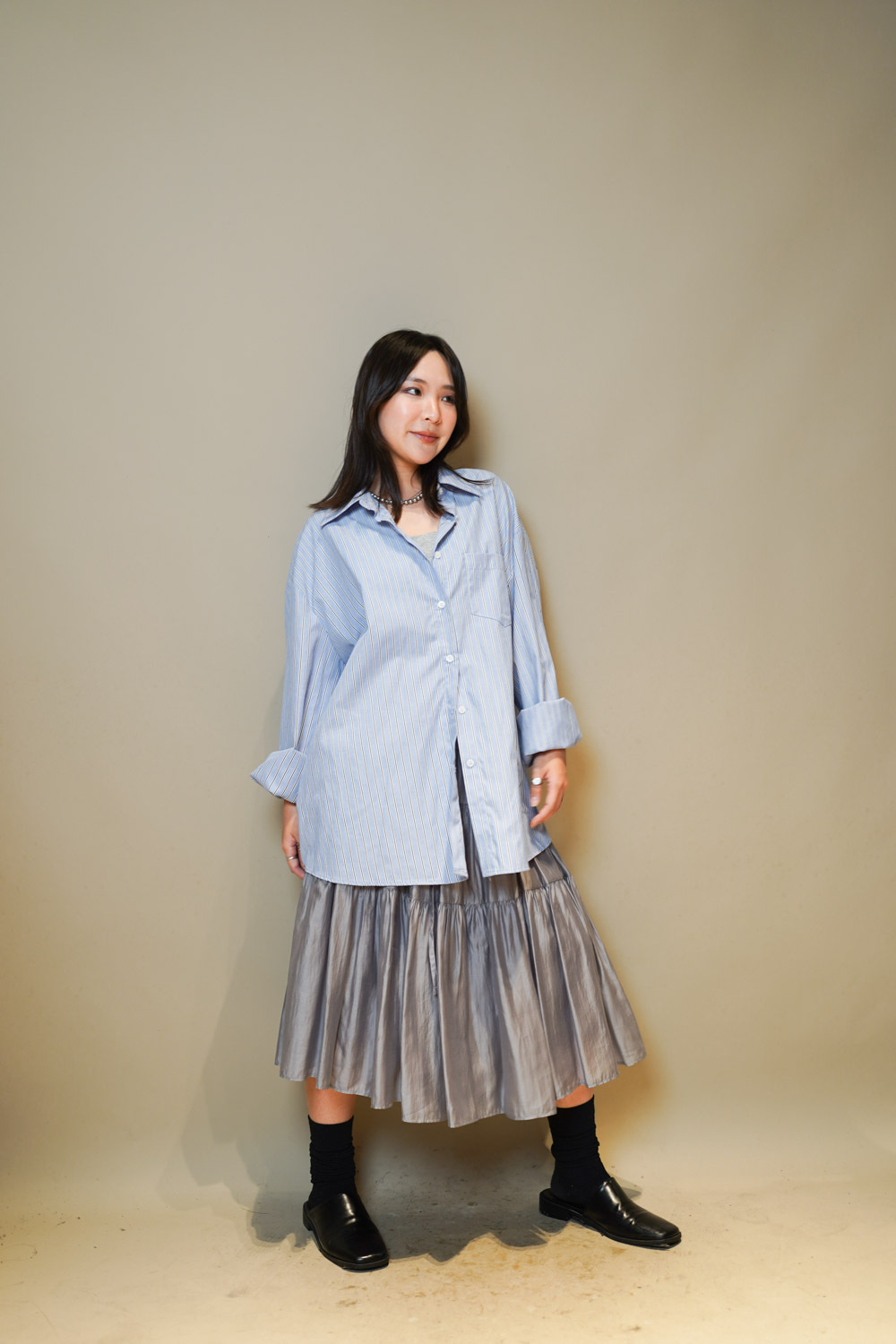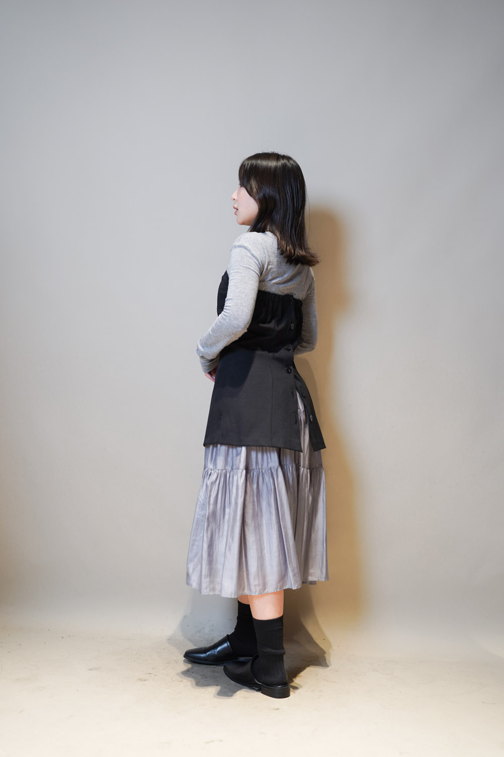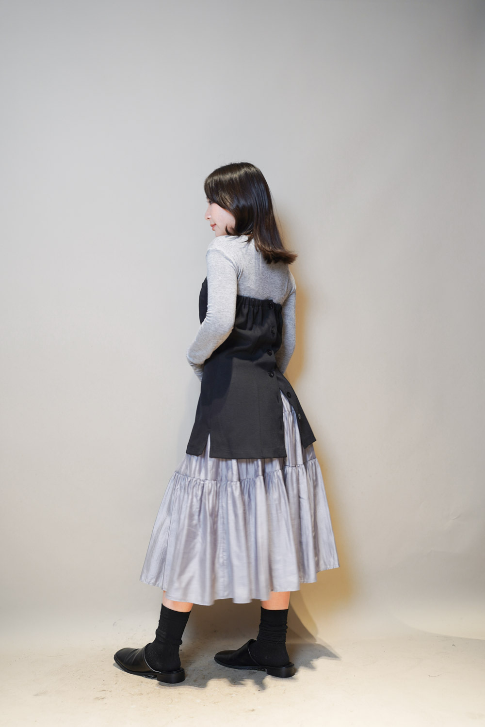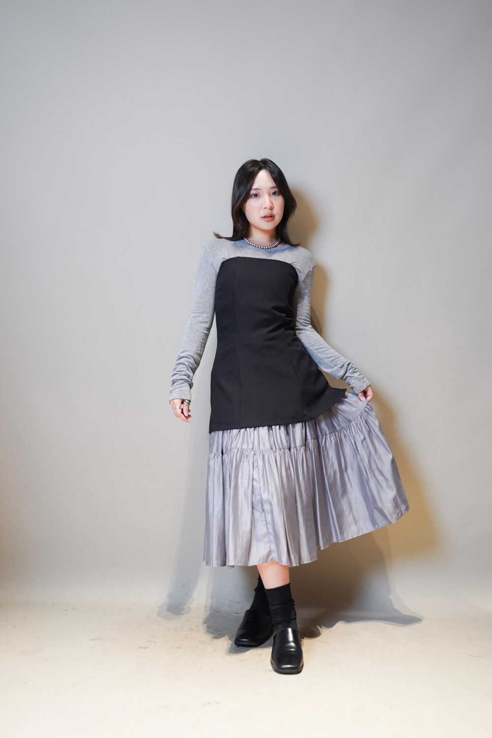Pearly Fan skirt (BEIGE/GREY) - Free size
