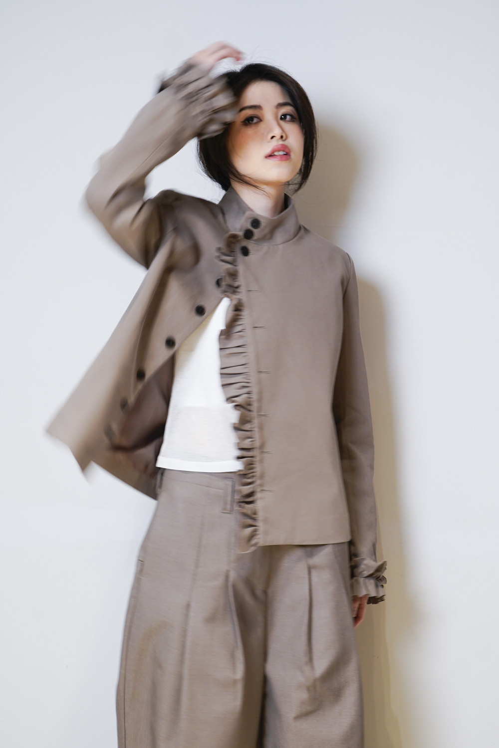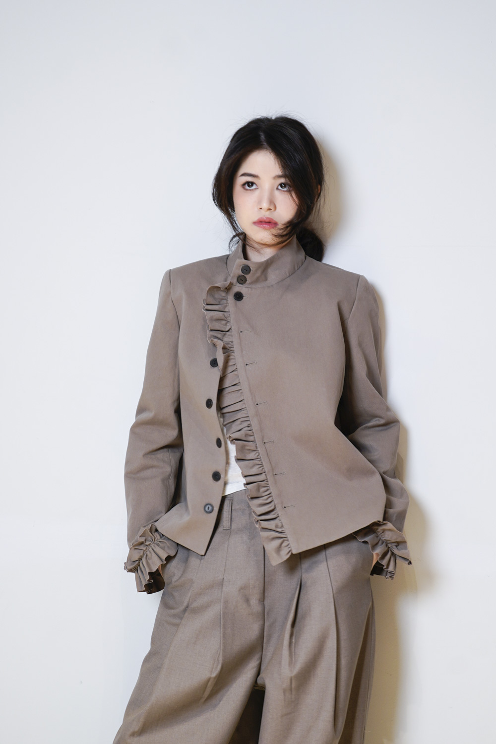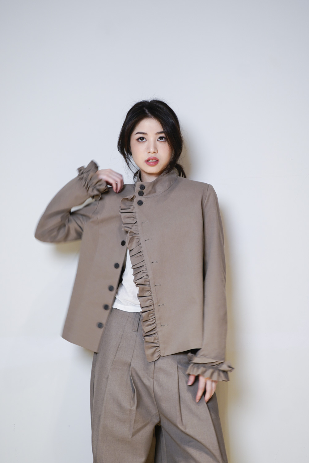乾淨俐落的帥氣感 / 圓領可展現內搭 增加層次感 / 微A修飾腰線及小肚子