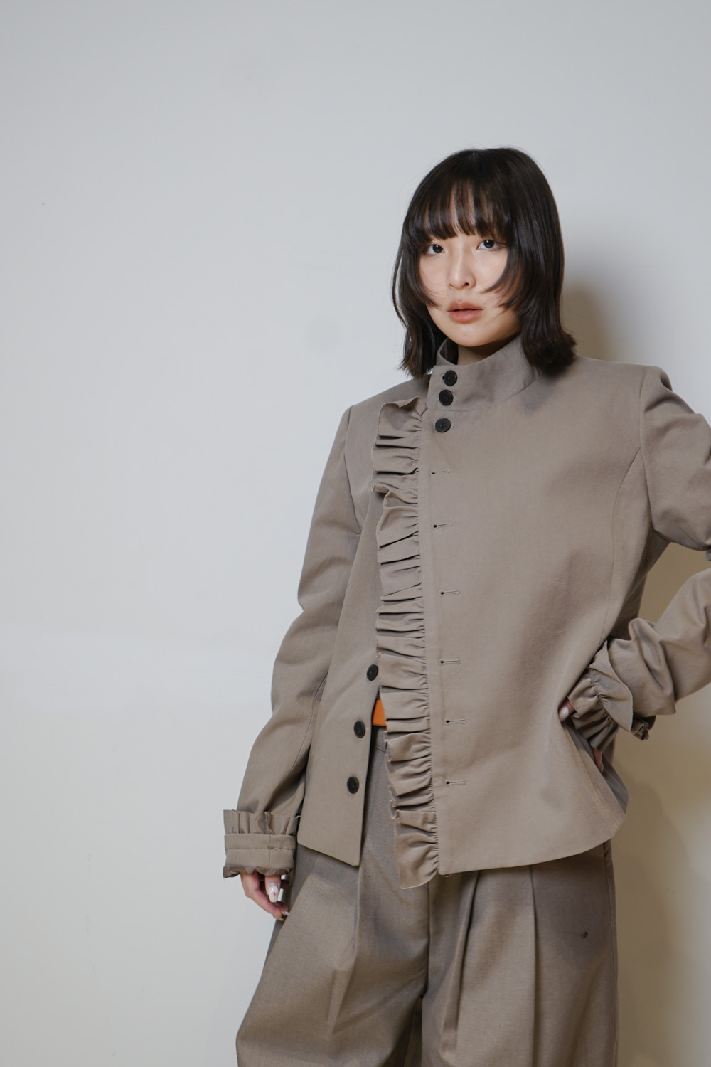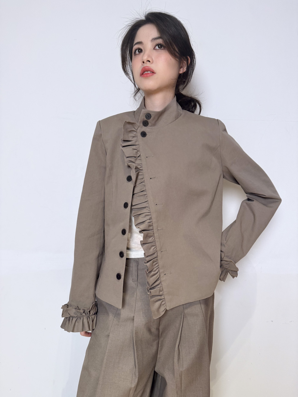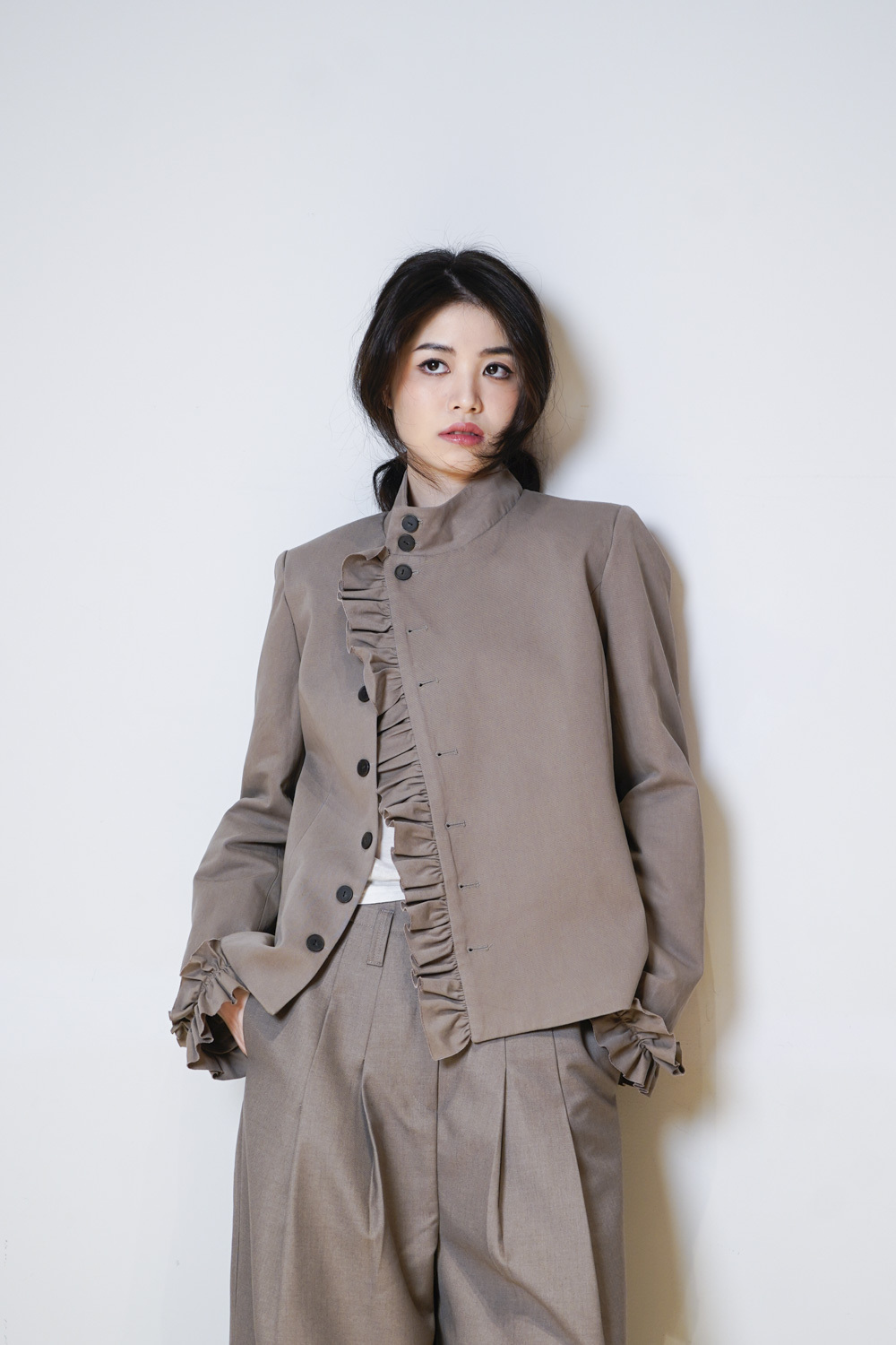 乾淨俐落的帥氣感 / 圓領可展現內搭 增加層次感 / 微A修飾腰線及小肚子