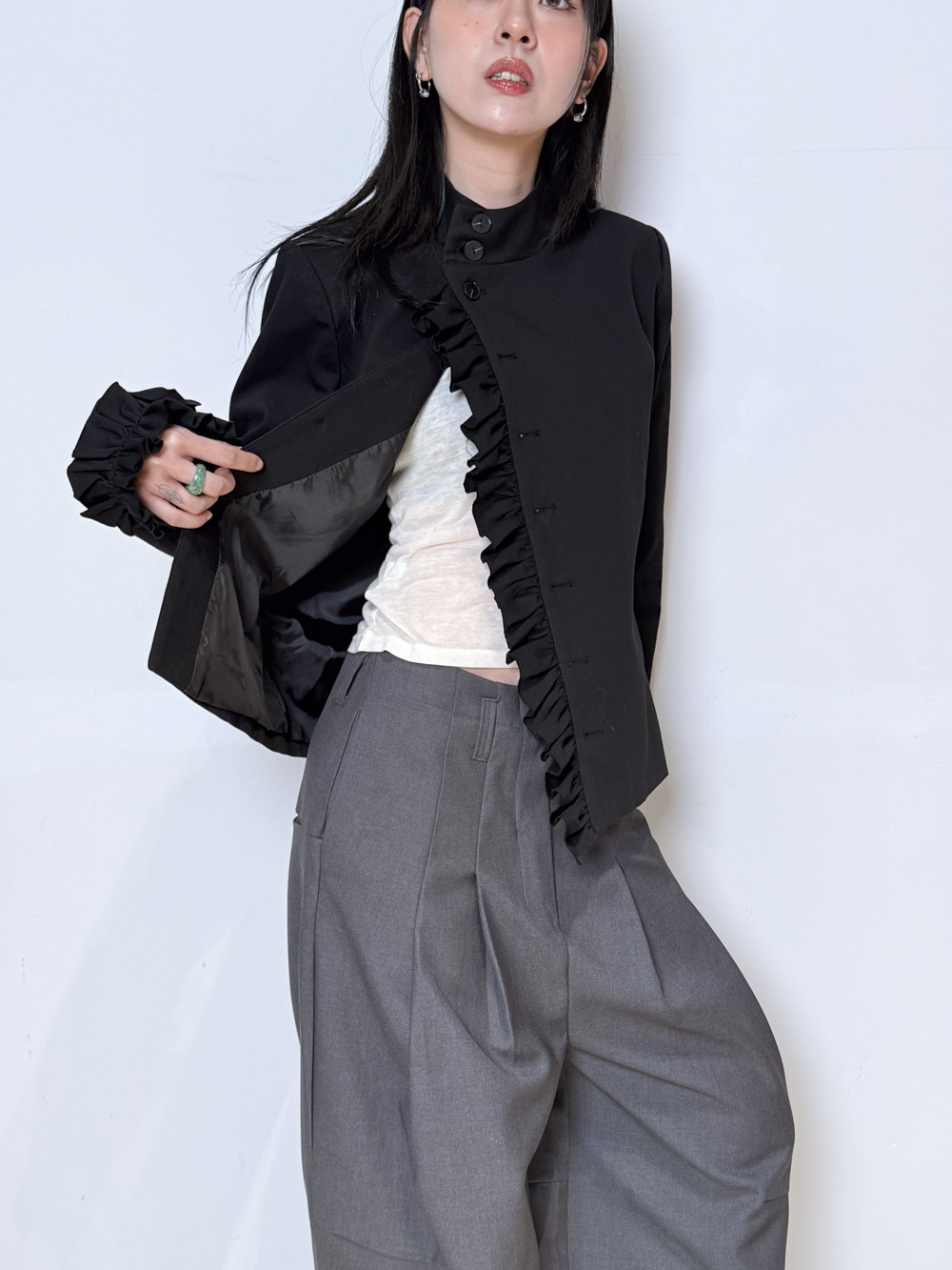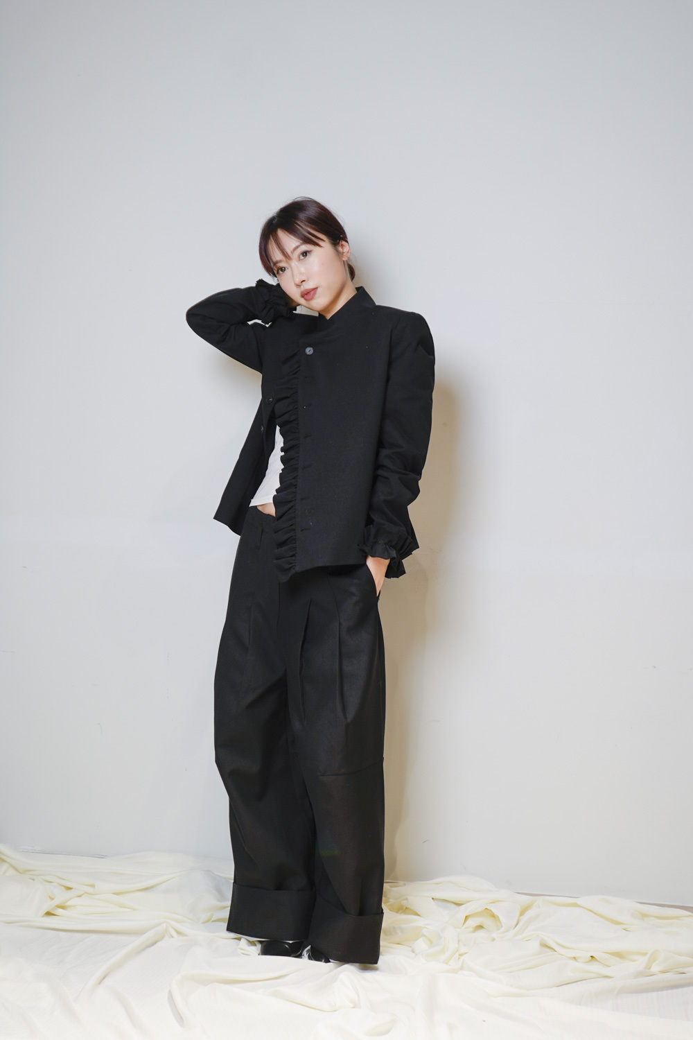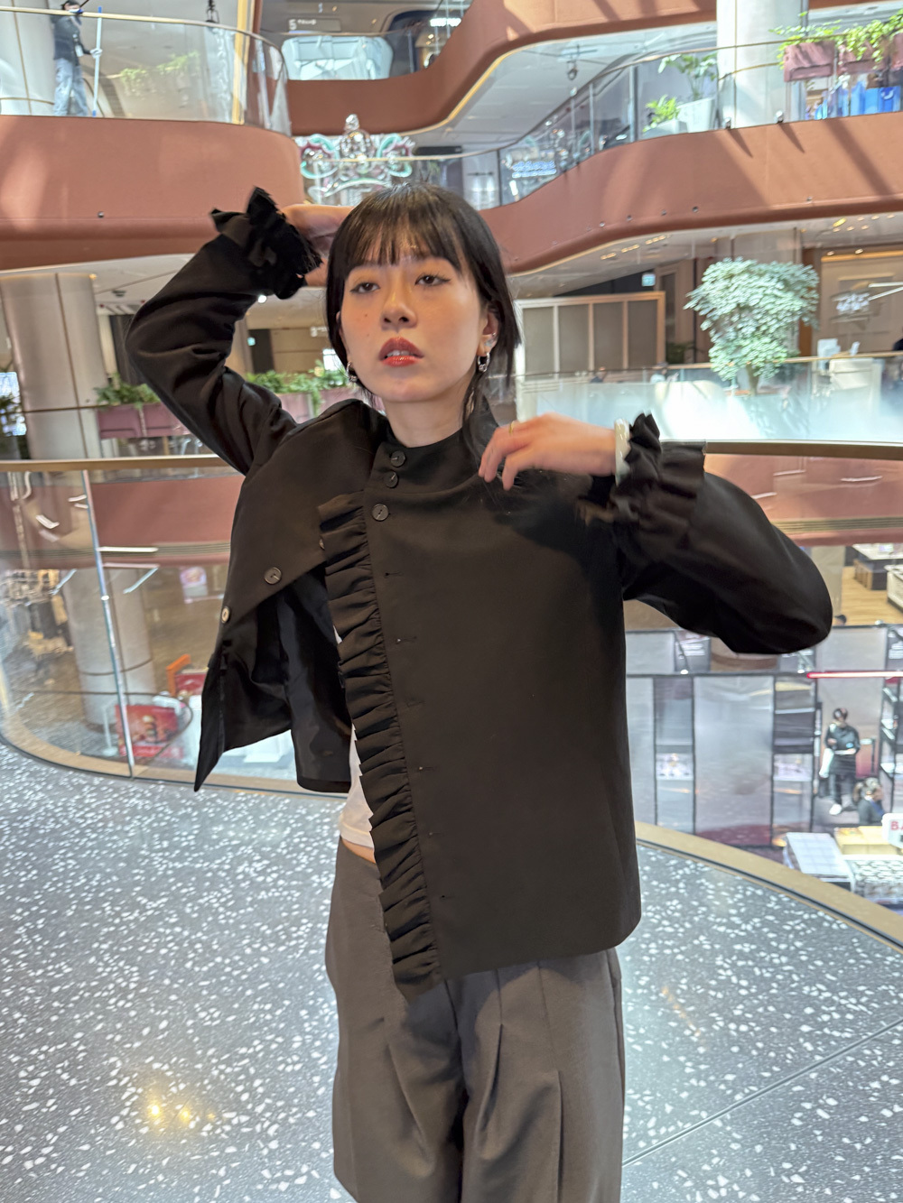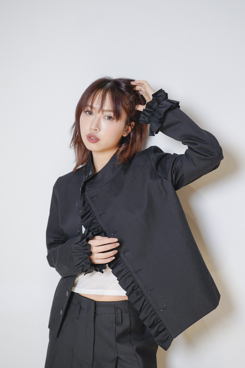 乾淨俐落的帥氣感 / 圓領可展現內搭 增加層次感 / 微A修飾腰線及小肚子