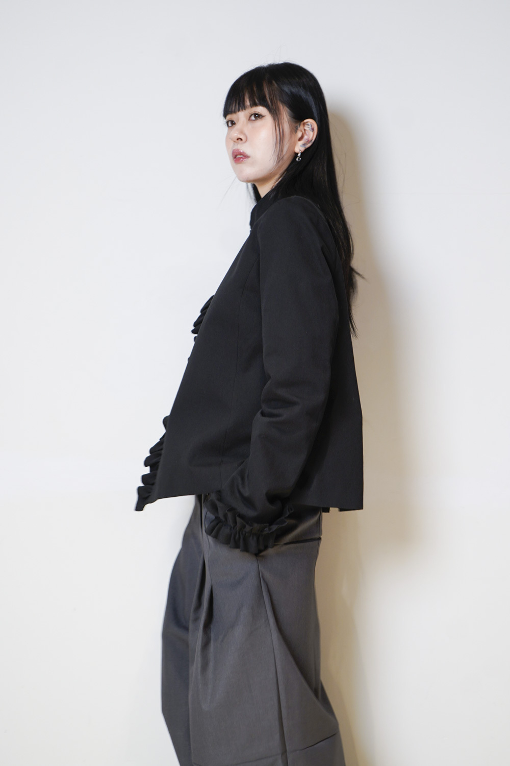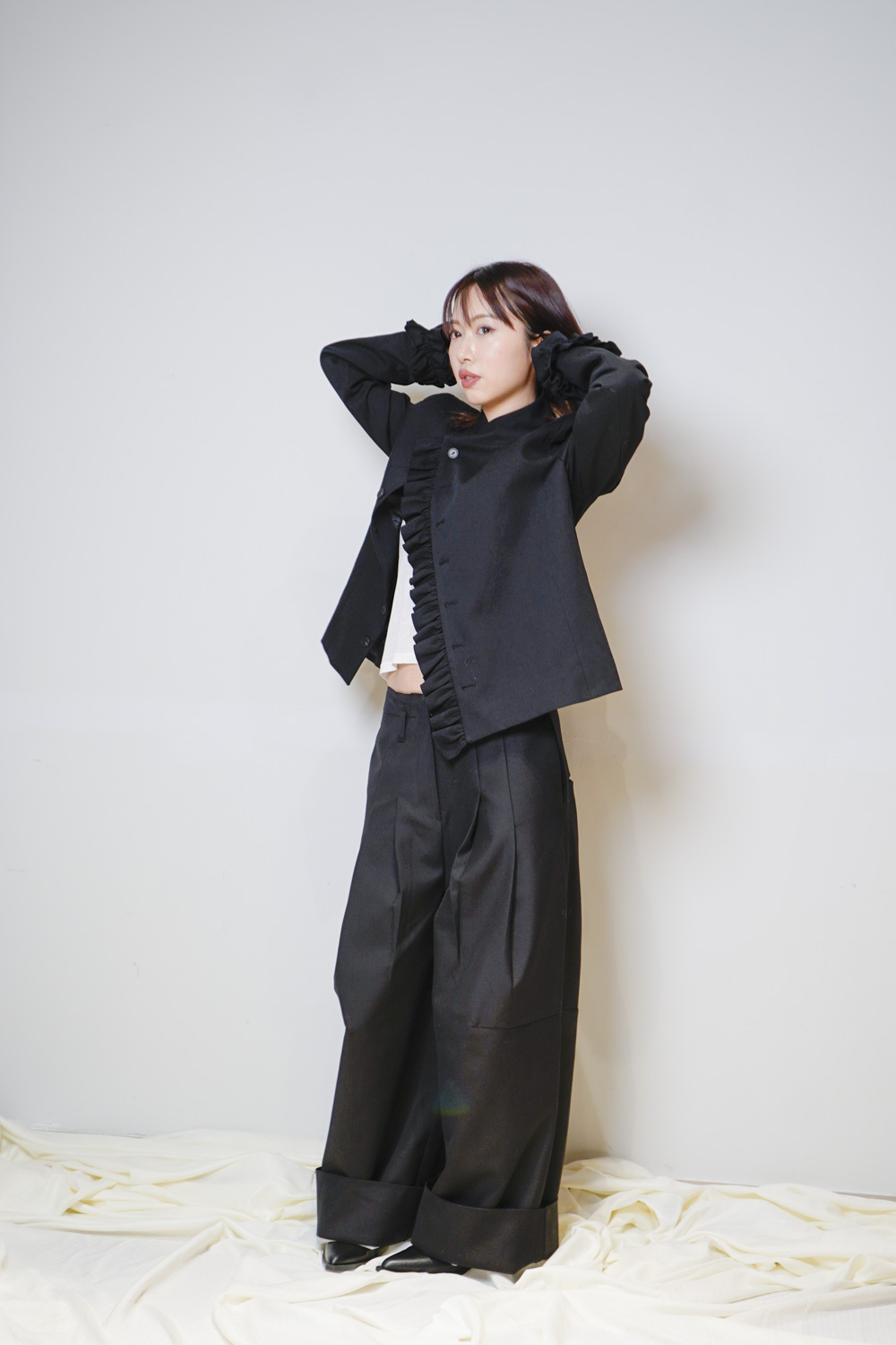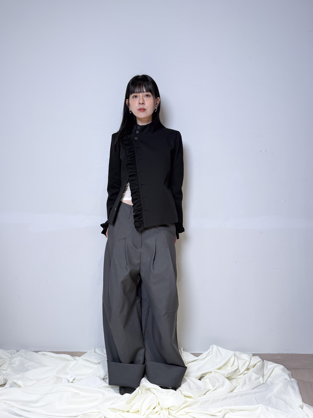 乾淨俐落的帥氣感 / 圓領可展現內搭 增加層次感 / 微A修飾腰線及小肚子