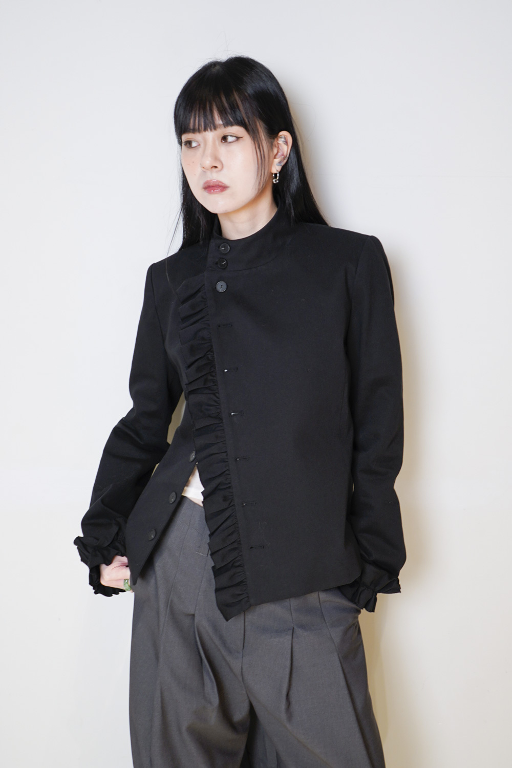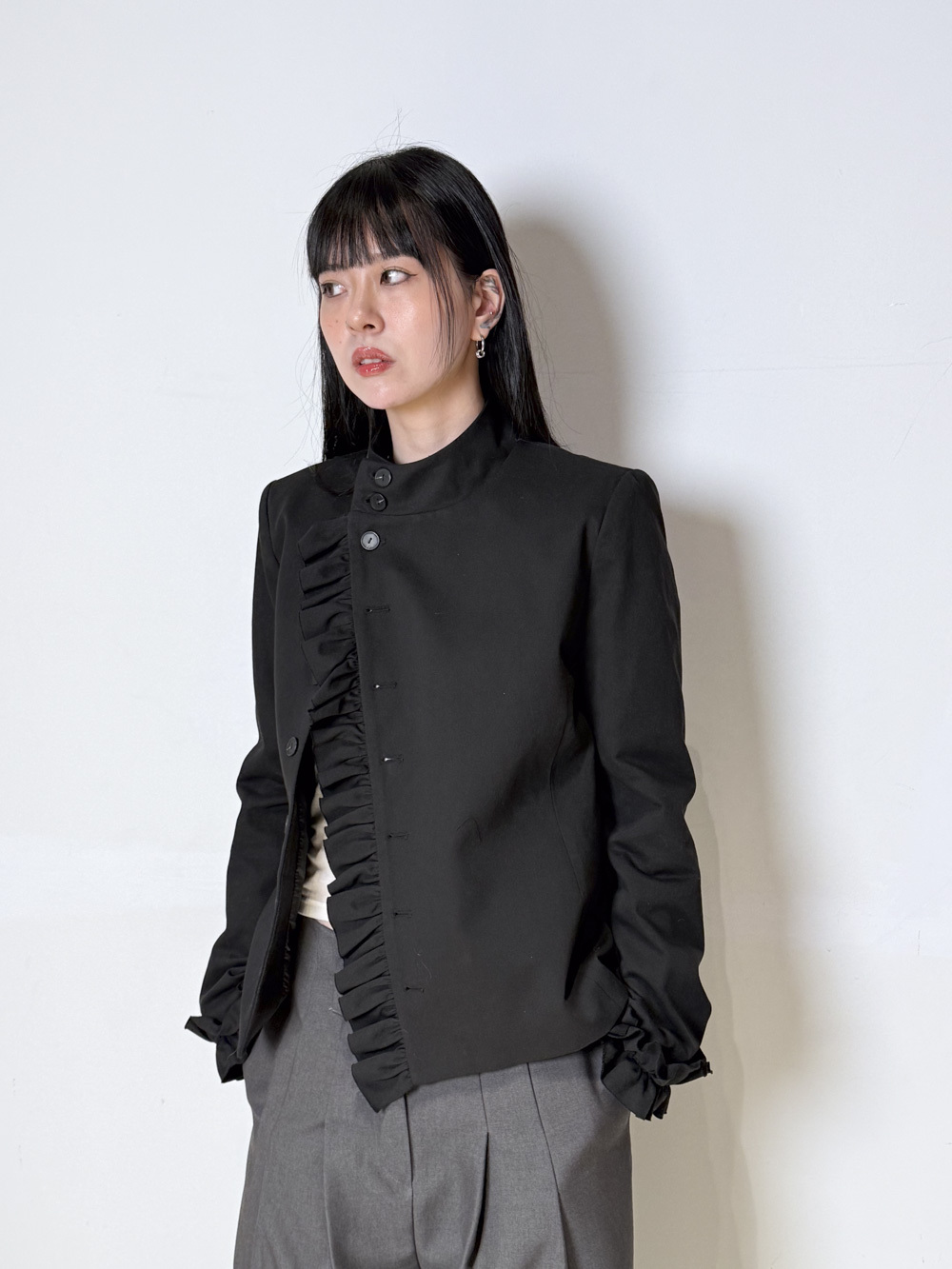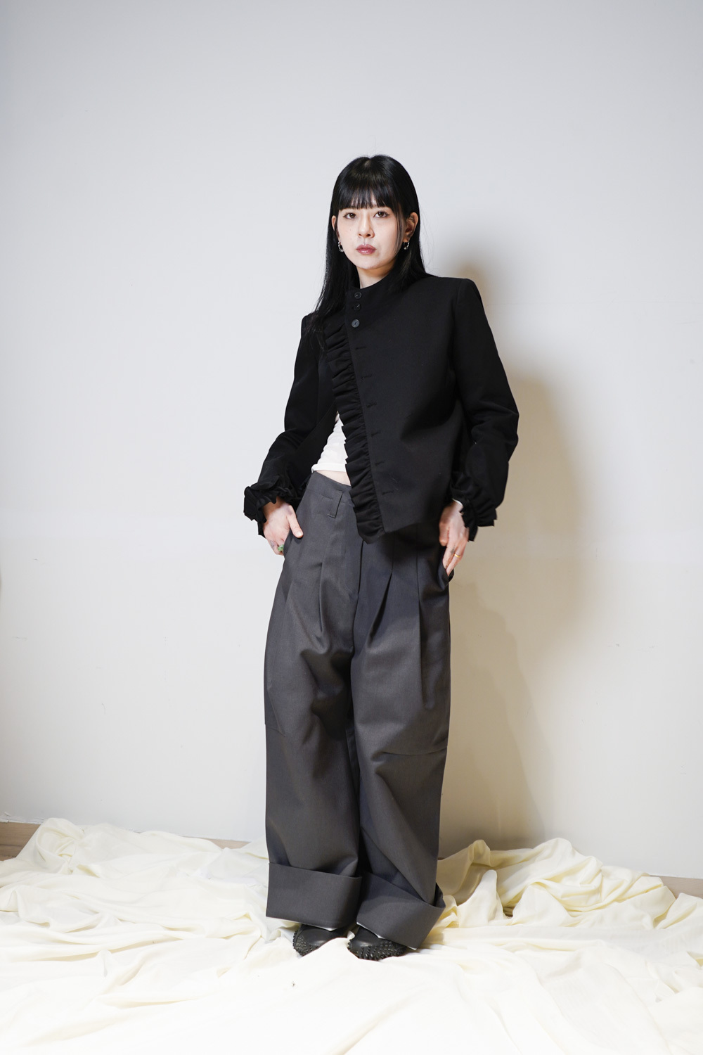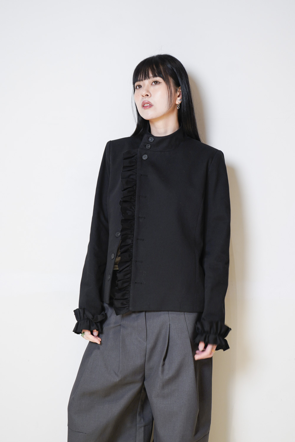 乾淨俐落的帥氣感 / 圓領可展現內搭 增加層次感 / 微A修飾腰線及小肚子