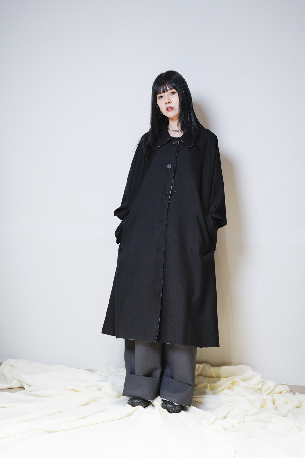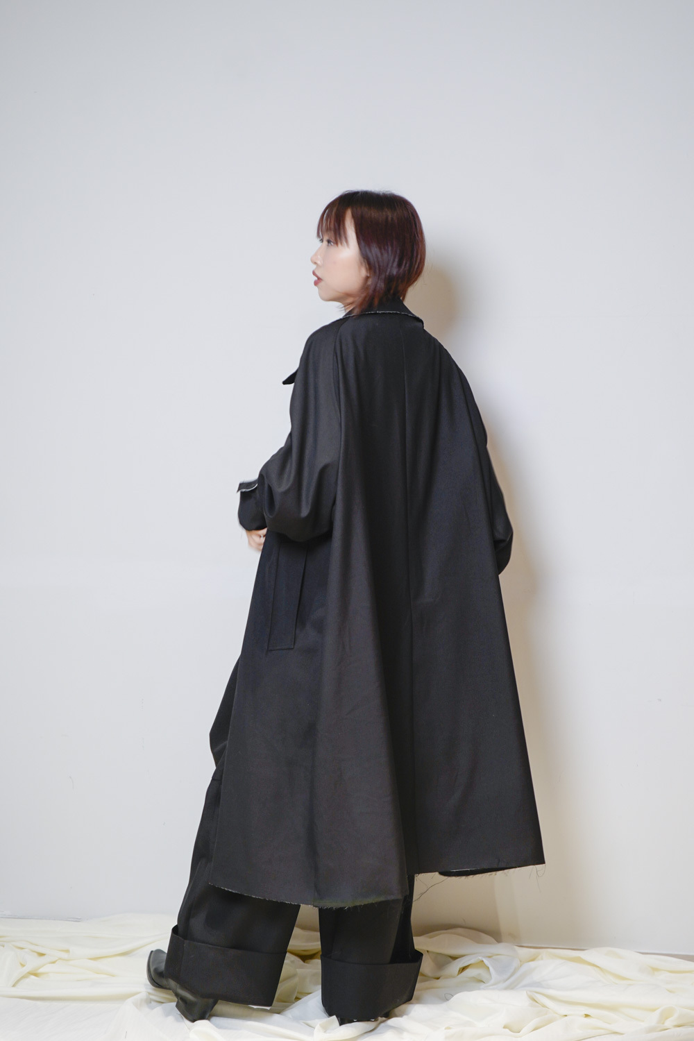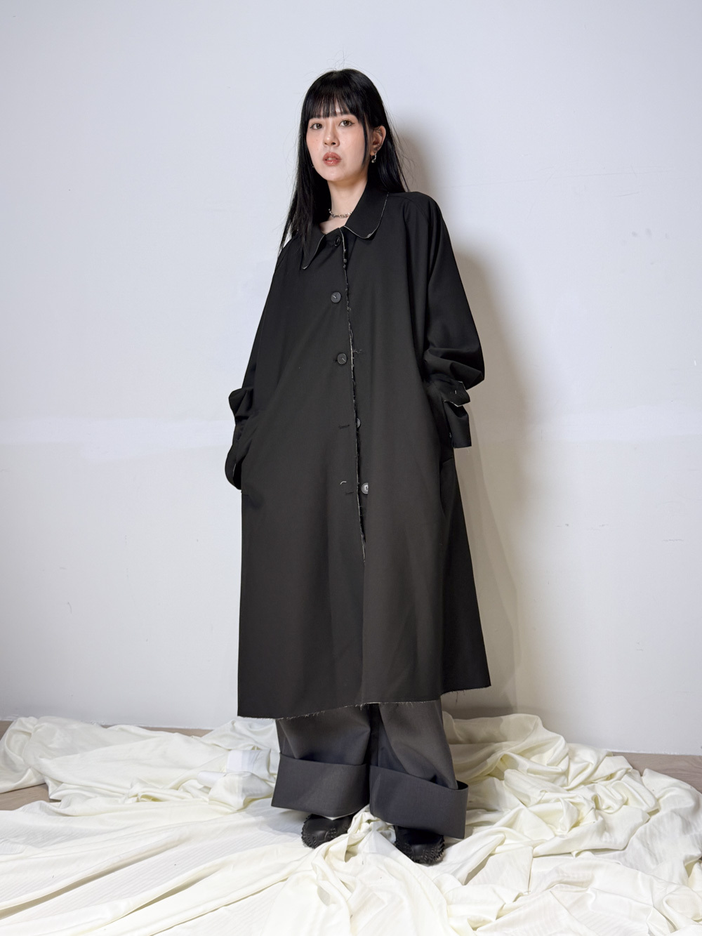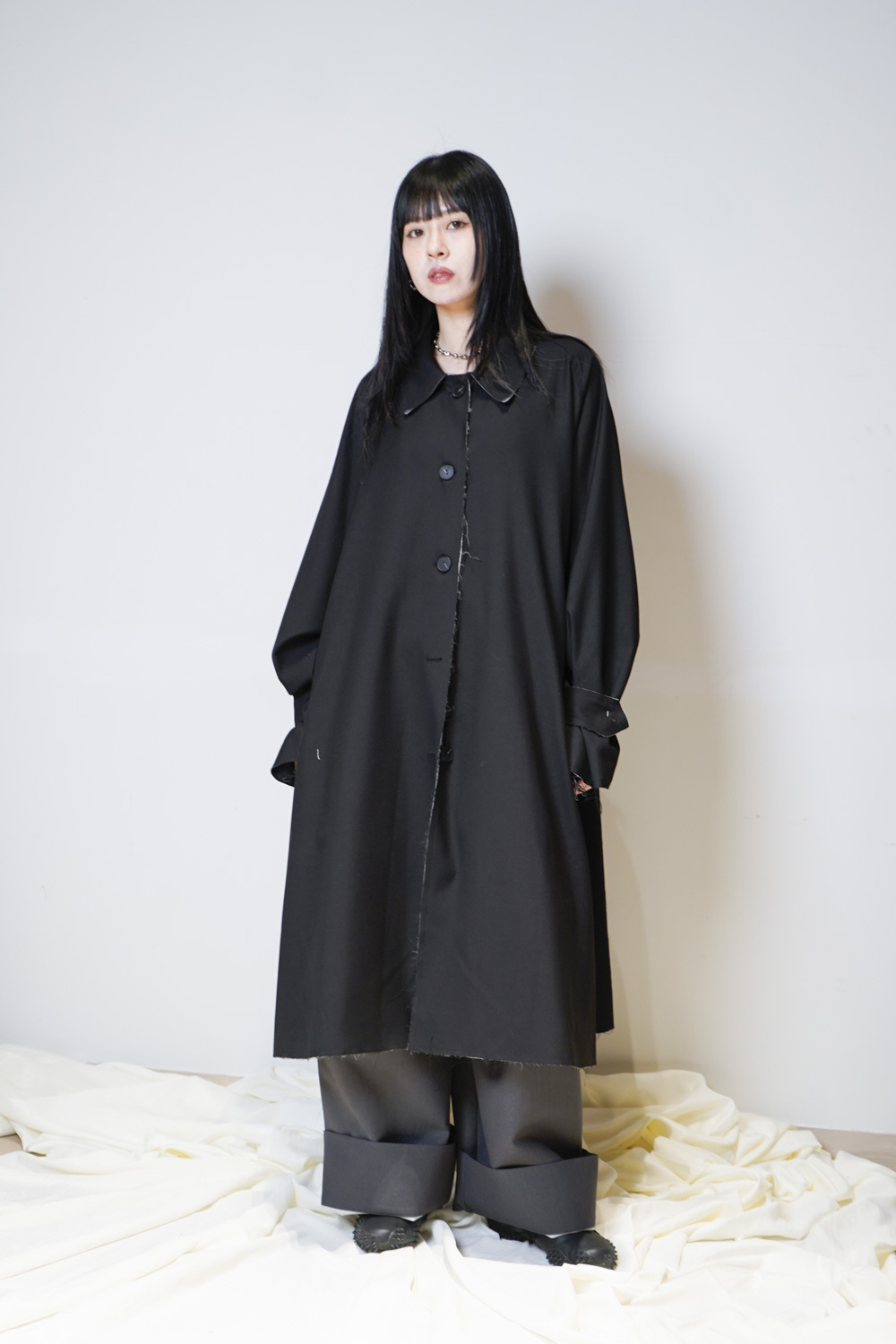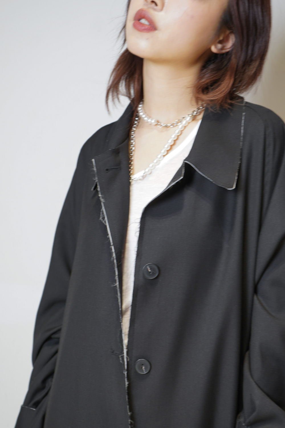 Raw edge trench coat (BEIGE/BLACK)