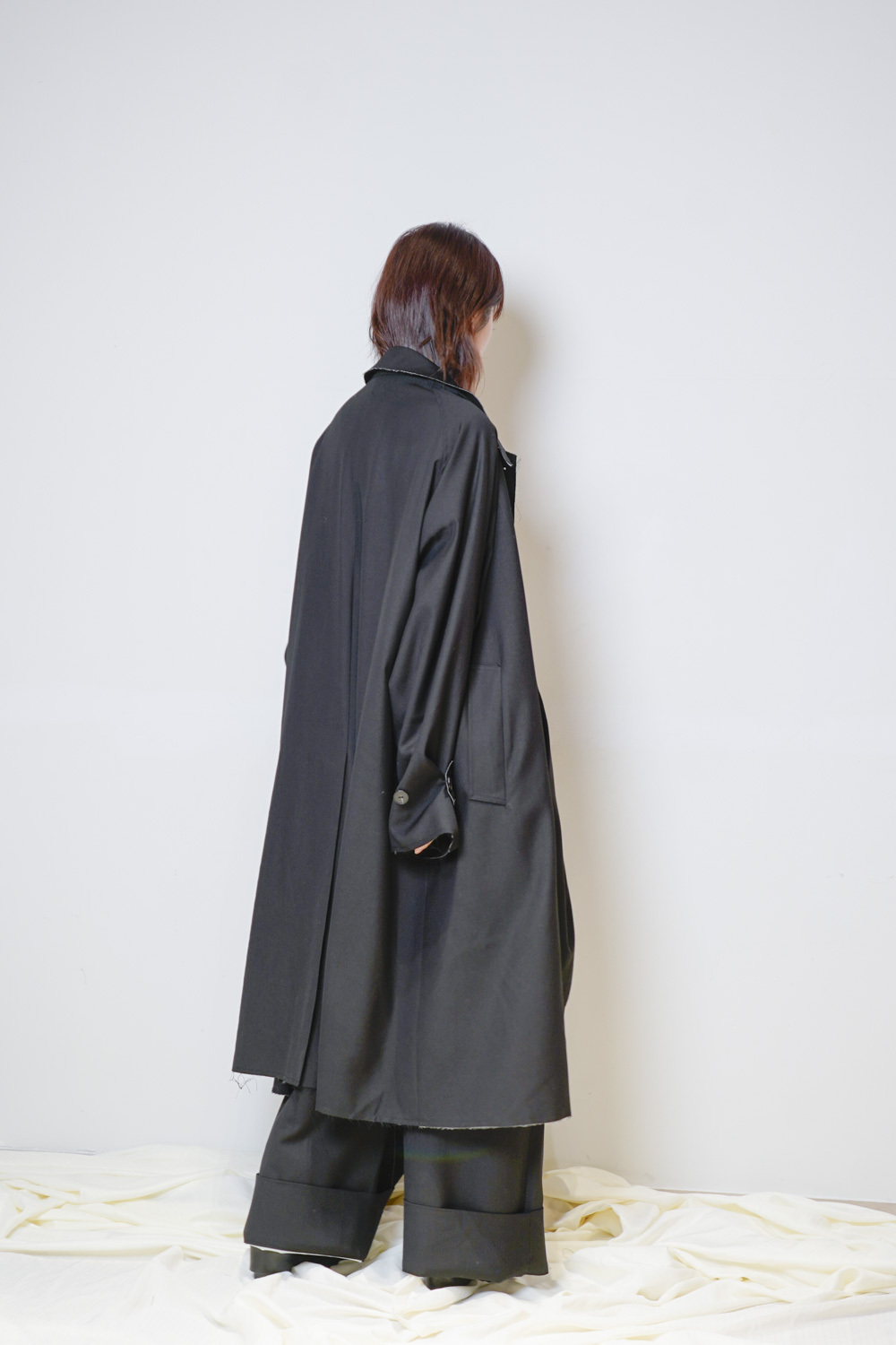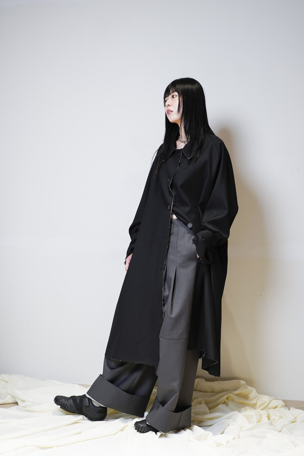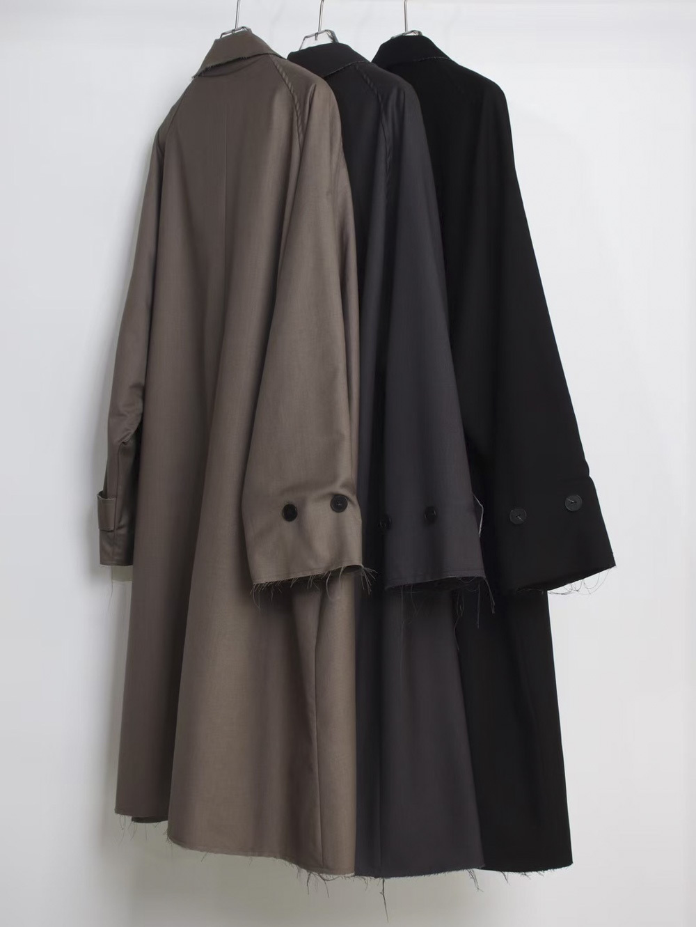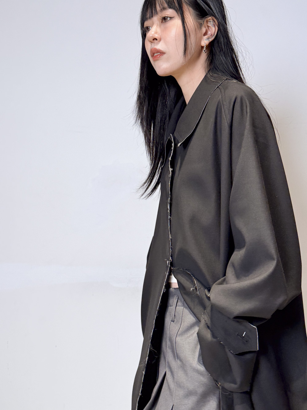 Raw edge trench coat (BEIGE/BLACK)