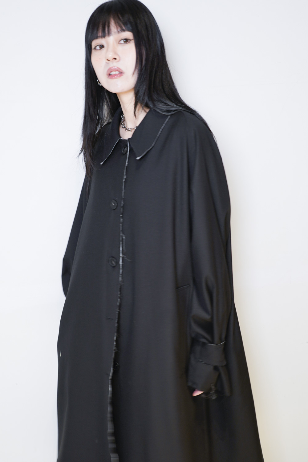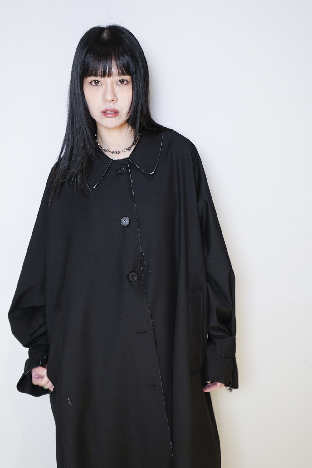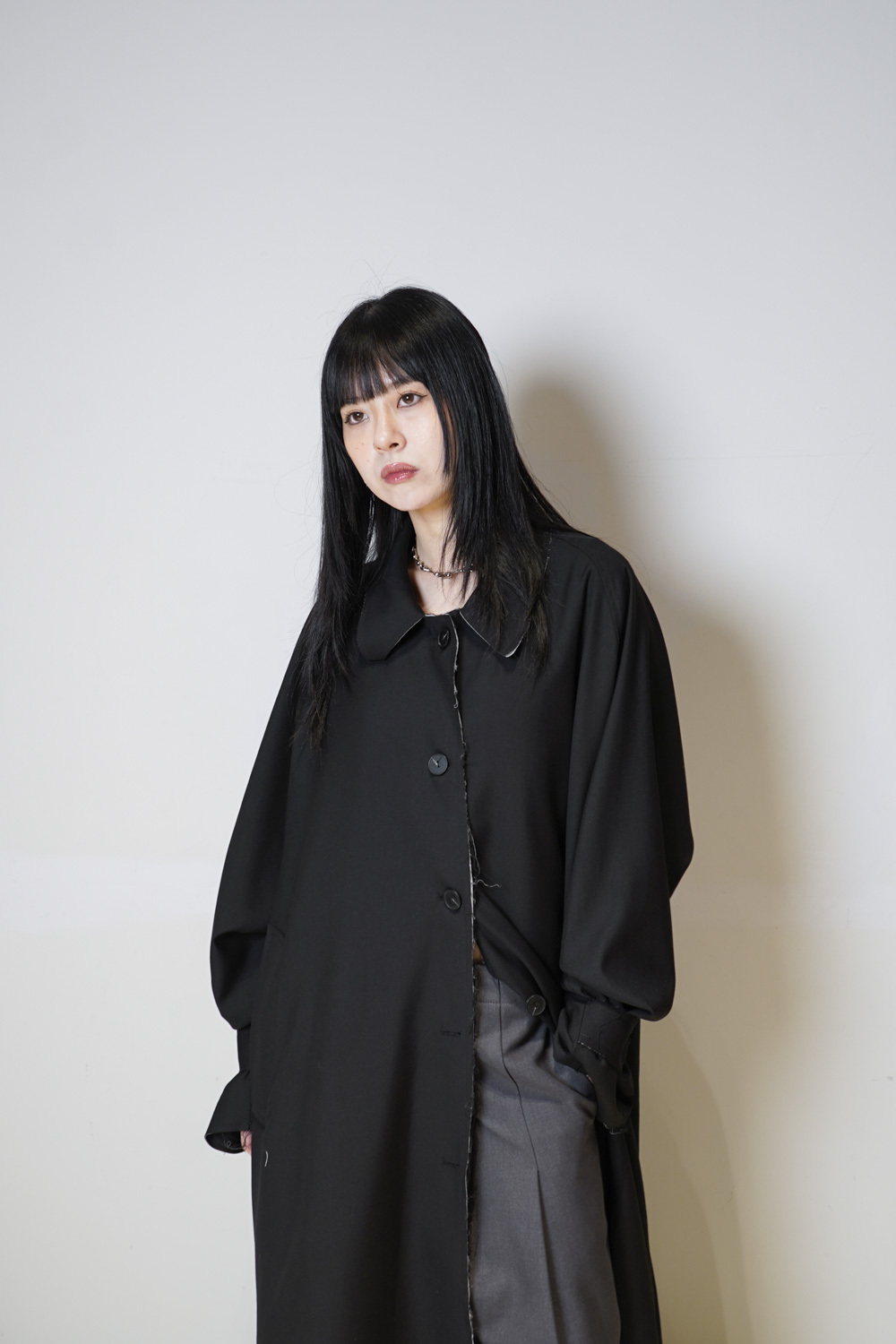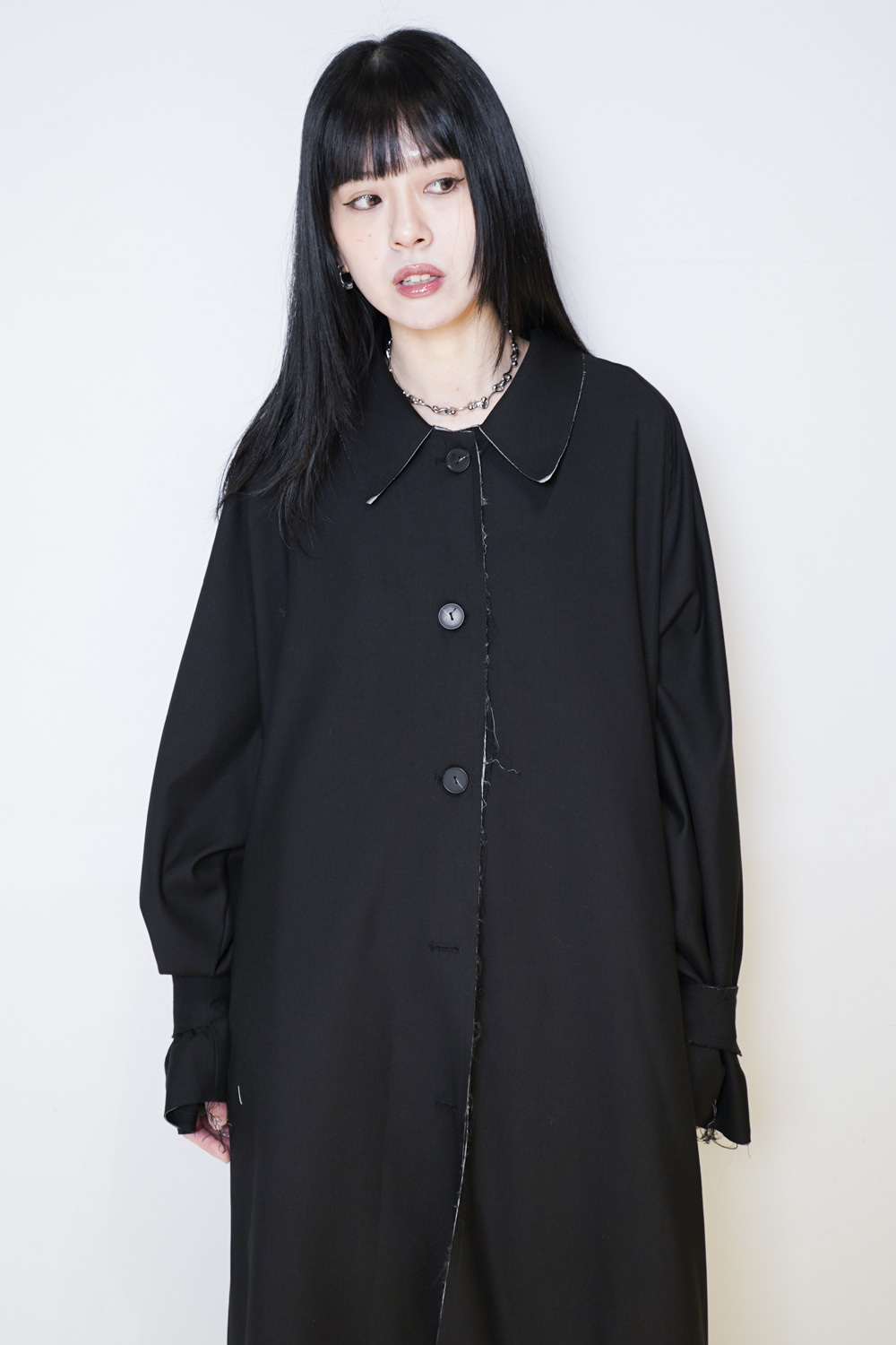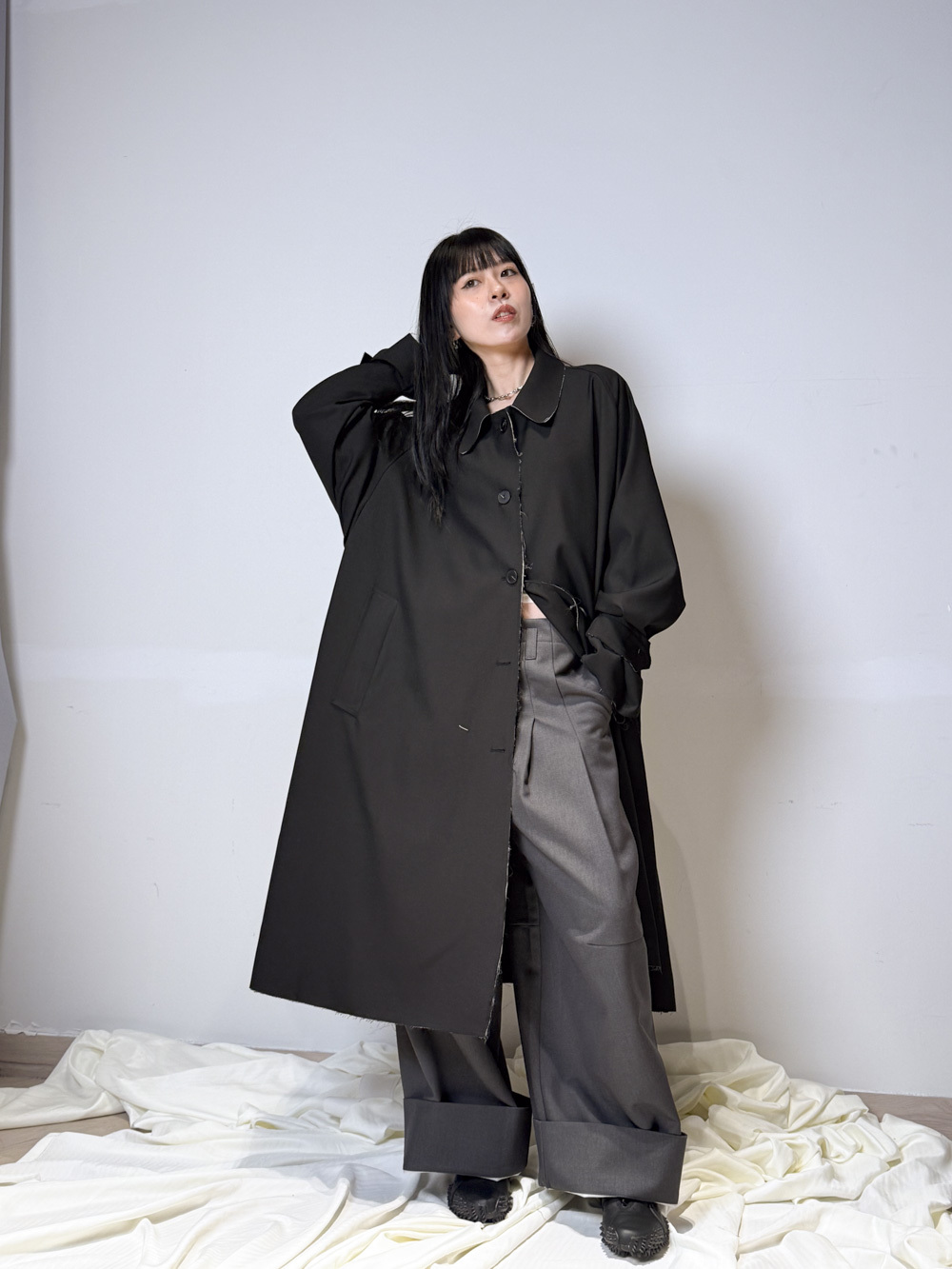 Raw edge trench coat (BEIGE/BLACK)