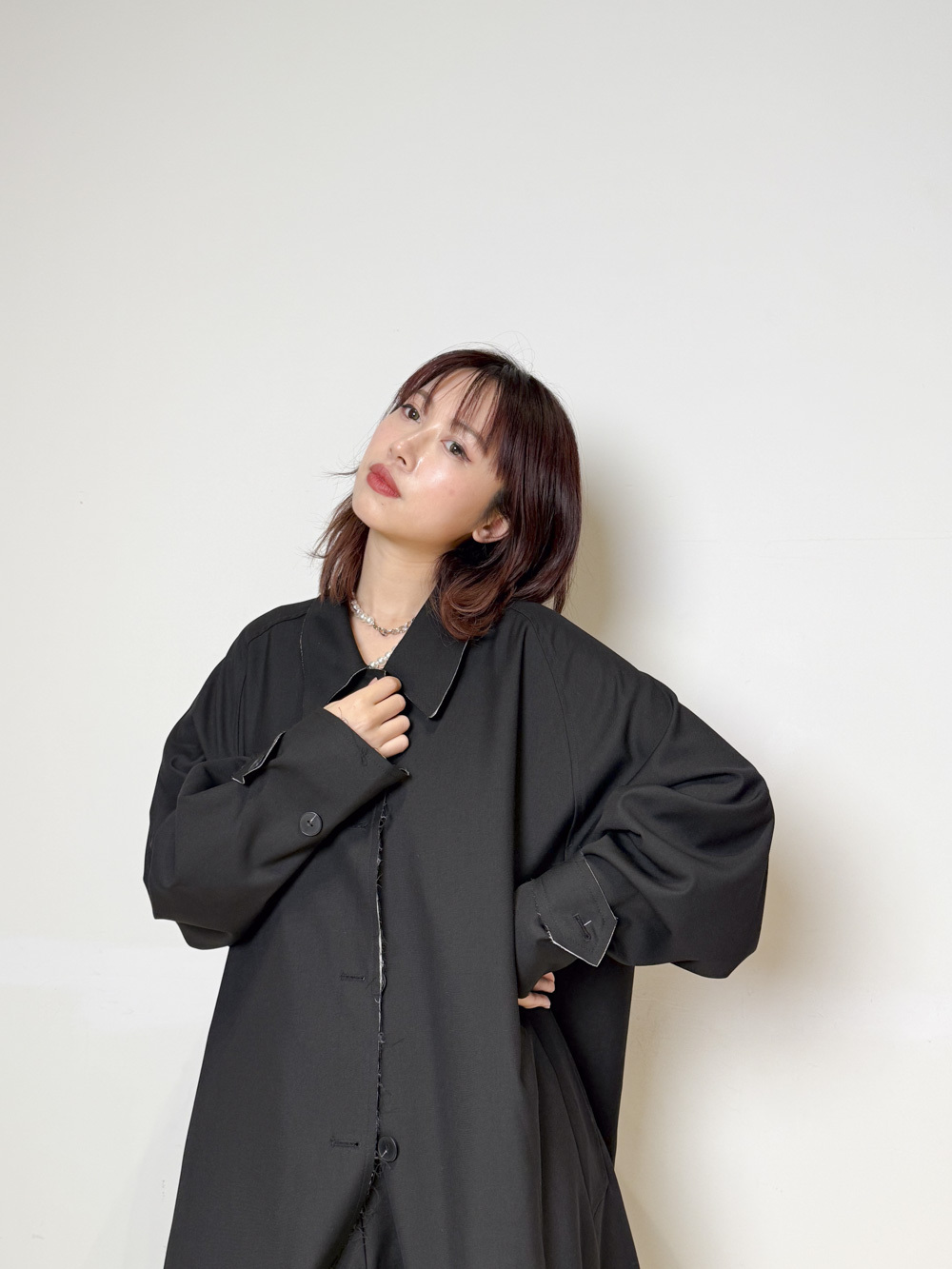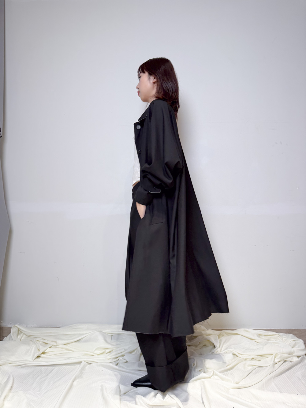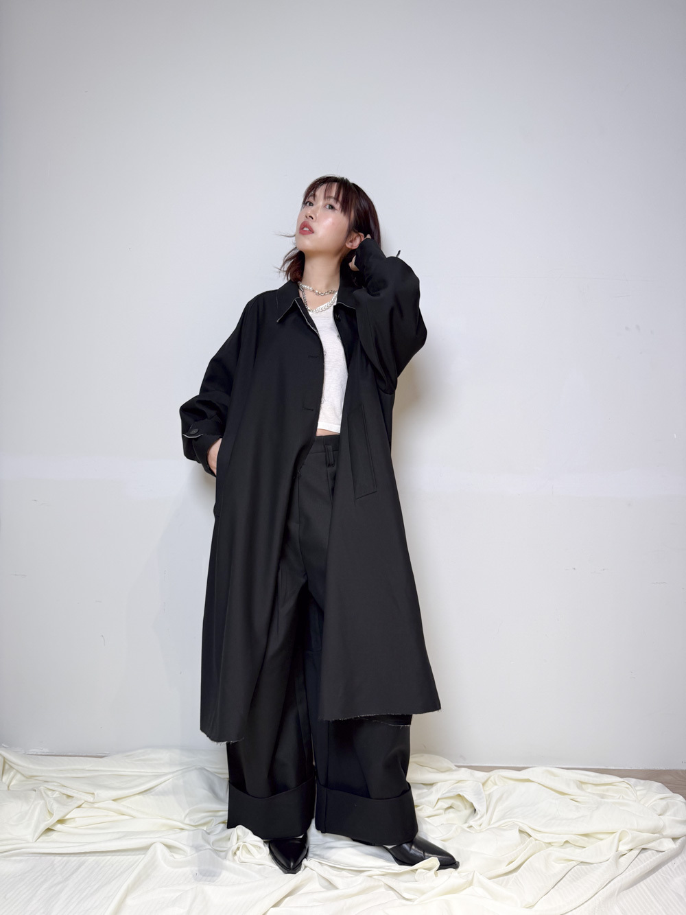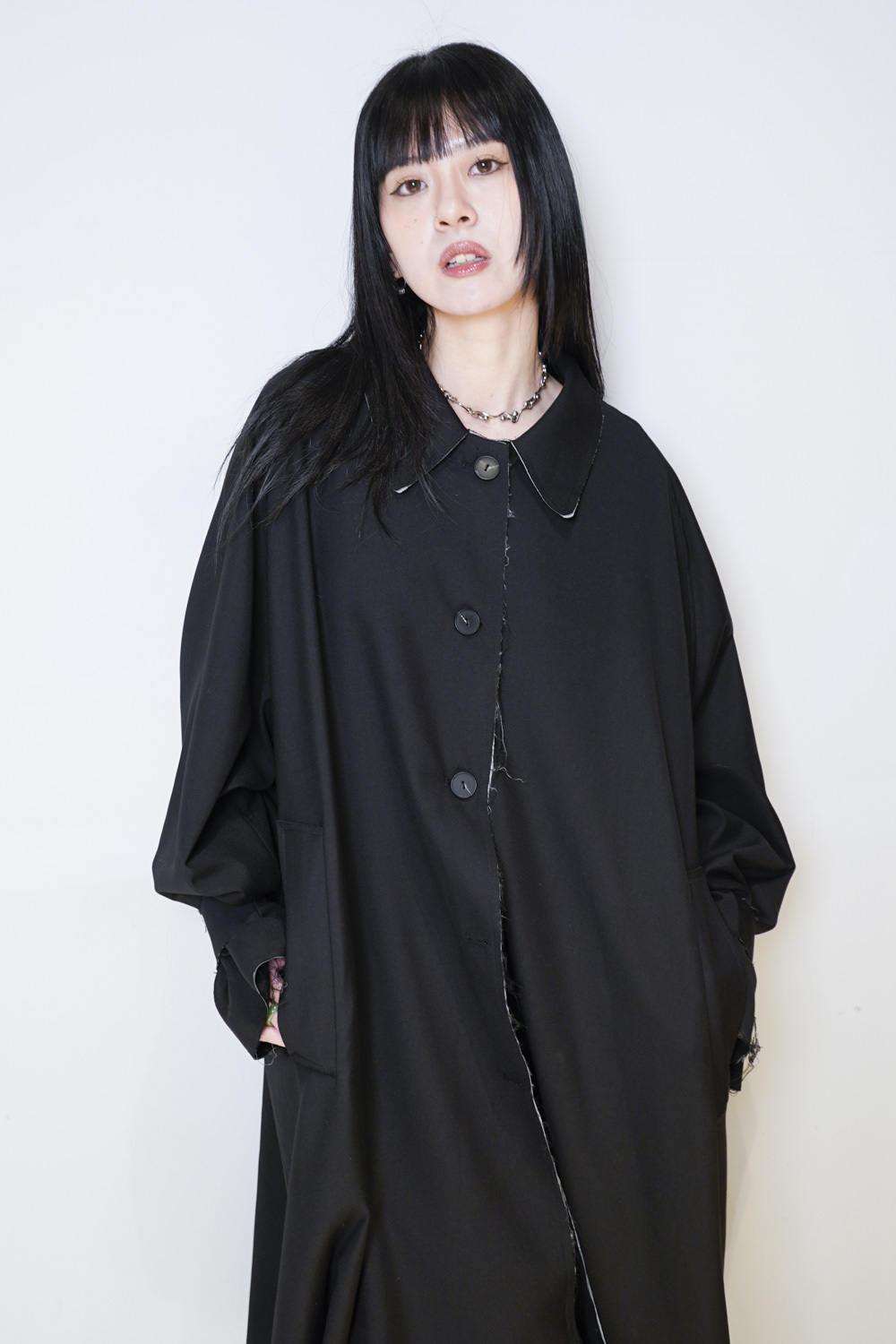 Raw edge trench coat (BEIGE/BLACK)