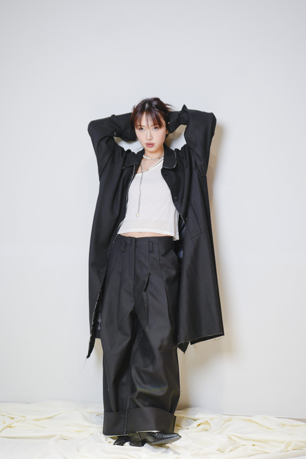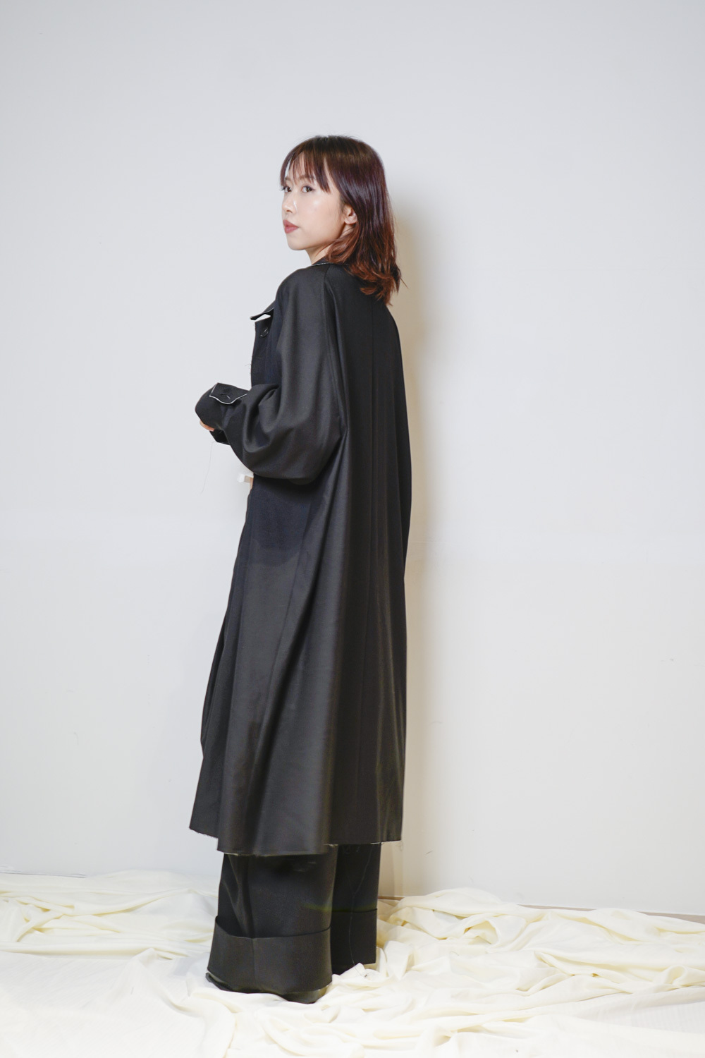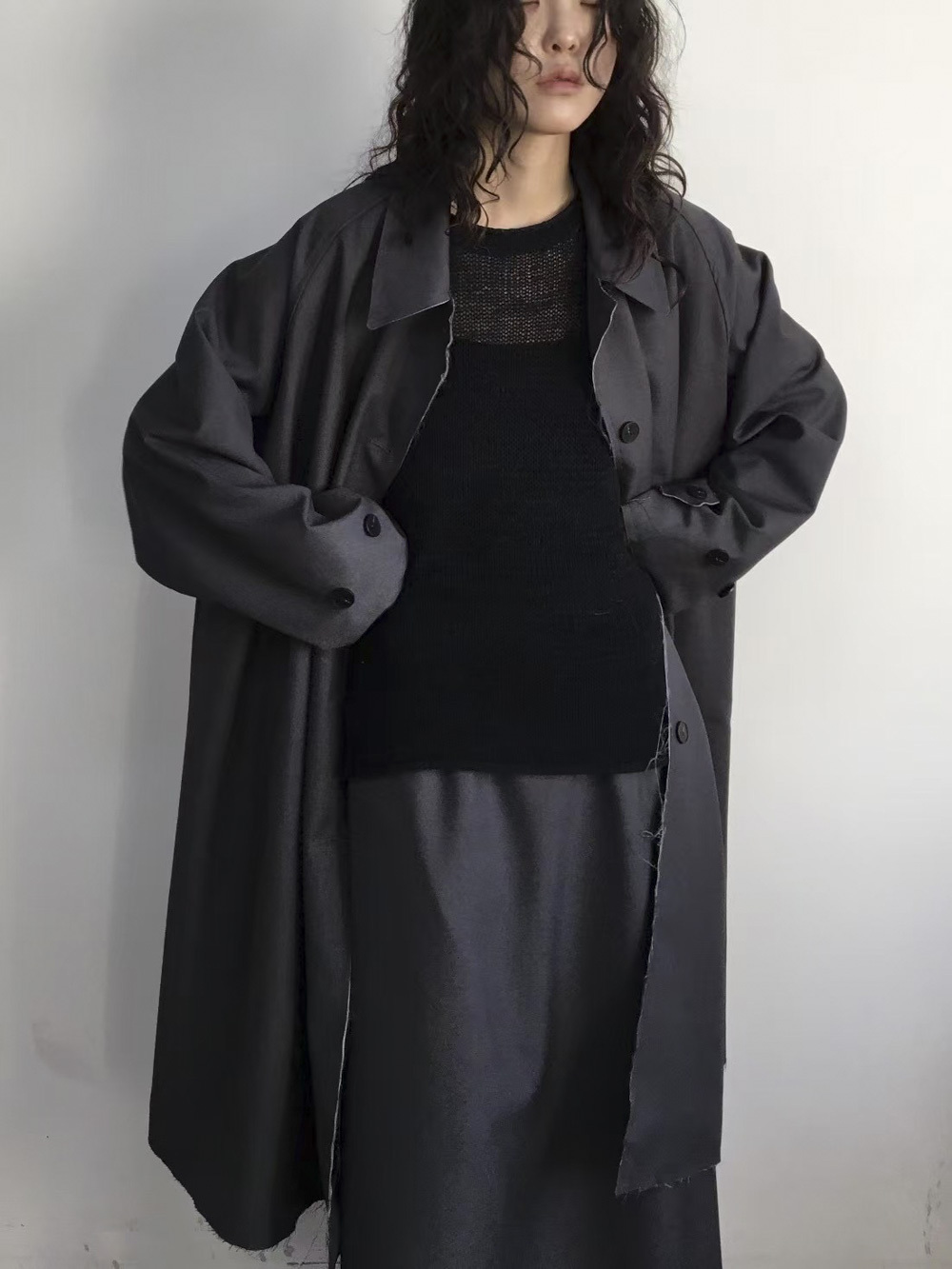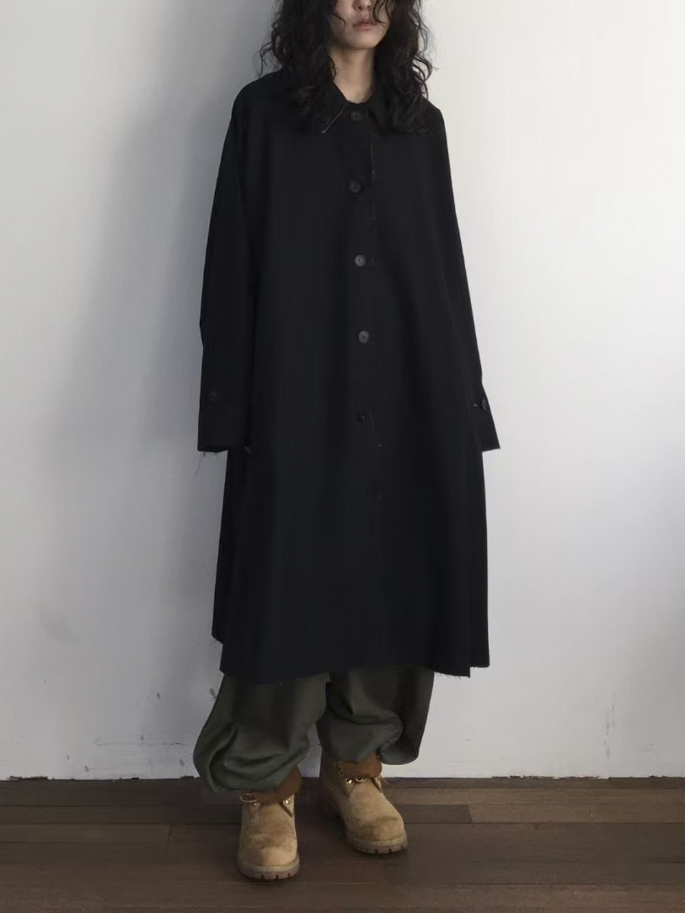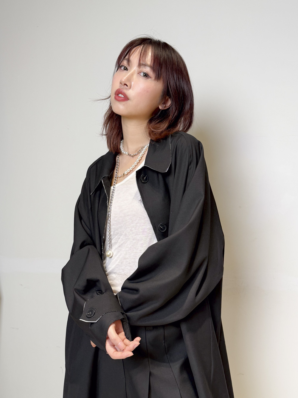 Raw edge trench coat (BEIGE/BLACK)