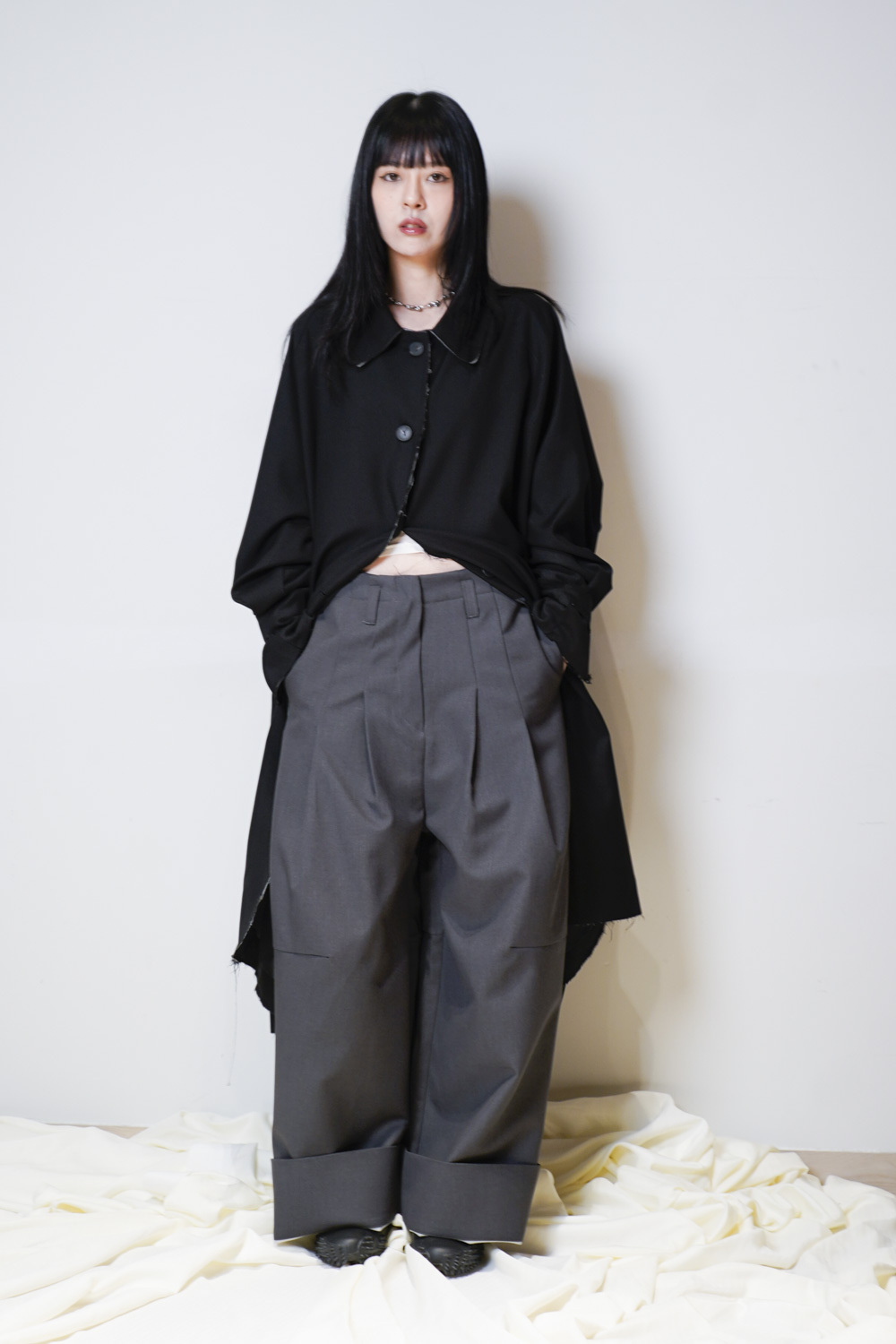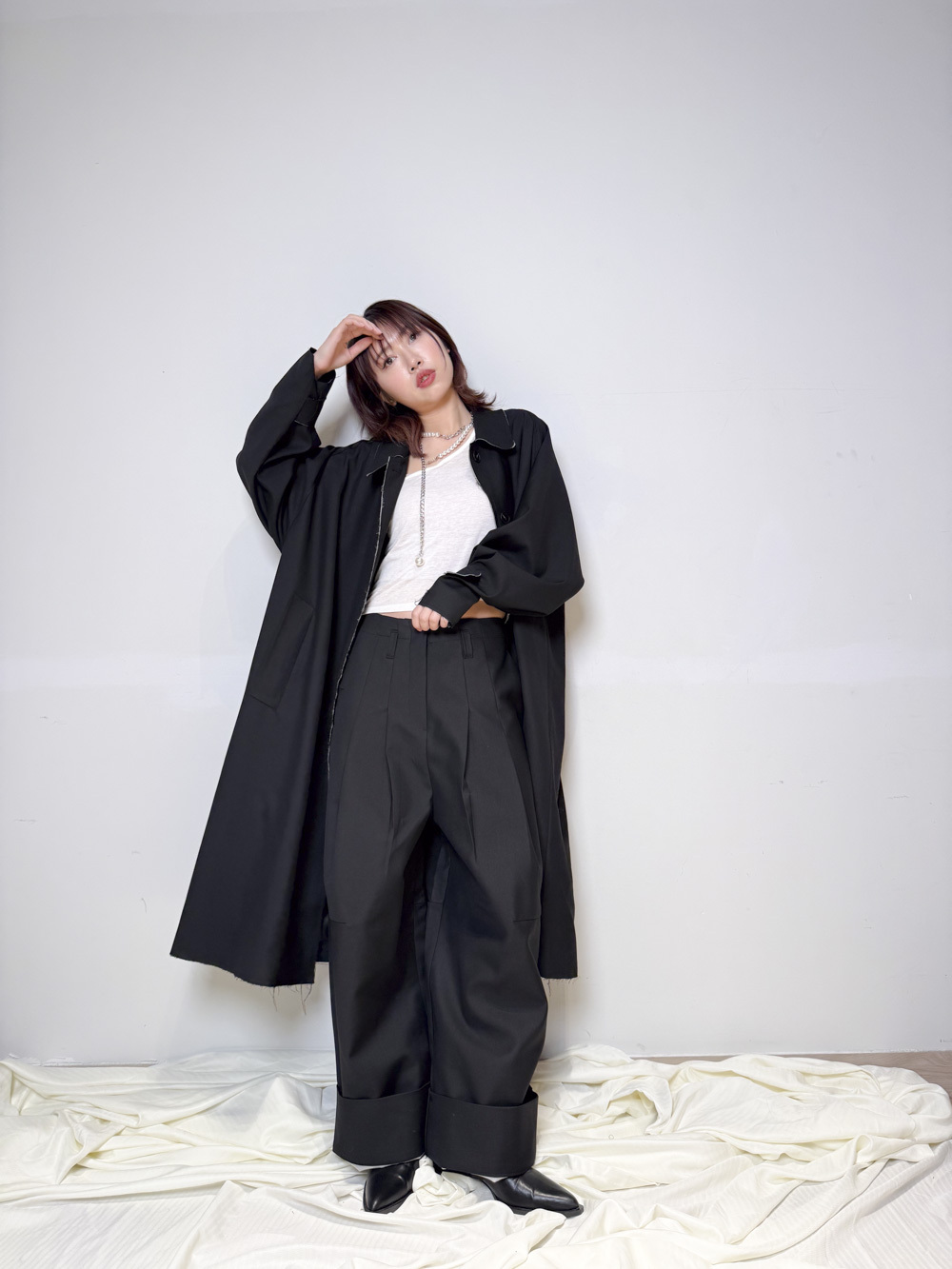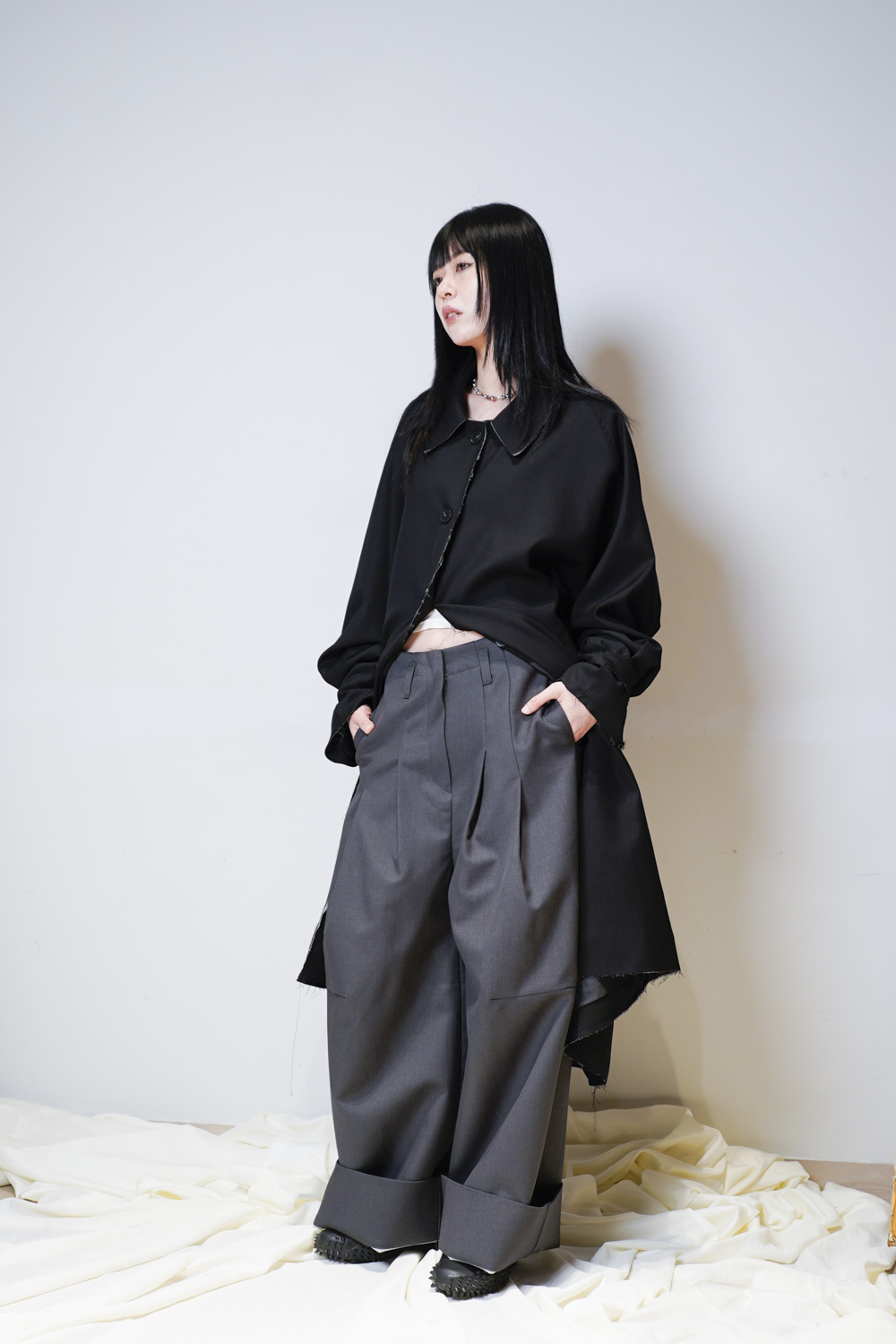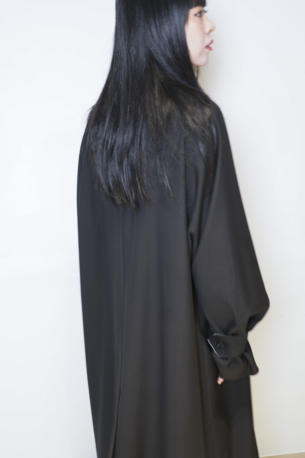 Raw edge trench coat (BEIGE/BLACK)