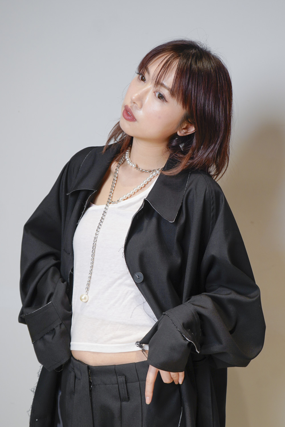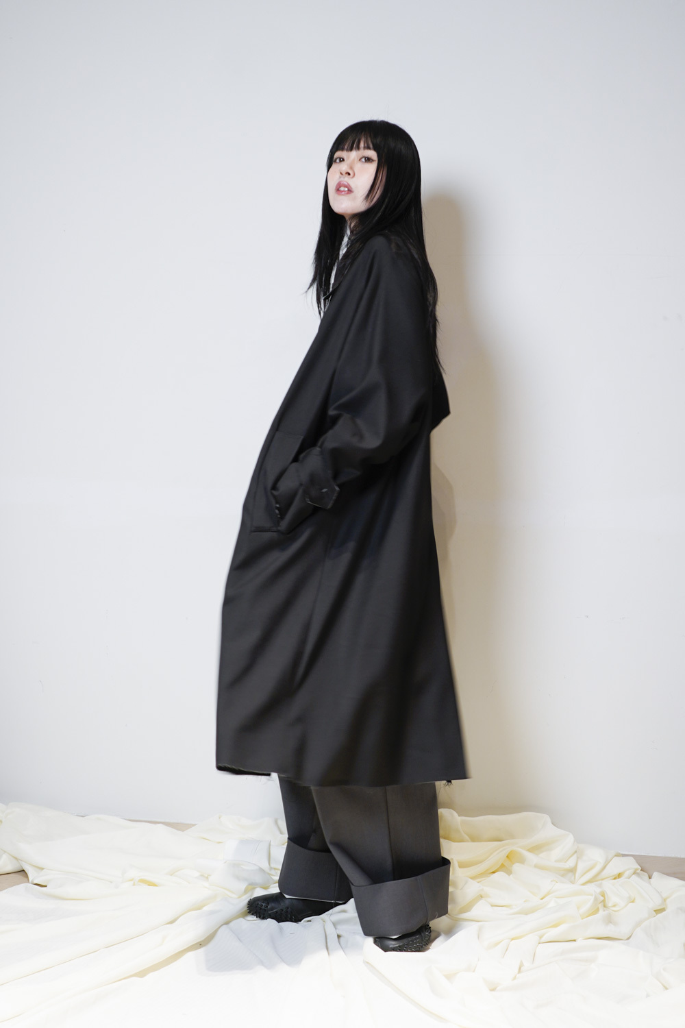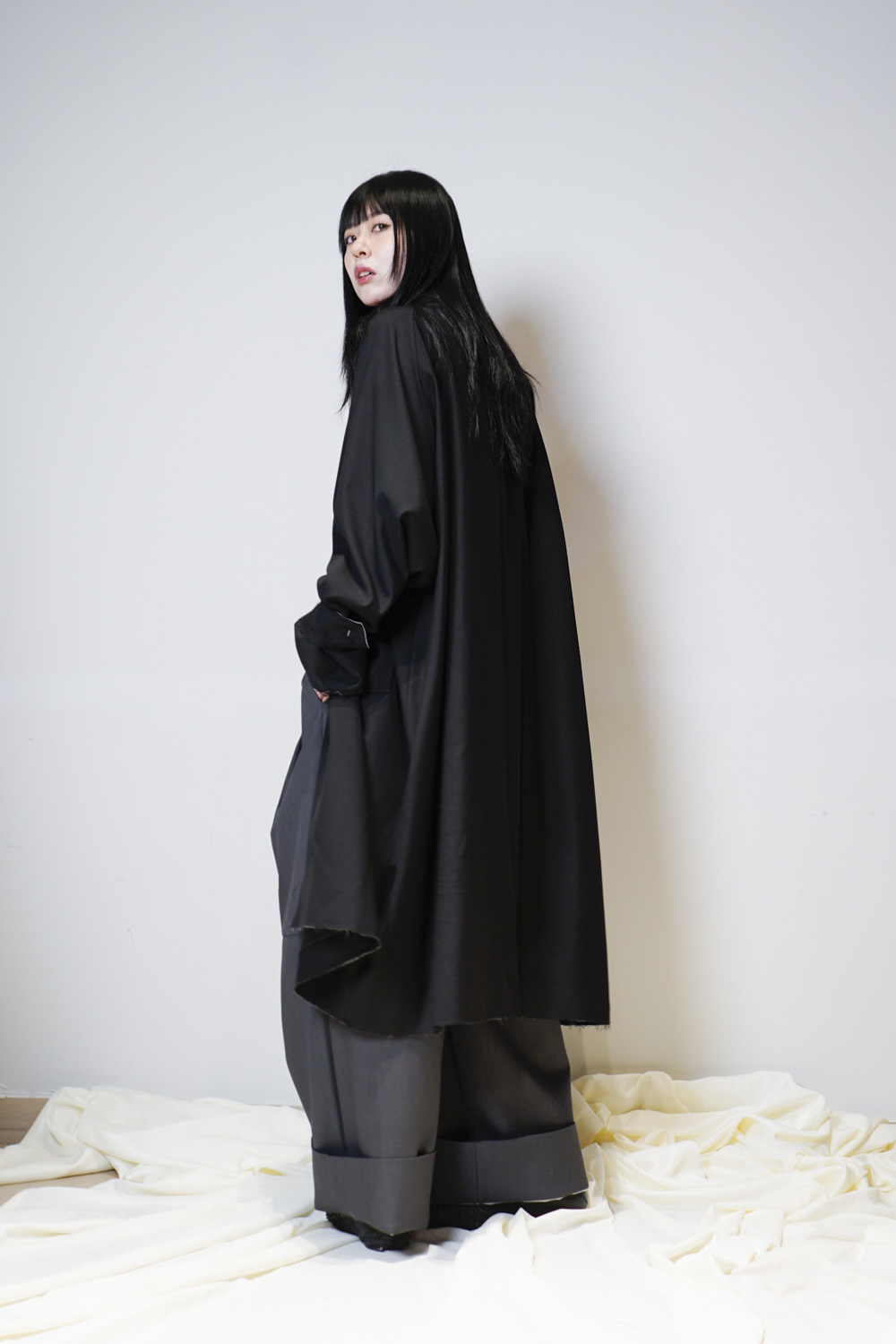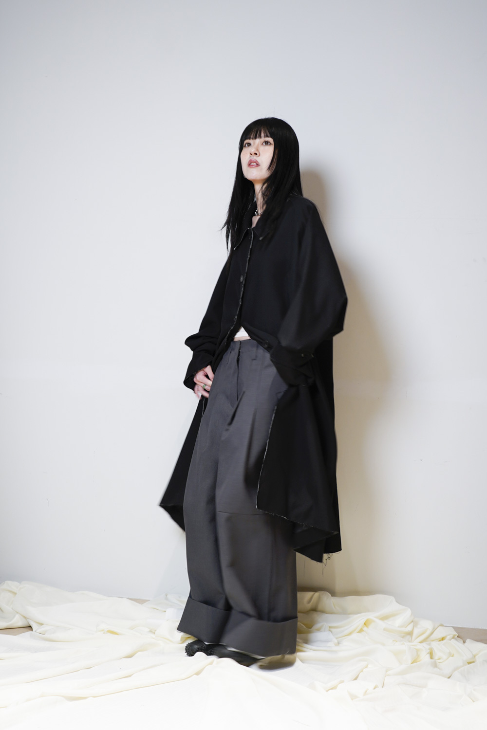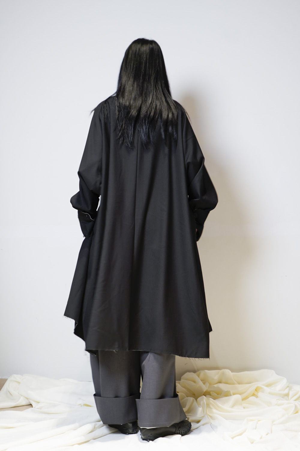 Raw edge trench coat (BEIGE/BLACK)